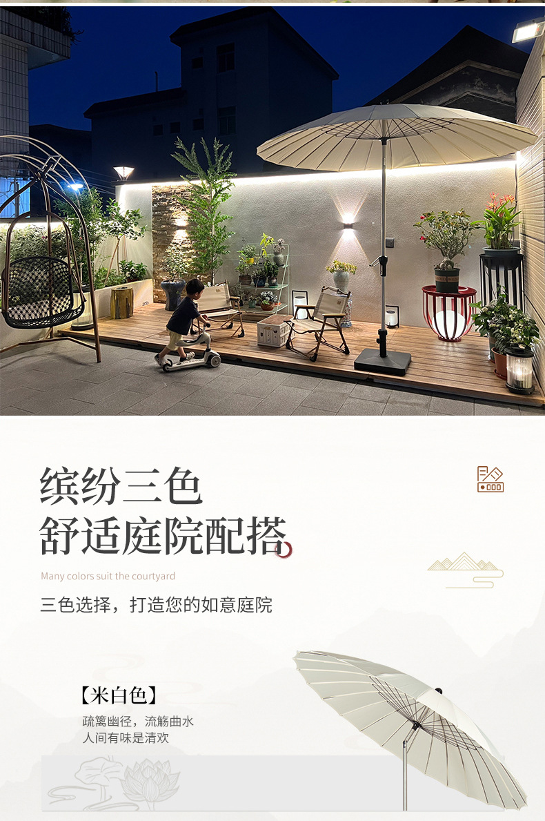 야외 상하이 우산 디자인 중간 기둥 우산 야외 정원 안뜰 테라스 레저 우산 B & B 접이식 차양 호텔