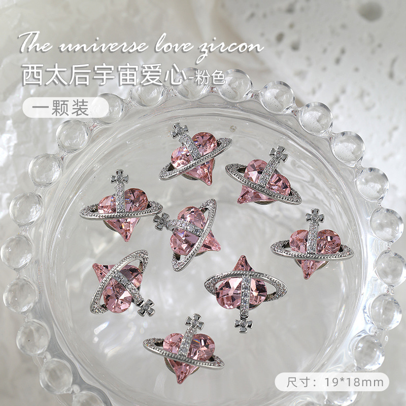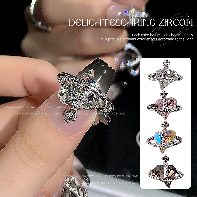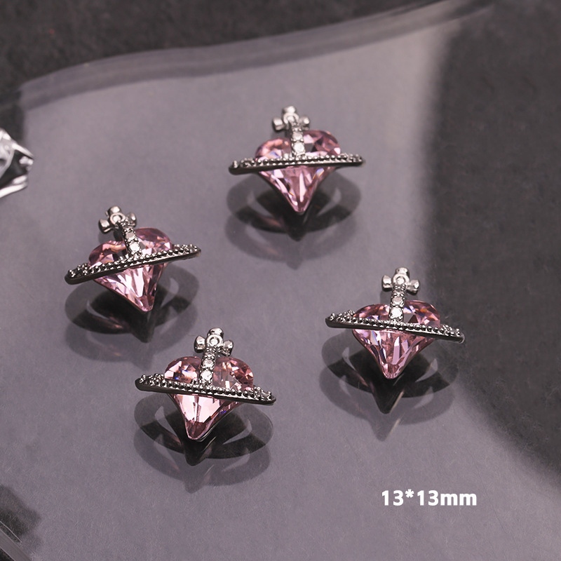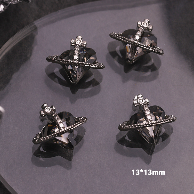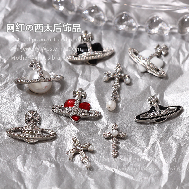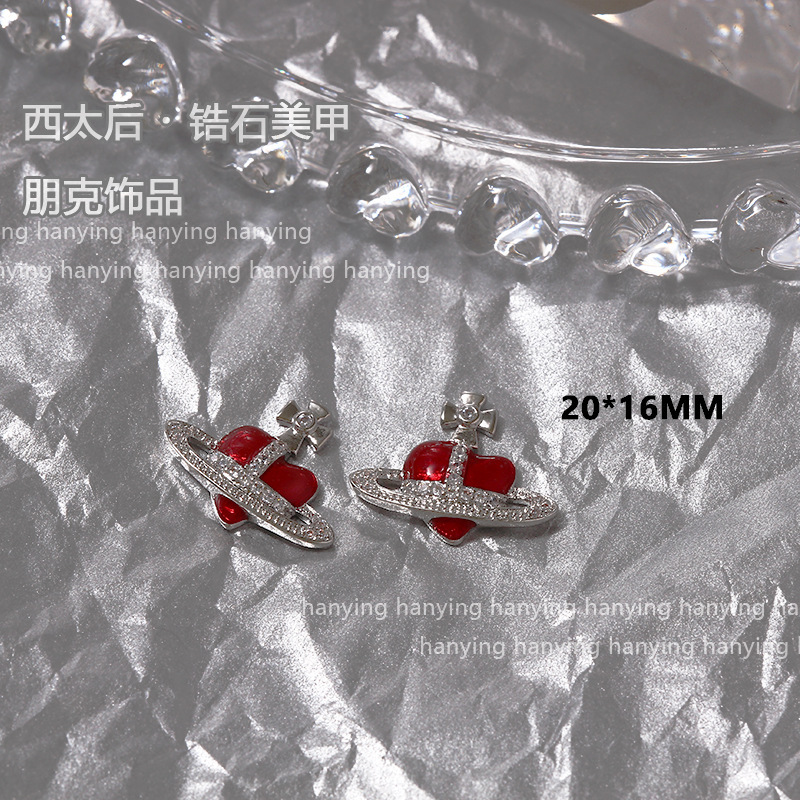 여왕 어머니의 손톱 보석 도매 인터넷 빨간 폭발 비뚤어진 심장 크로스 합금 비뚤어진 심장 토성 네일 보석 드릴스토어 가기
