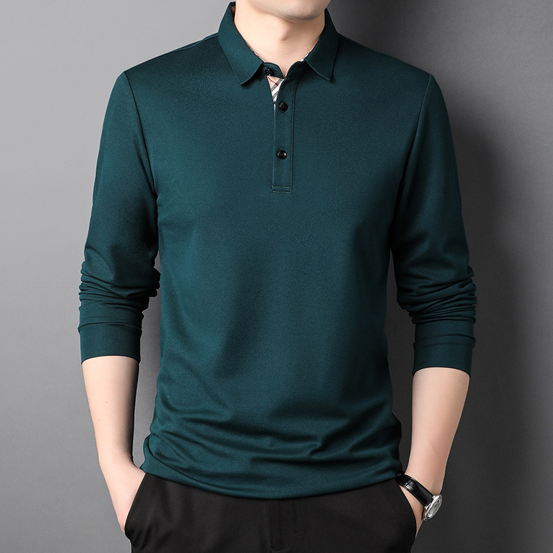옷깃 단색 긴팔 티셔츠 남성용 면 필링 브랜드 아빠 옷 봄과 가을 새로운 비즈니스 캐주얼 베이스 셔츠