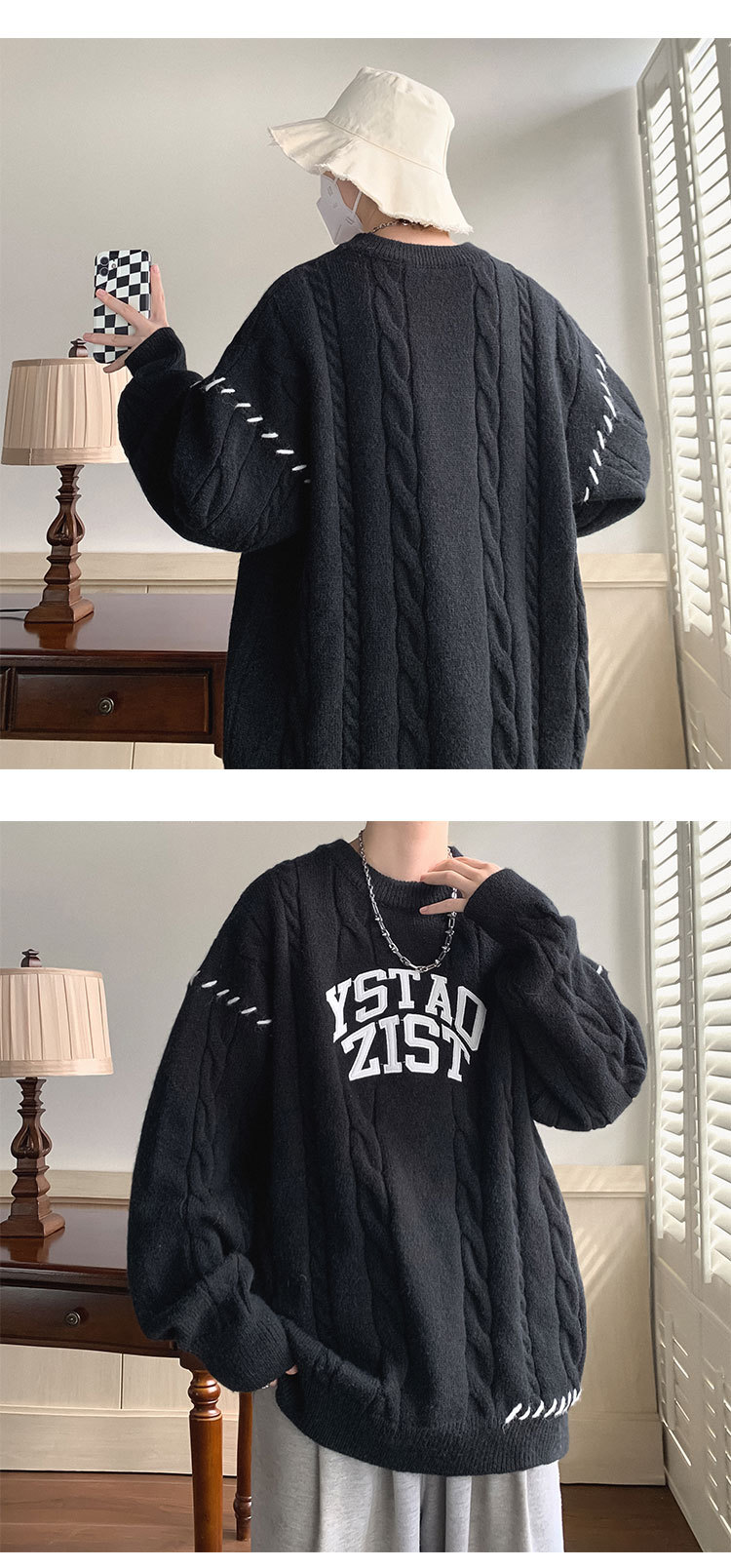 아메리칸 스타일 게으른 스타일 스웨터 남자의 겨울 두꺼운 트위스트 코트 가을과 겨울 일본식 고급 복고풍 니트 스웨터스토어 가기