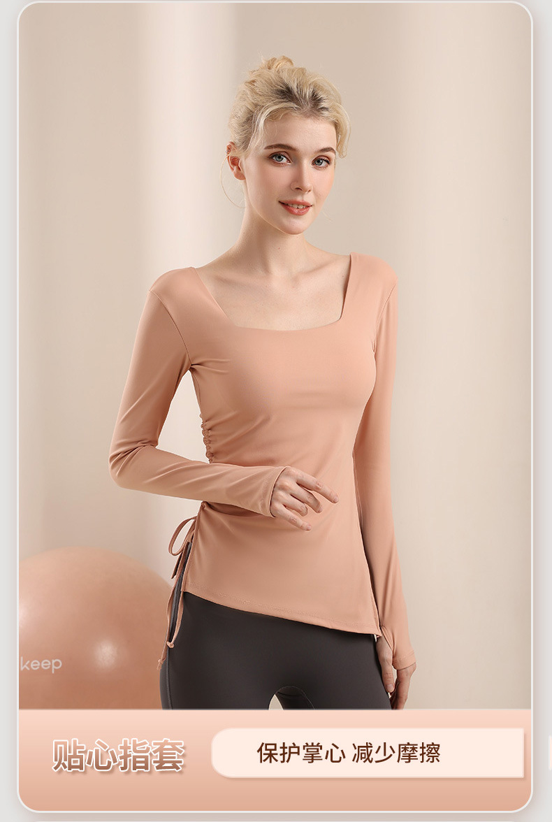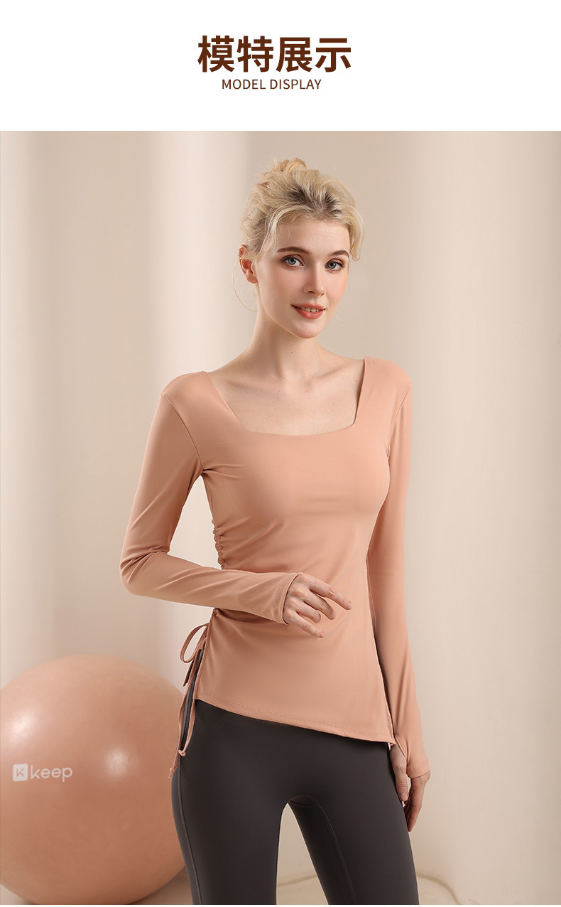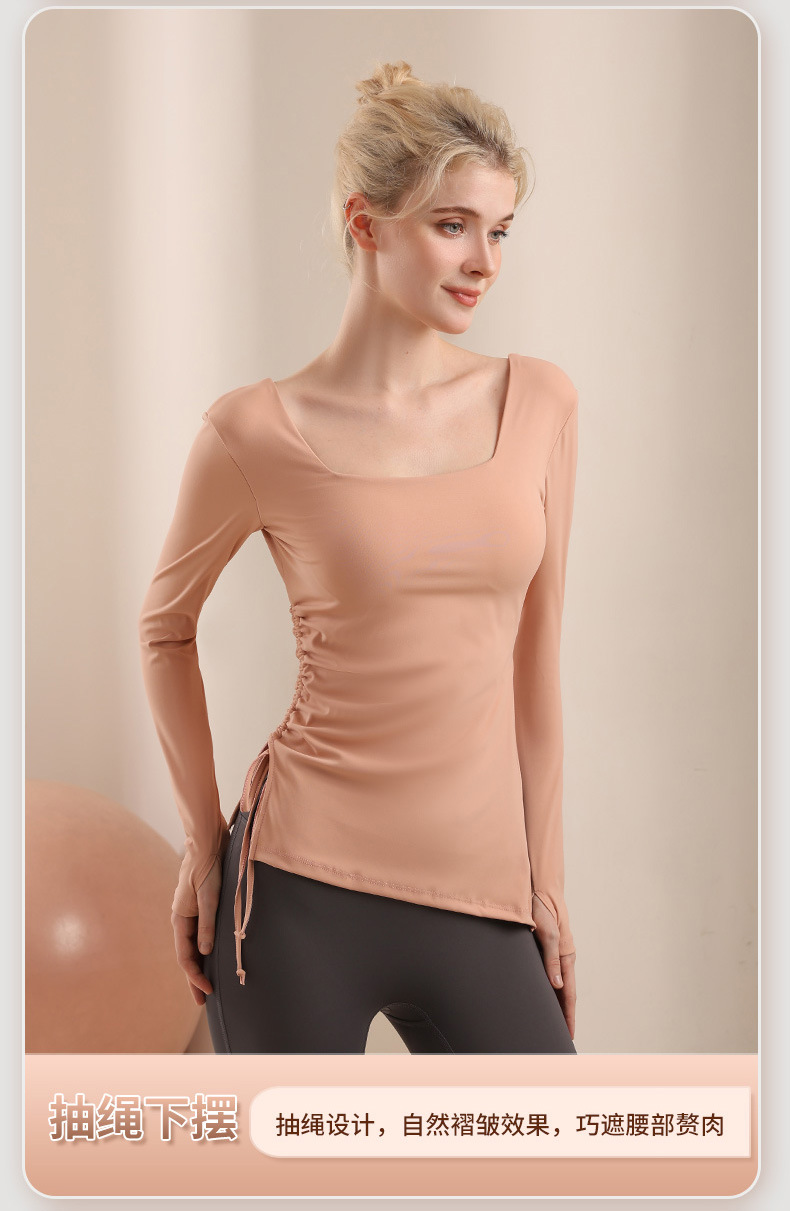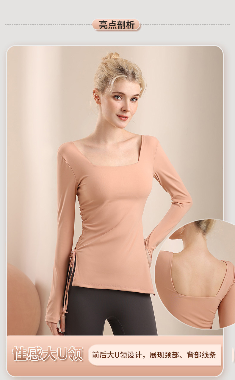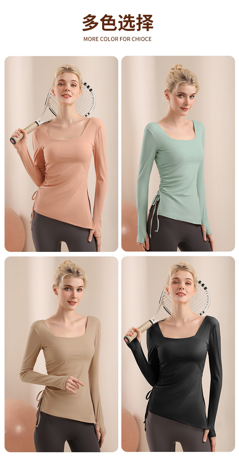 새로운 하이 엔드 센스 스퀘어 칼라 긴팔 요가 세트 여성용 고정 원피스 컵 달리기 피트니스 세트 필라테스 트레이닝 세트스토어 가기