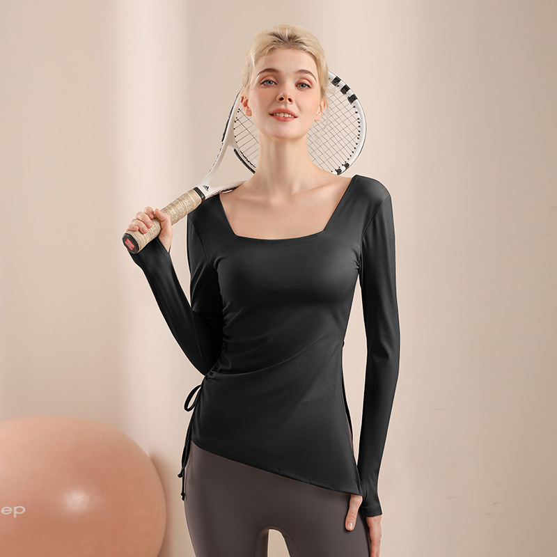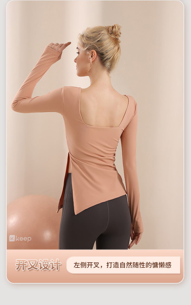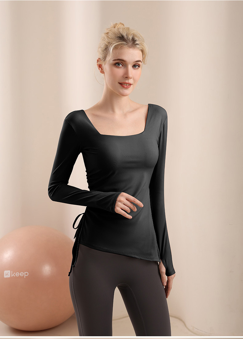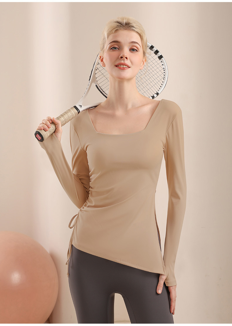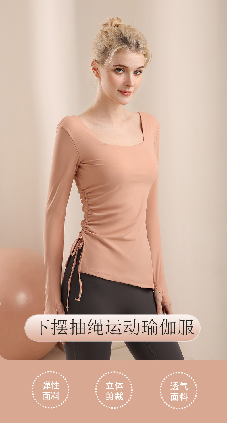 새로운 하이 엔드 센스 스퀘어 칼라 긴팔 요가 세트 여성용 고정 원피스 컵 달리기 피트니스 세트 필라테스 트레이닝 세트스토어 가기