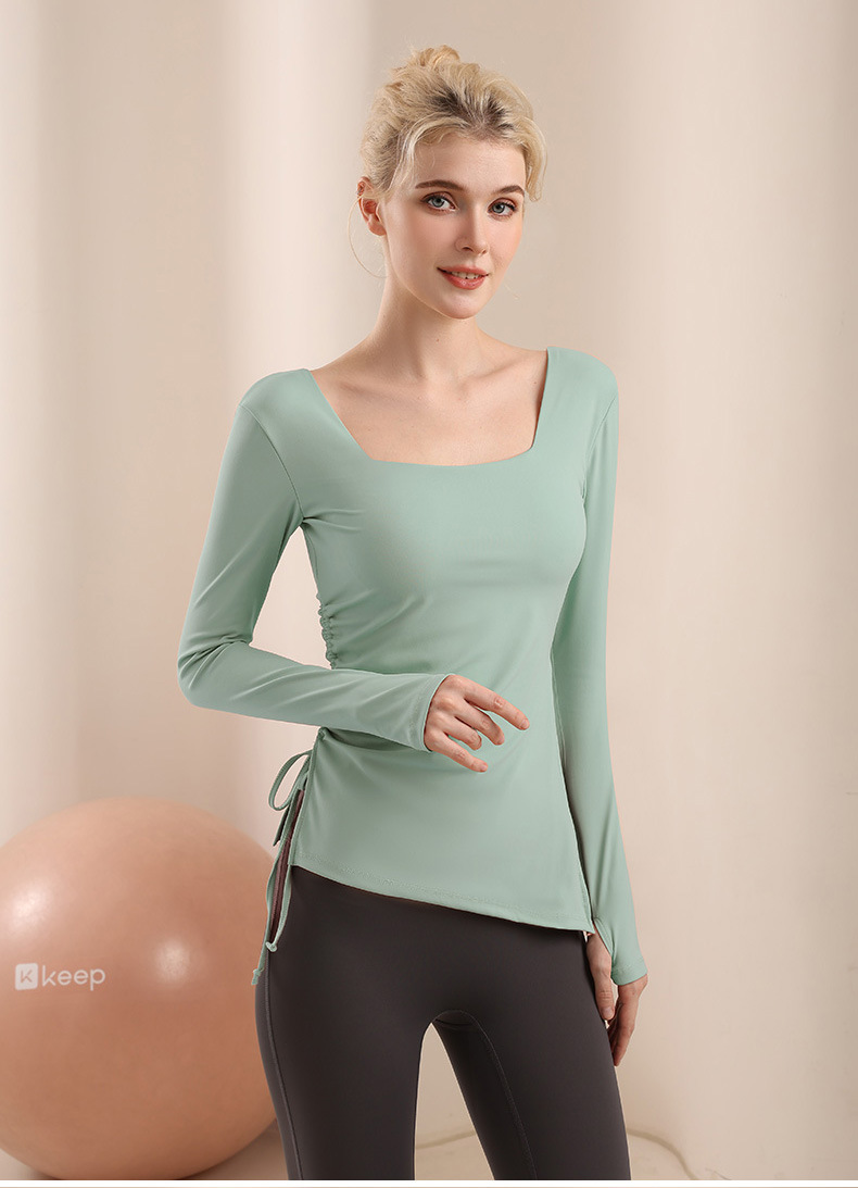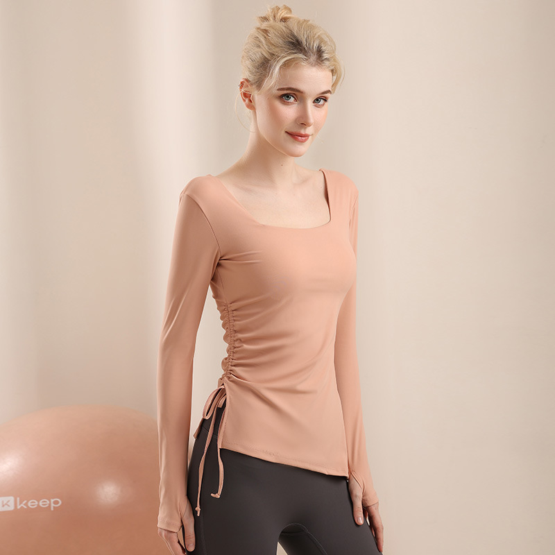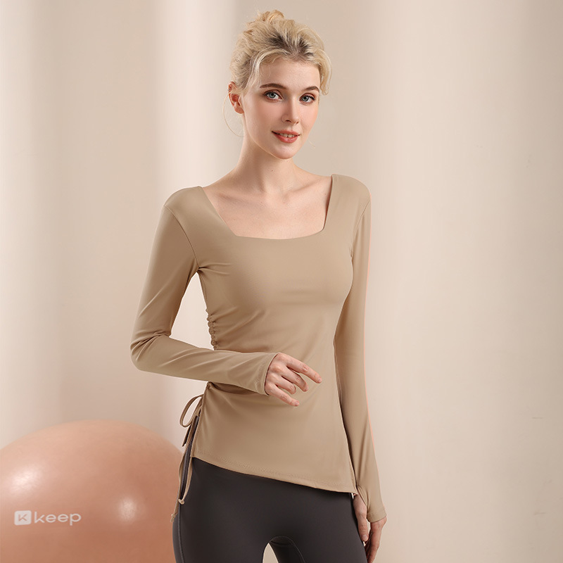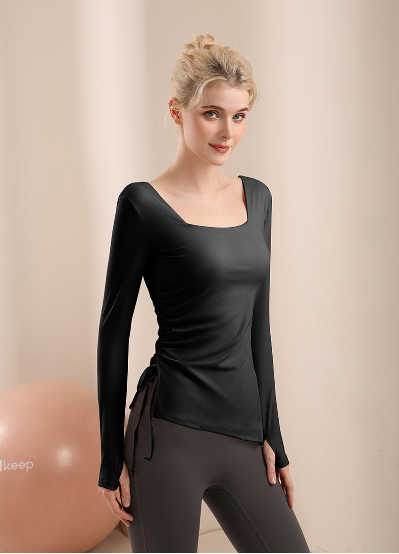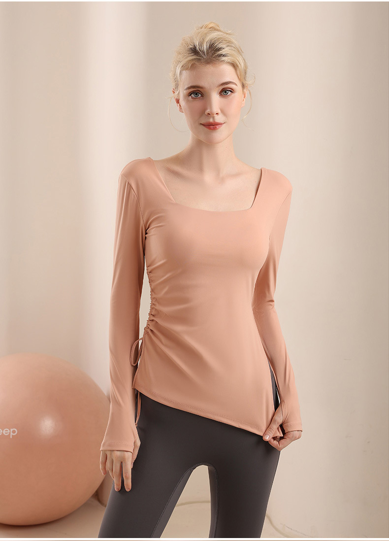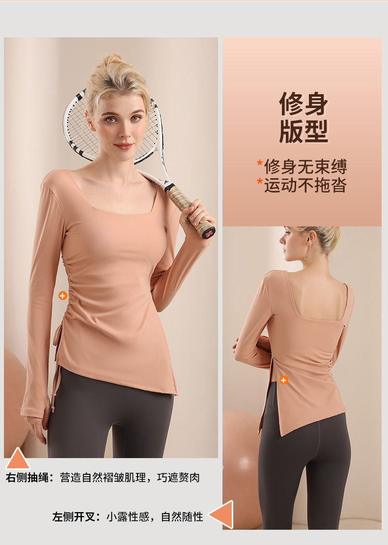 새로운 하이 엔드 센스 스퀘어 칼라 긴팔 요가 세트 여성용 고정 원피스 컵 달리기 피트니스 세트 필라테스 트레이닝 세트스토어 가기