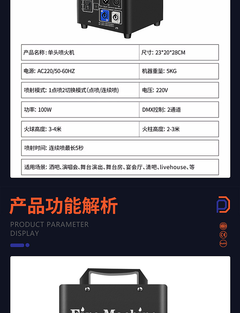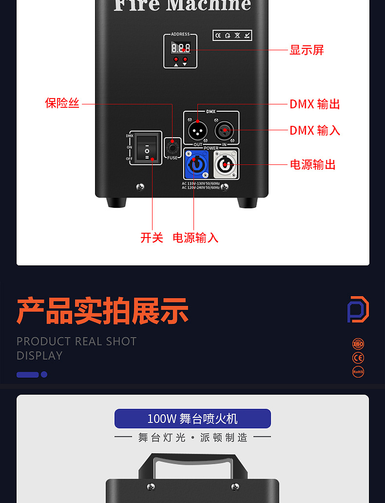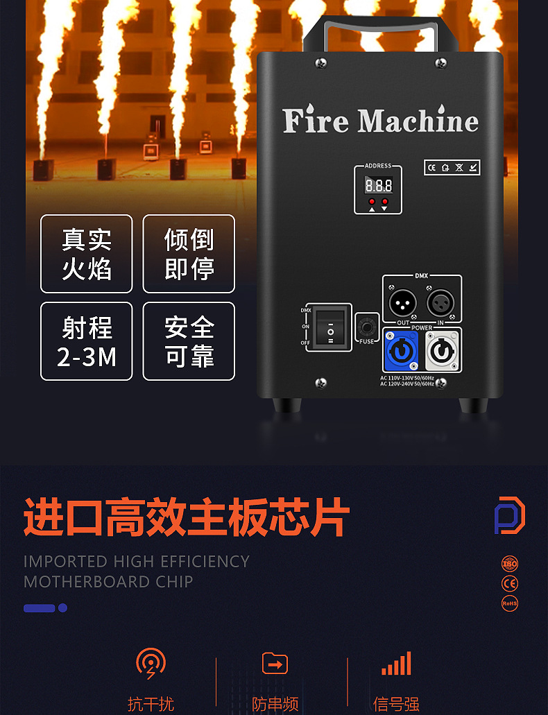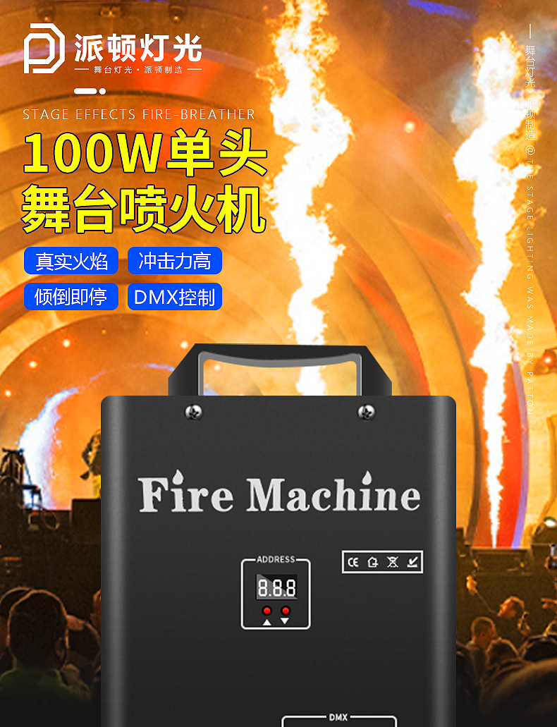 패튼 100W 싱글 헤드 화재 호흡 기계 무대 성능 분위기 소품 DMX512 소형 화재 기둥 기계 화재 호흡 특수 효과 기계