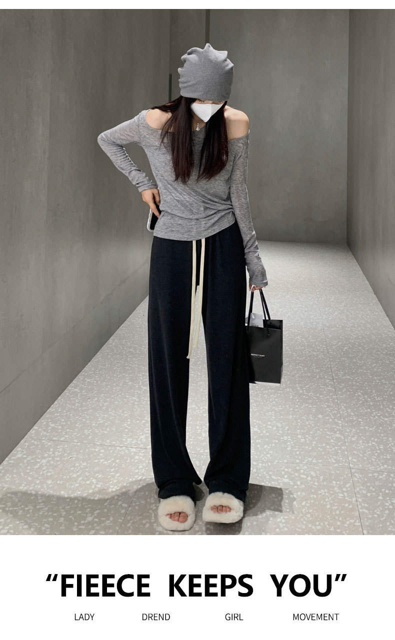 신성한 바지! 편안하고 부드럽고 나른한 바닥 길이의 바지, 슬림하고 활용도가 높은 여성용 스트레이트 와이드 팬츠, 여성용 봄, 가을 벨벳 찹쌀 팬츠
