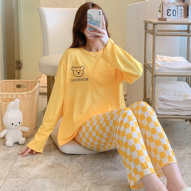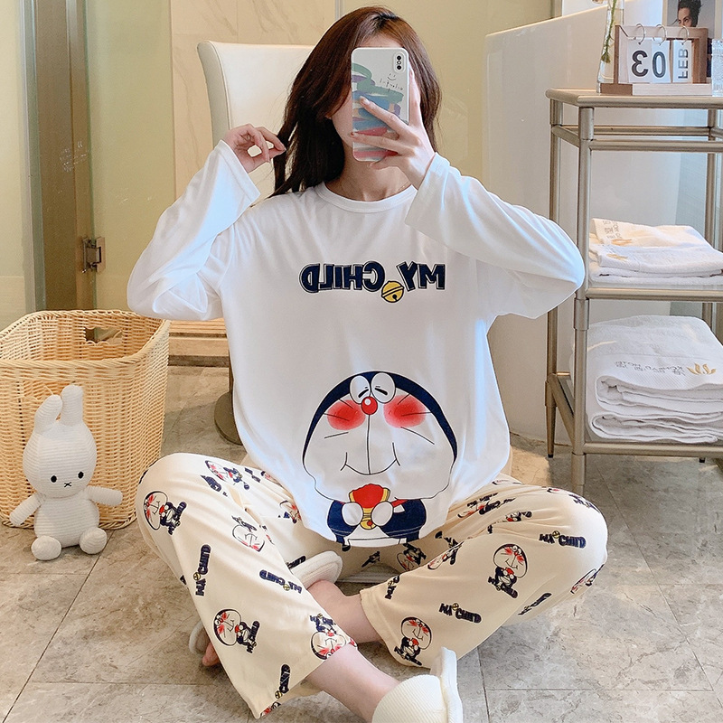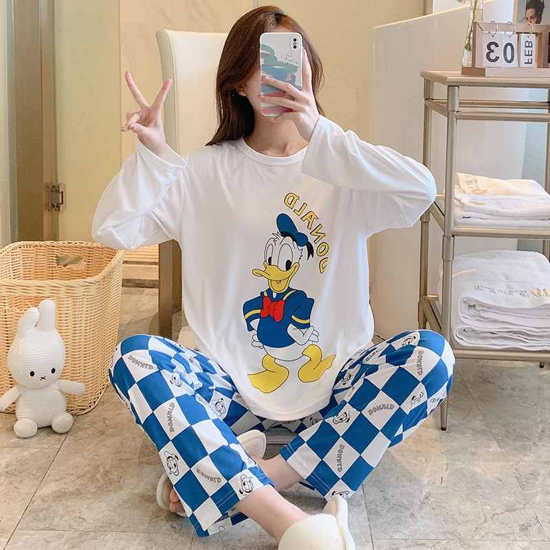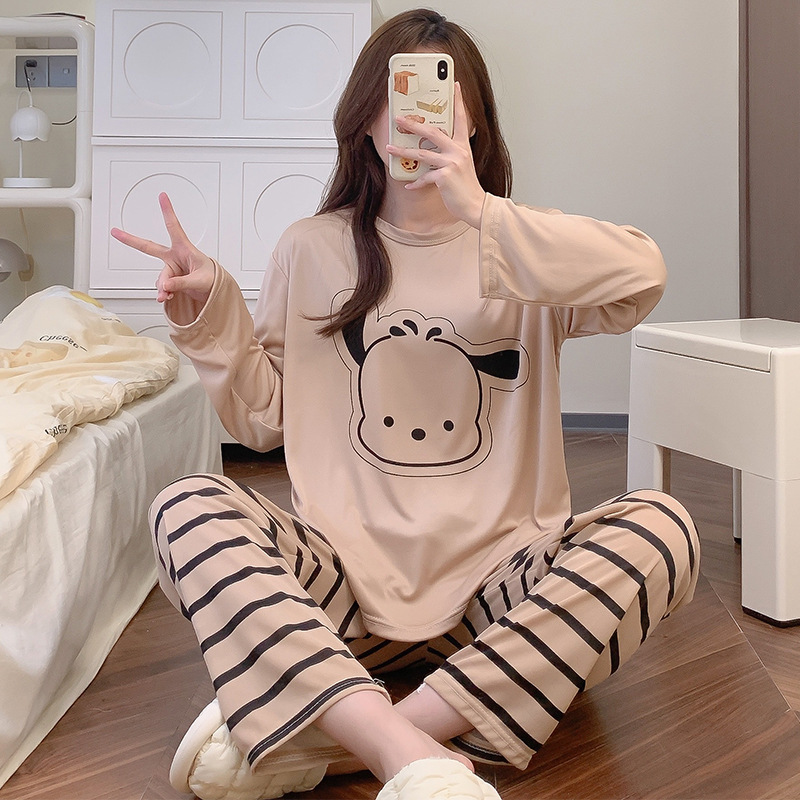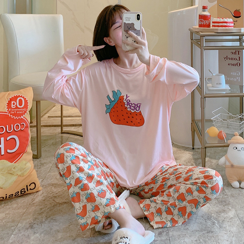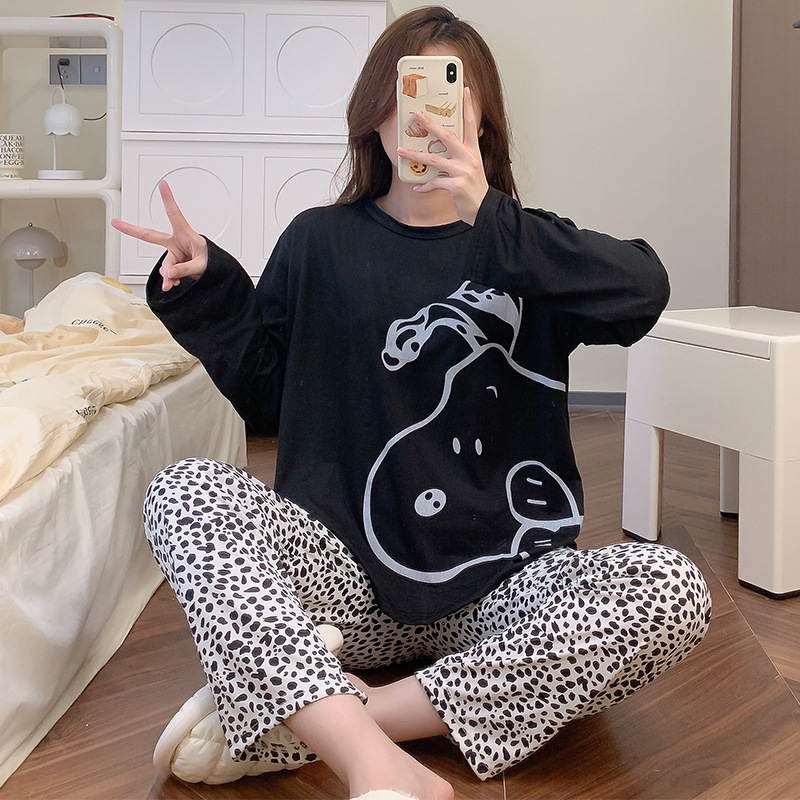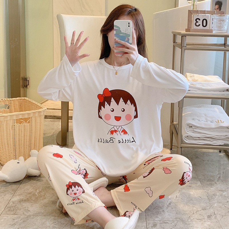 잠옷 여자의 가을 긴팔 바지 투피스 세트 한국식 귀여운 만화 캐주얼 느슨한 아웃웨어 세트