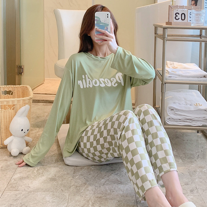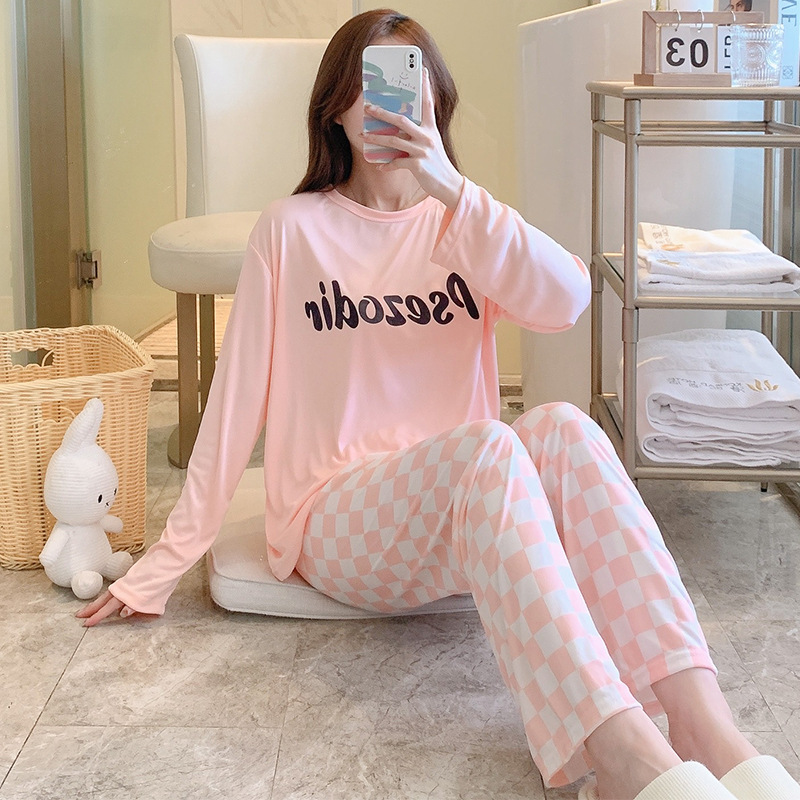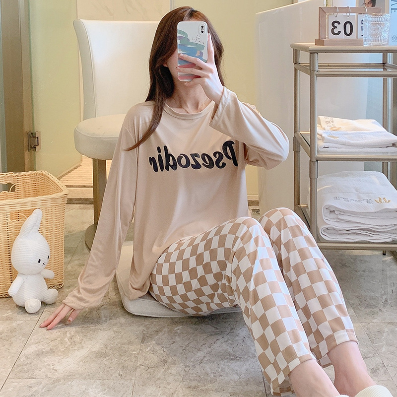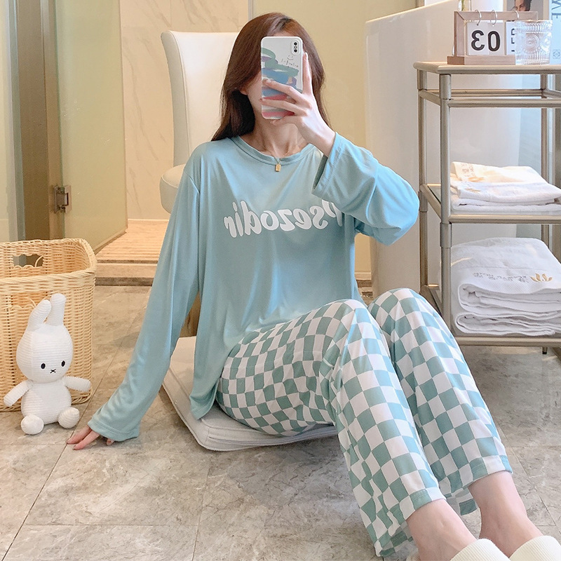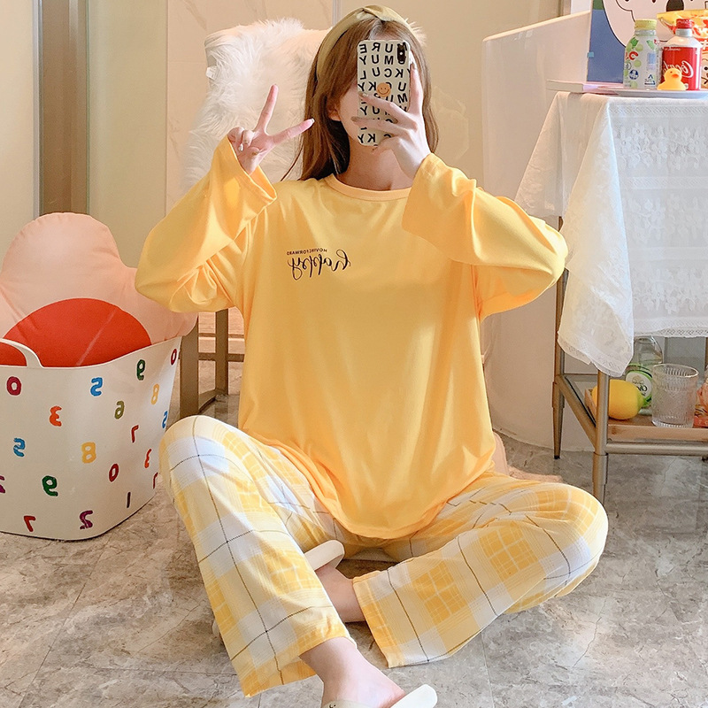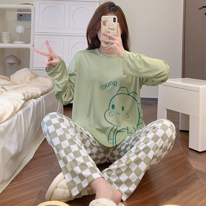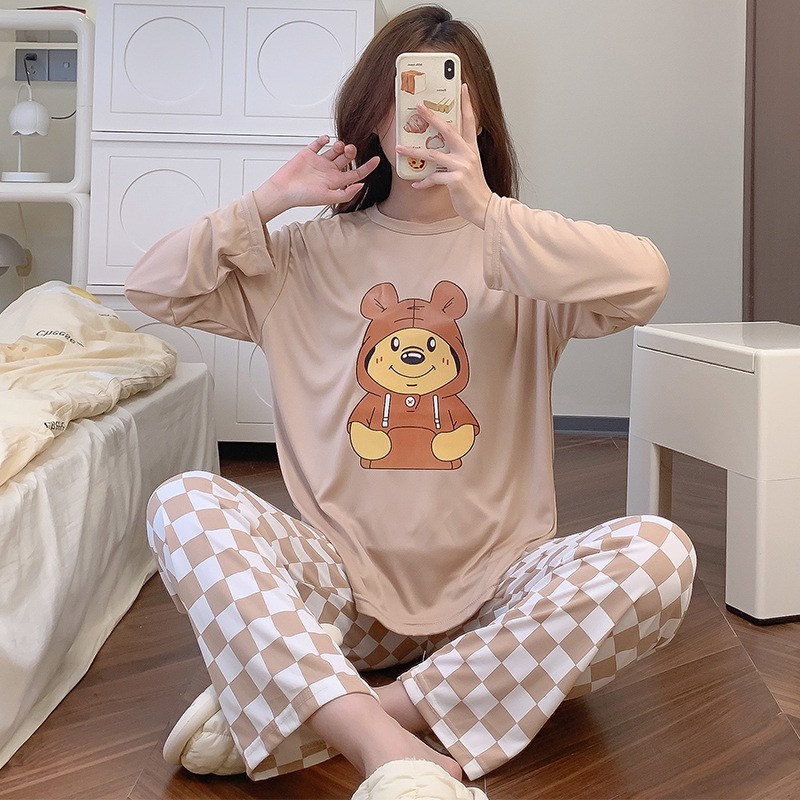 잠옷 여자의 가을 긴팔 바지 투피스 세트 한국식 귀여운 만화 캐주얼 느슨한 아웃웨어 세트