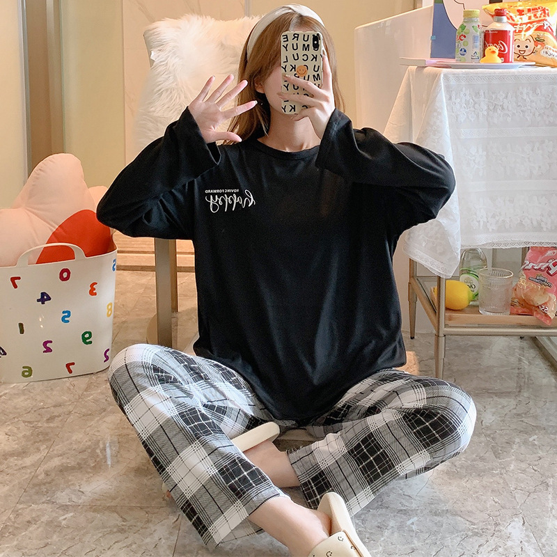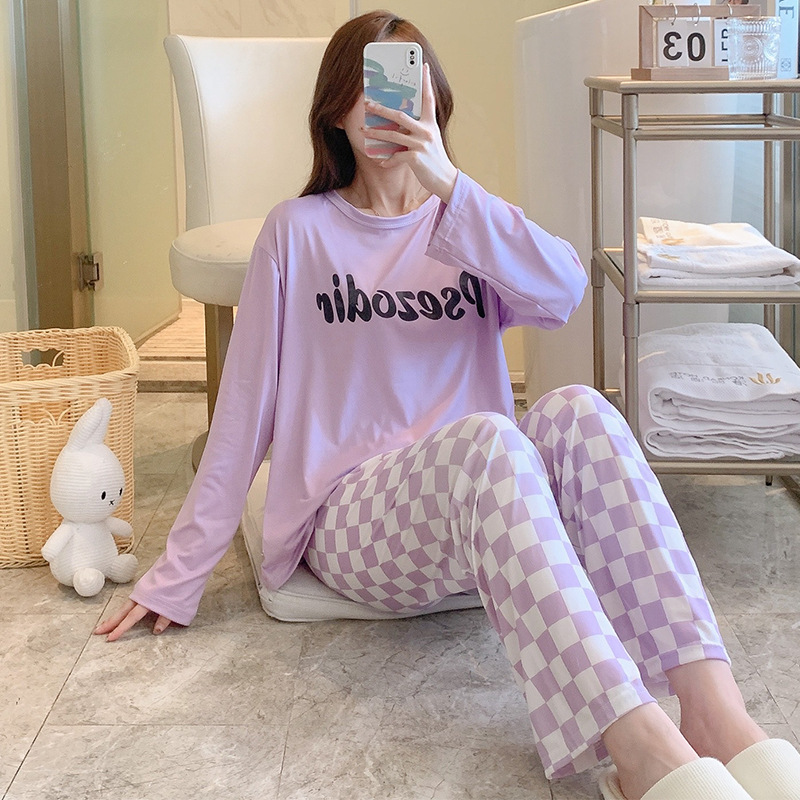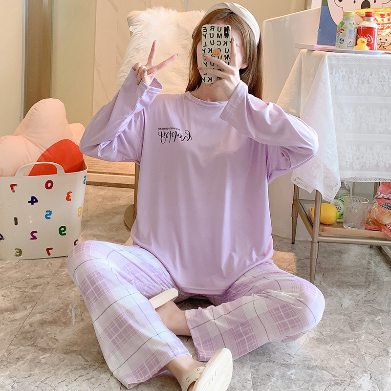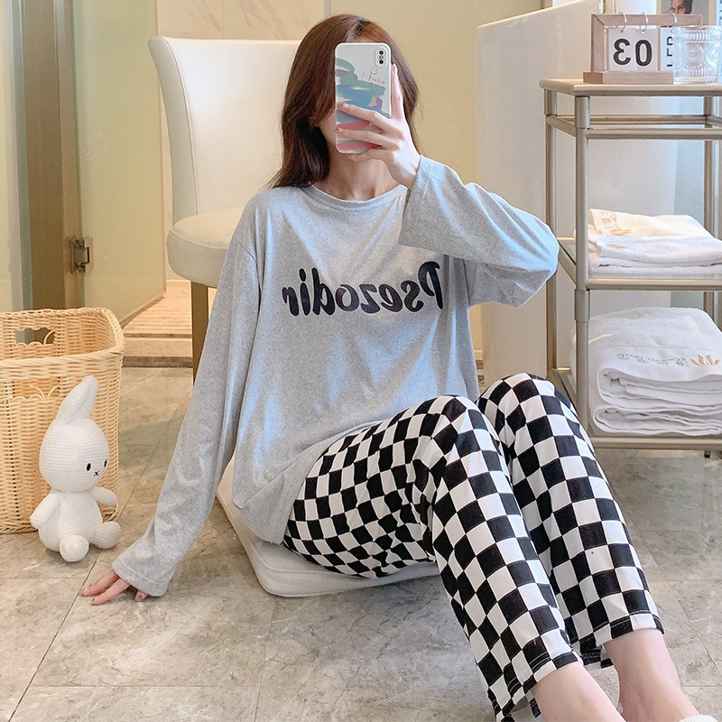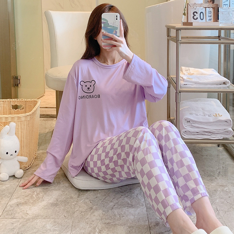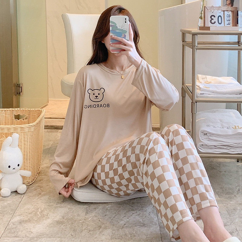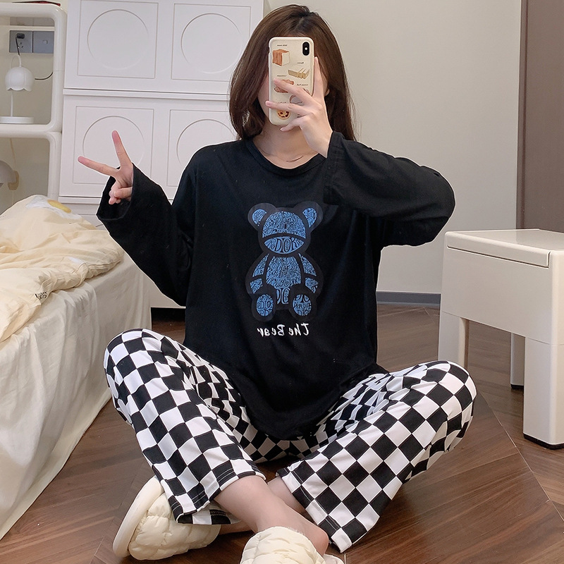 잠옷 여자의 가을 긴팔 바지 투피스 세트 한국식 귀여운 만화 캐주얼 느슨한 아웃웨어 세트스토어 가기