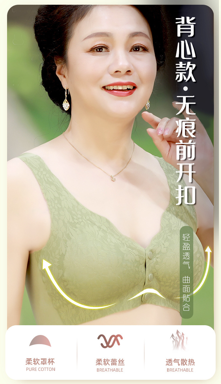 엄마의 속옷 프론트 버클 브라 심리스 개더 업 조끼 노인을위한 중년 여성 속옷 조끼 브래지어