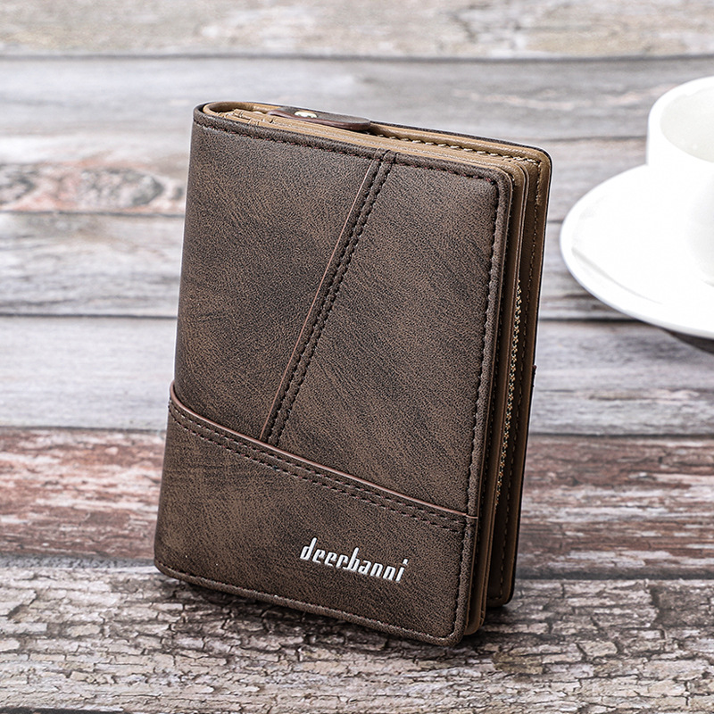 크로스 보더 유럽과 미국의 다기능 남성 가방 복고풍 체인 소프트 지갑 짧은 바느질 2 중 도매 남성 지갑스토어 가기