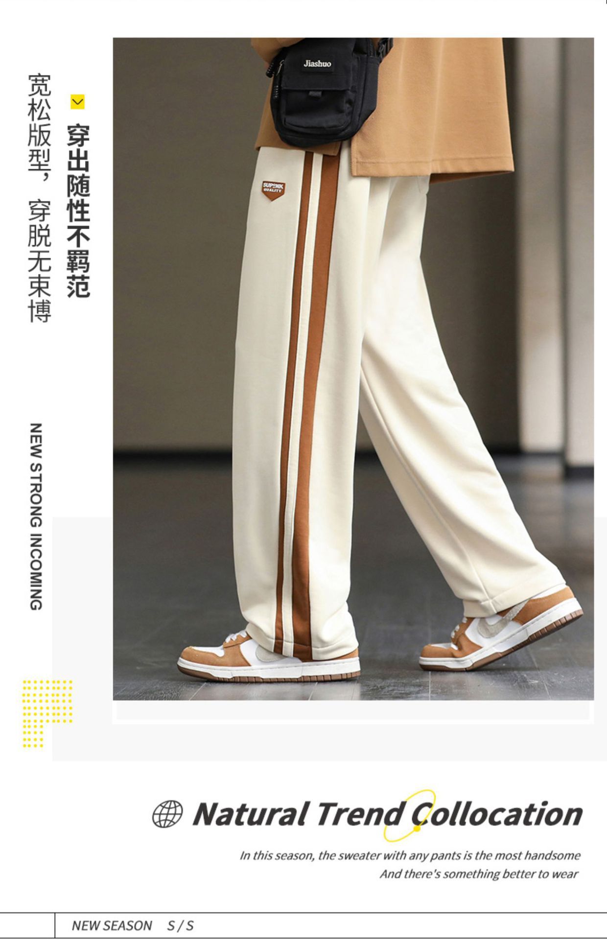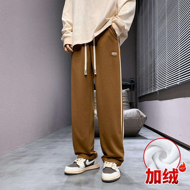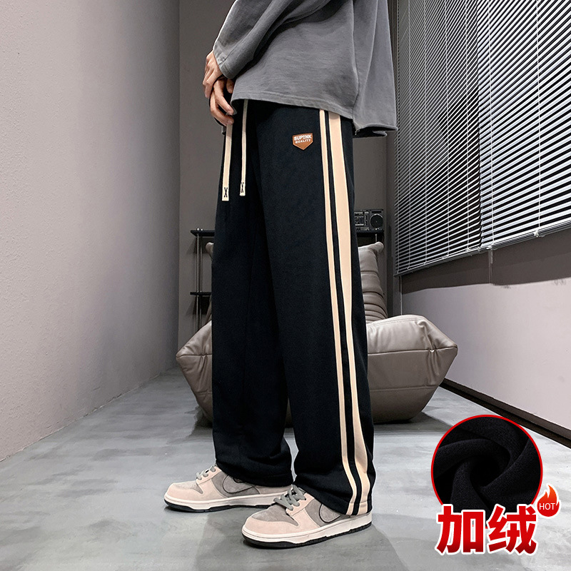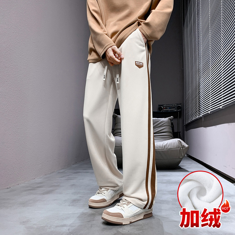 NASA 바지 남자의 2023 새로운 패션 브랜드 느슨한 스트레이트 바지 봄과 가을 스트레이트 툴링 기모 스포츠 바지 남성