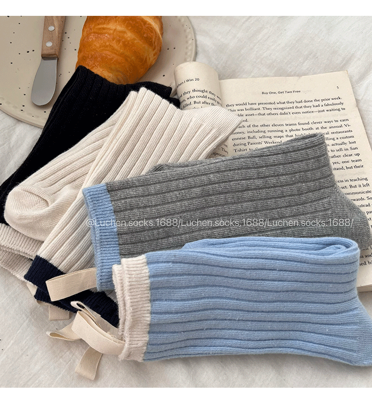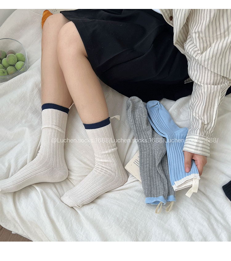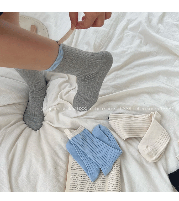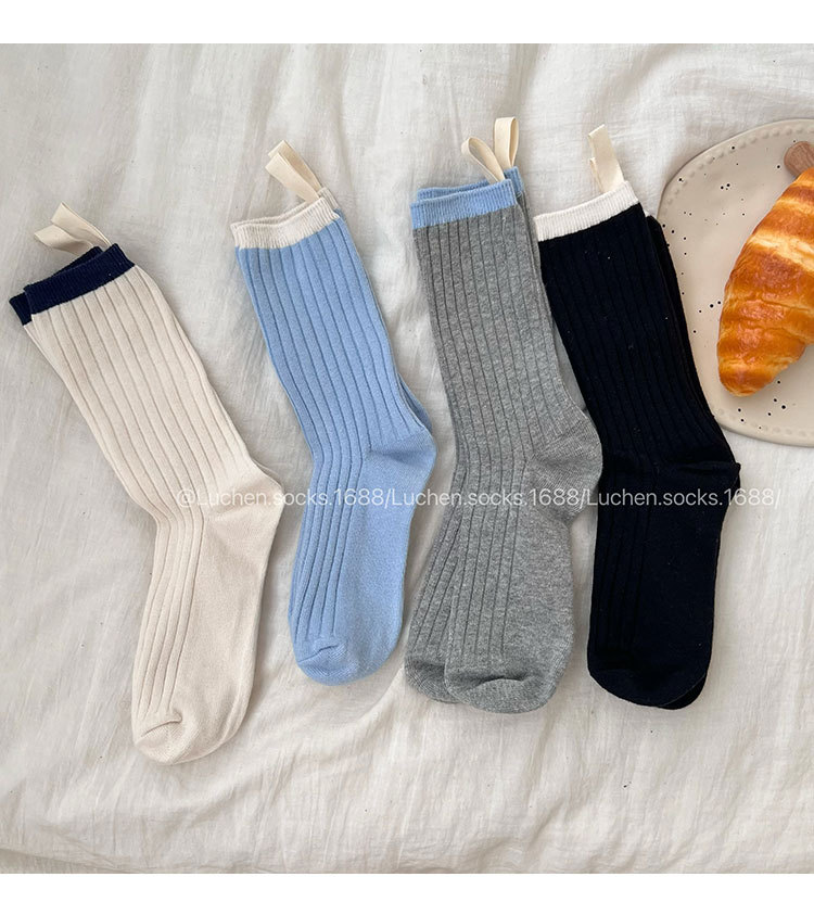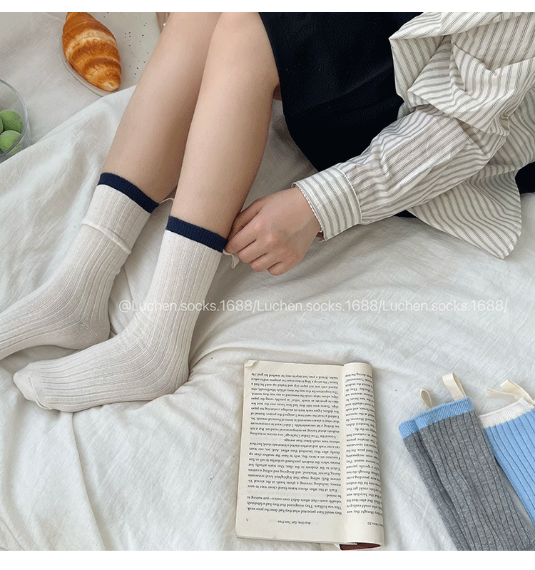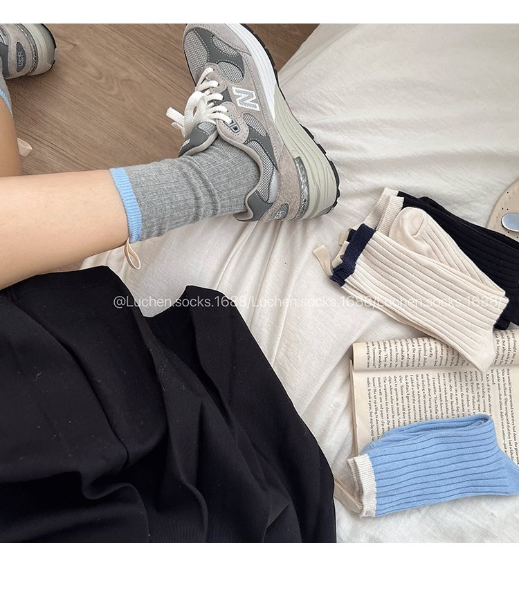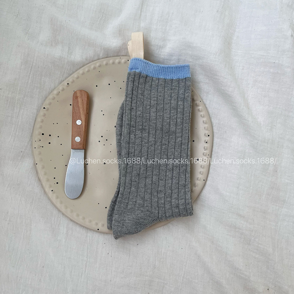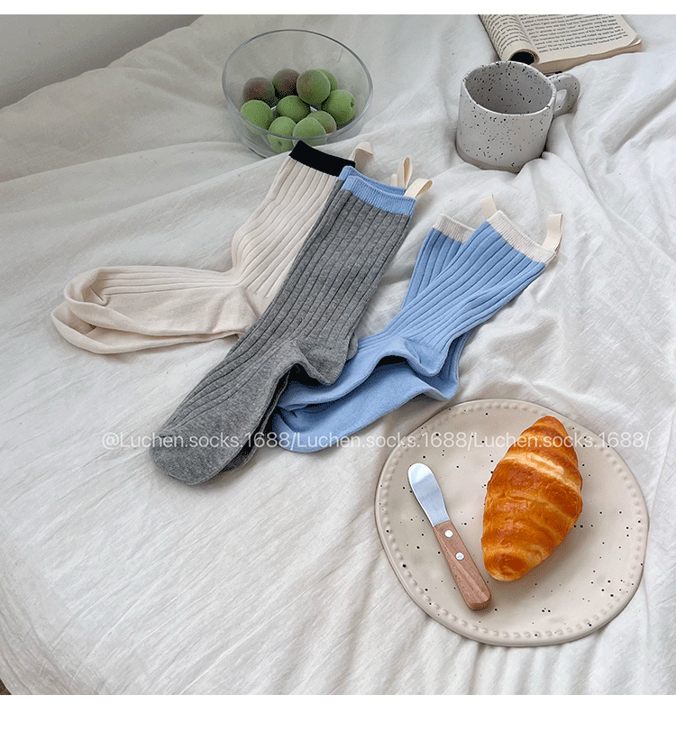 힐 천 라벨 "그레이 블루 대비 컬러 양말 여성 양말 가을과 겨울 코튼 조커 in 온라인 레드 파일 양말의 한국어 버전스토어 가기