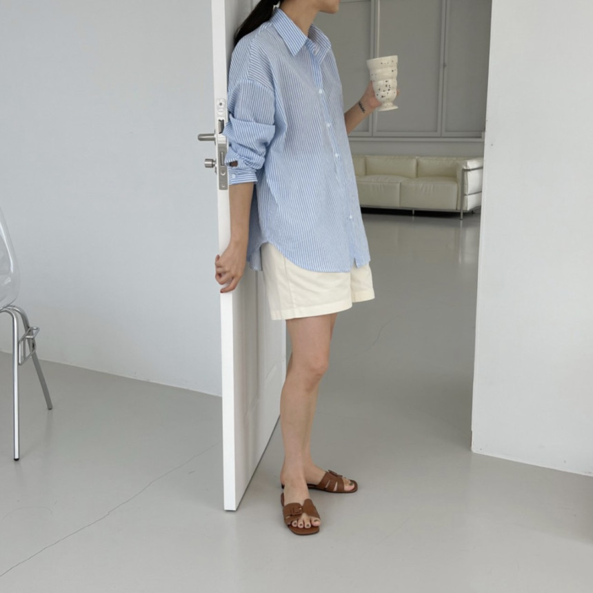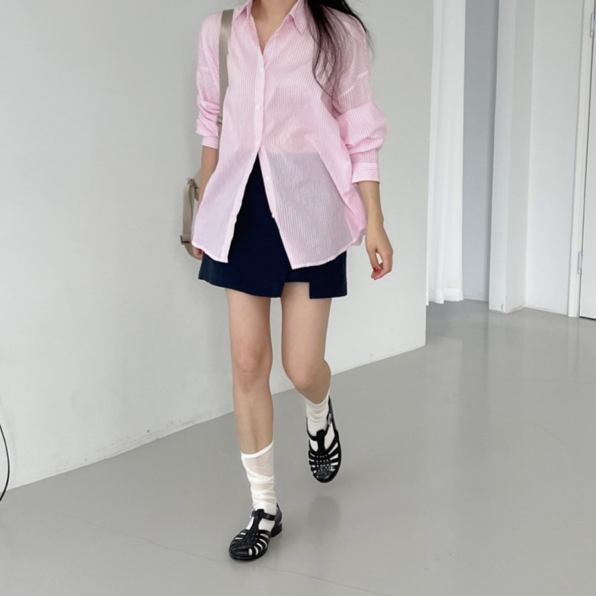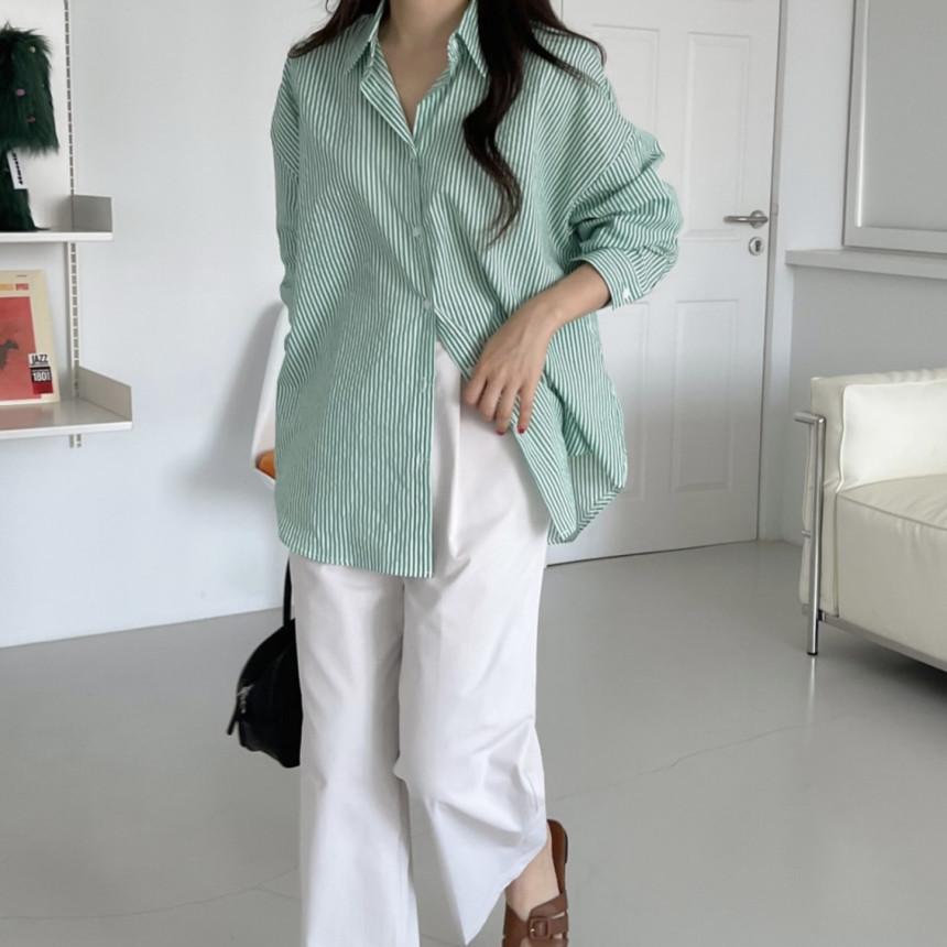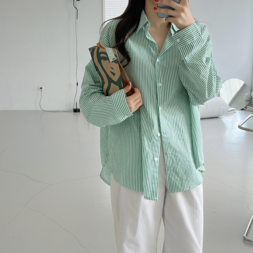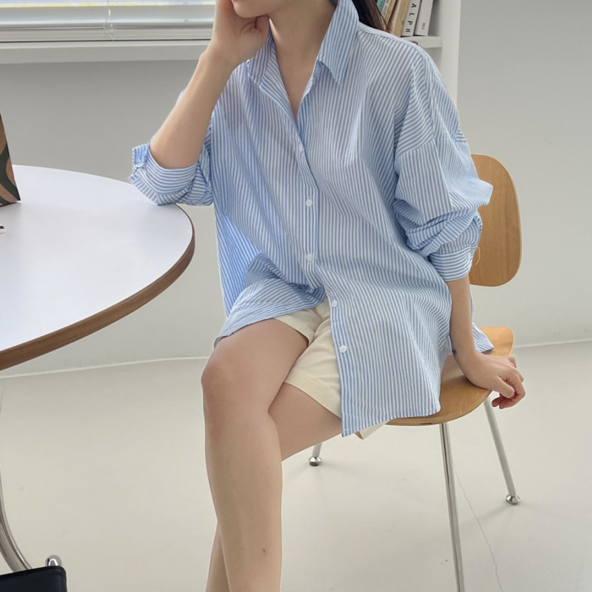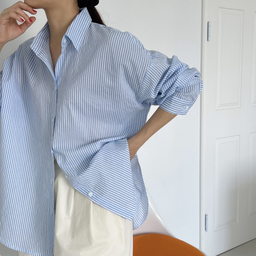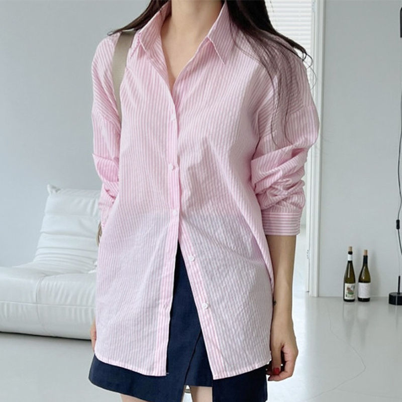 새로운 2023 초가을 새로운 캐주얼 모든 매치 칼라 스트라이프 셔츠 여성용 루즈한 긴팔 얇은 셔츠 탑스토어 가기