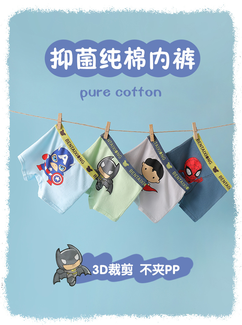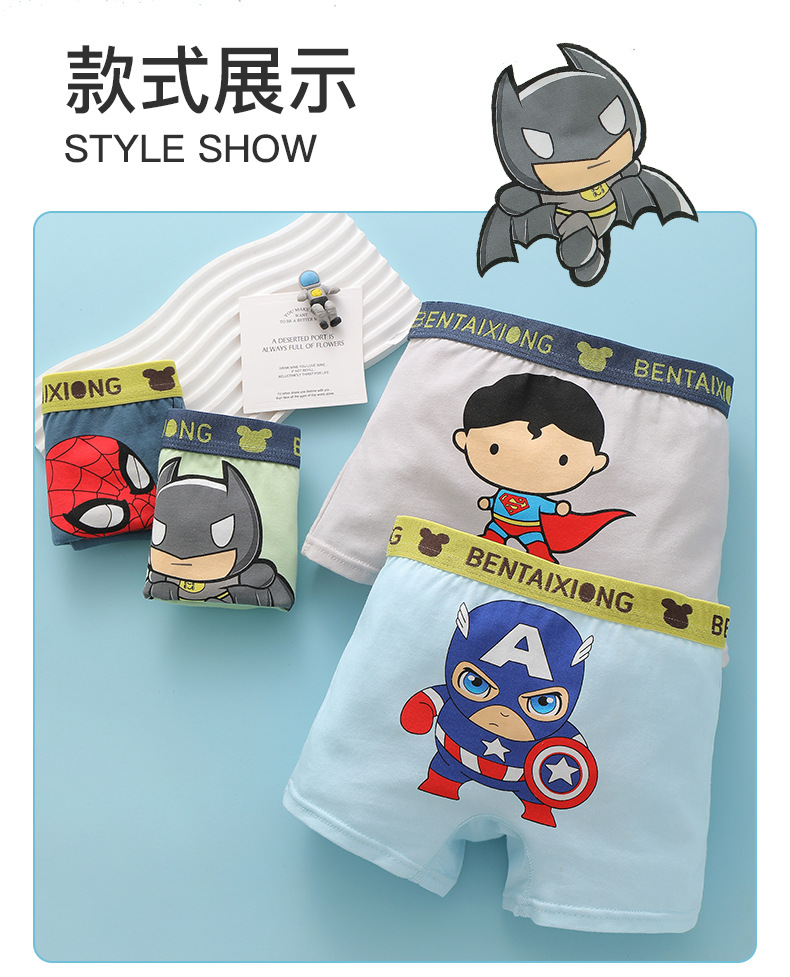 남학생 속옷 클래스 A 면 복서 어린이 속옷 만화 중소 어린이 복서 아기 반바지 제조 업체스토어 가기