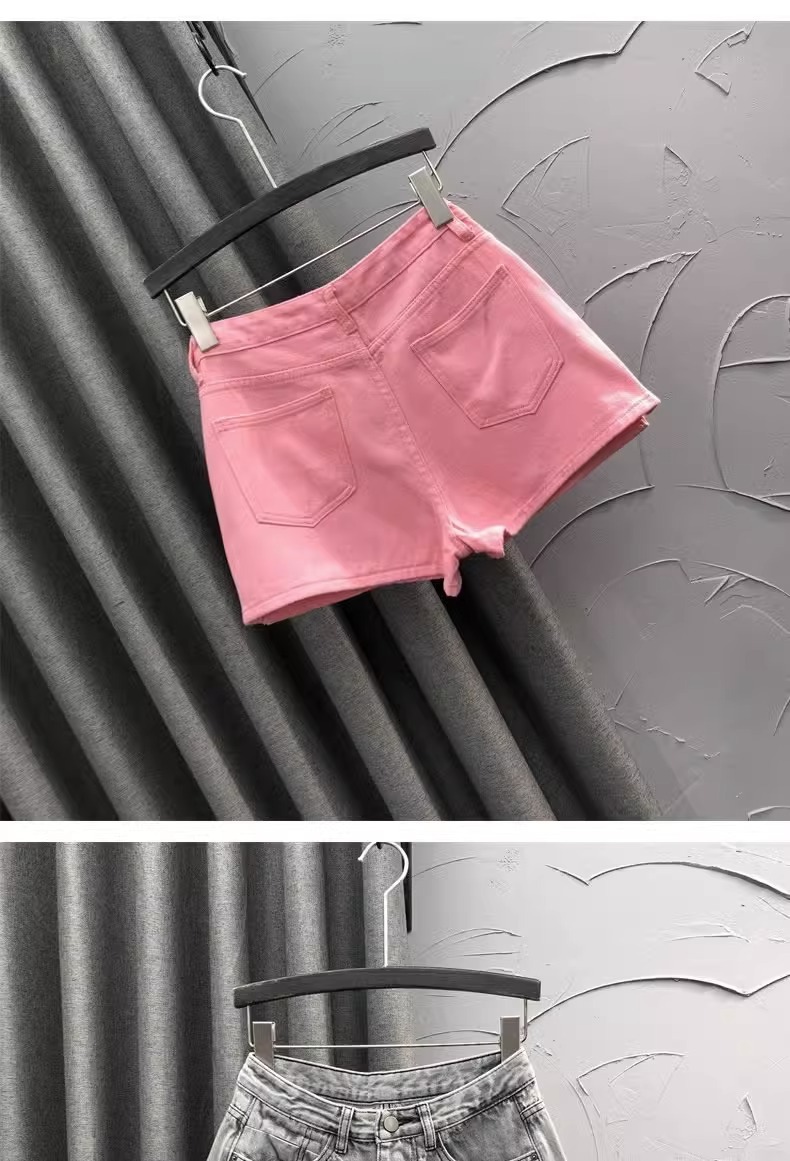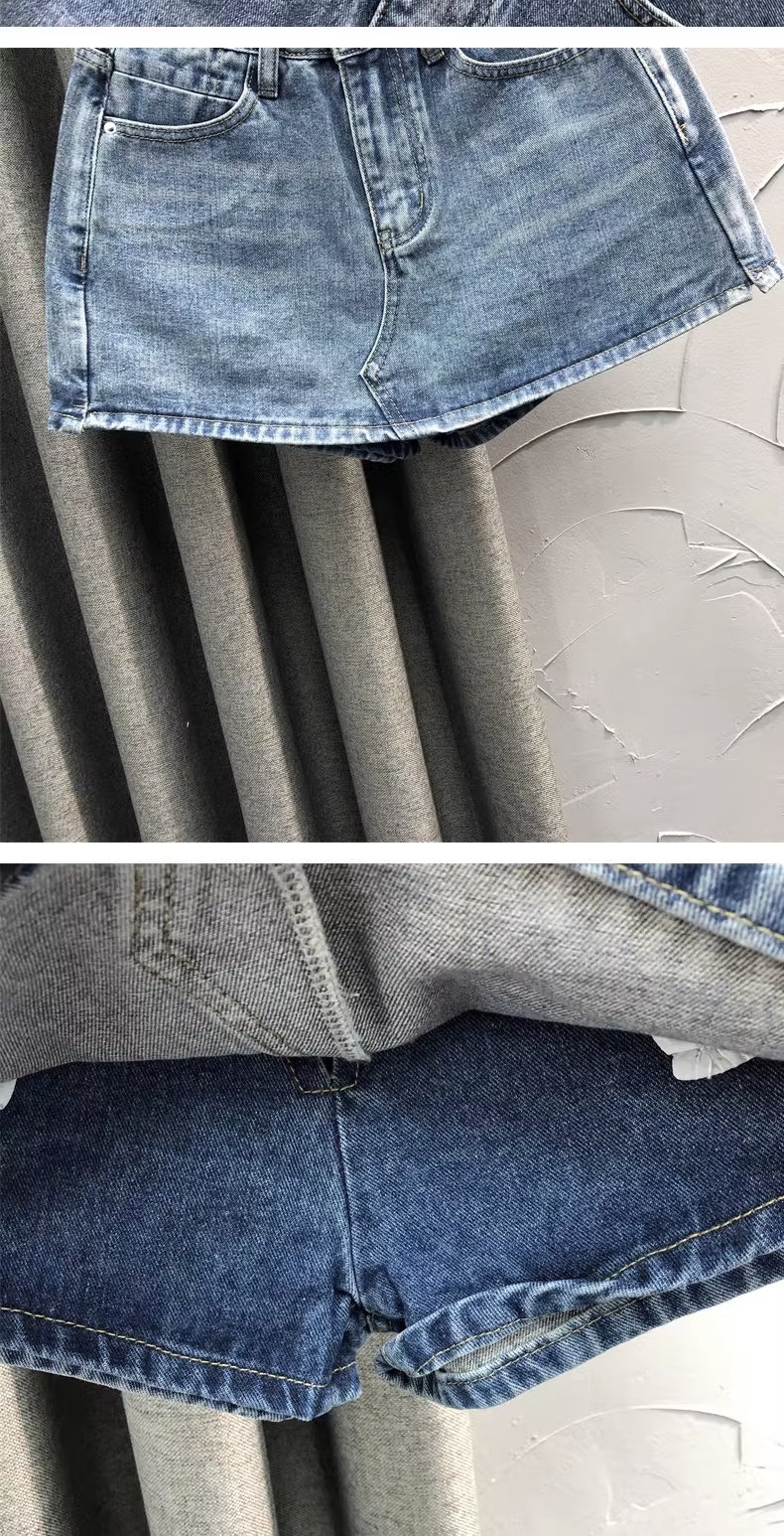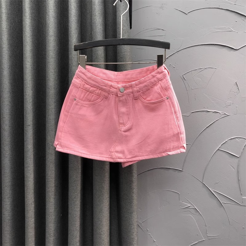 핑크색 하이웨이스트 A라인 데님 숏스커트 여성용, 나이를 줄여주는 2025년 신상 여름 패션 투피스 스타일 힙커버 스커트