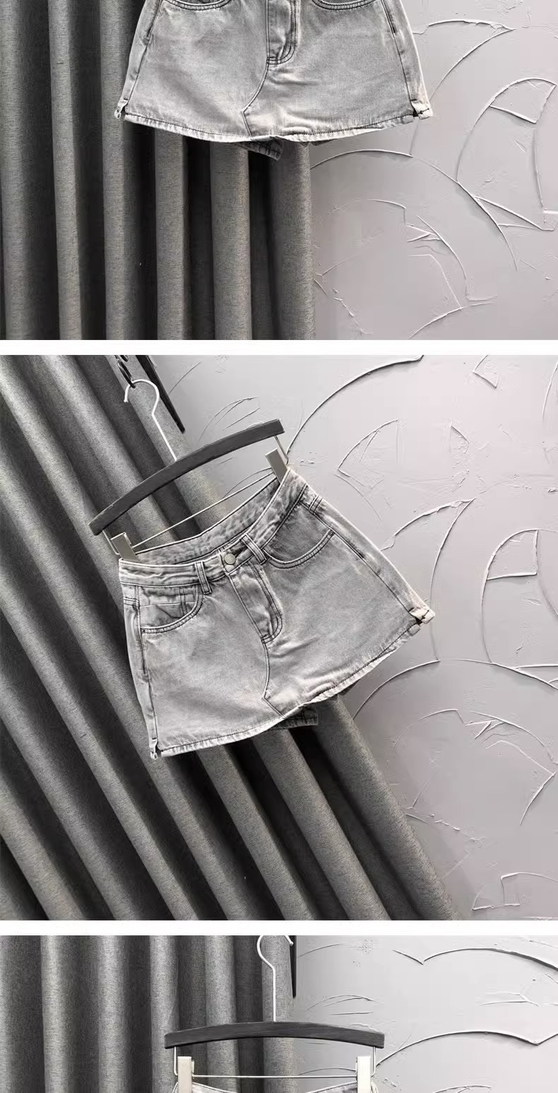 핑크색 하이웨이스트 A라인 데님 숏스커트 여성용, 나이를 줄여주는 2025년 신상 여름 패션 투피스 스타일 힙커버 스커트스토어 가기