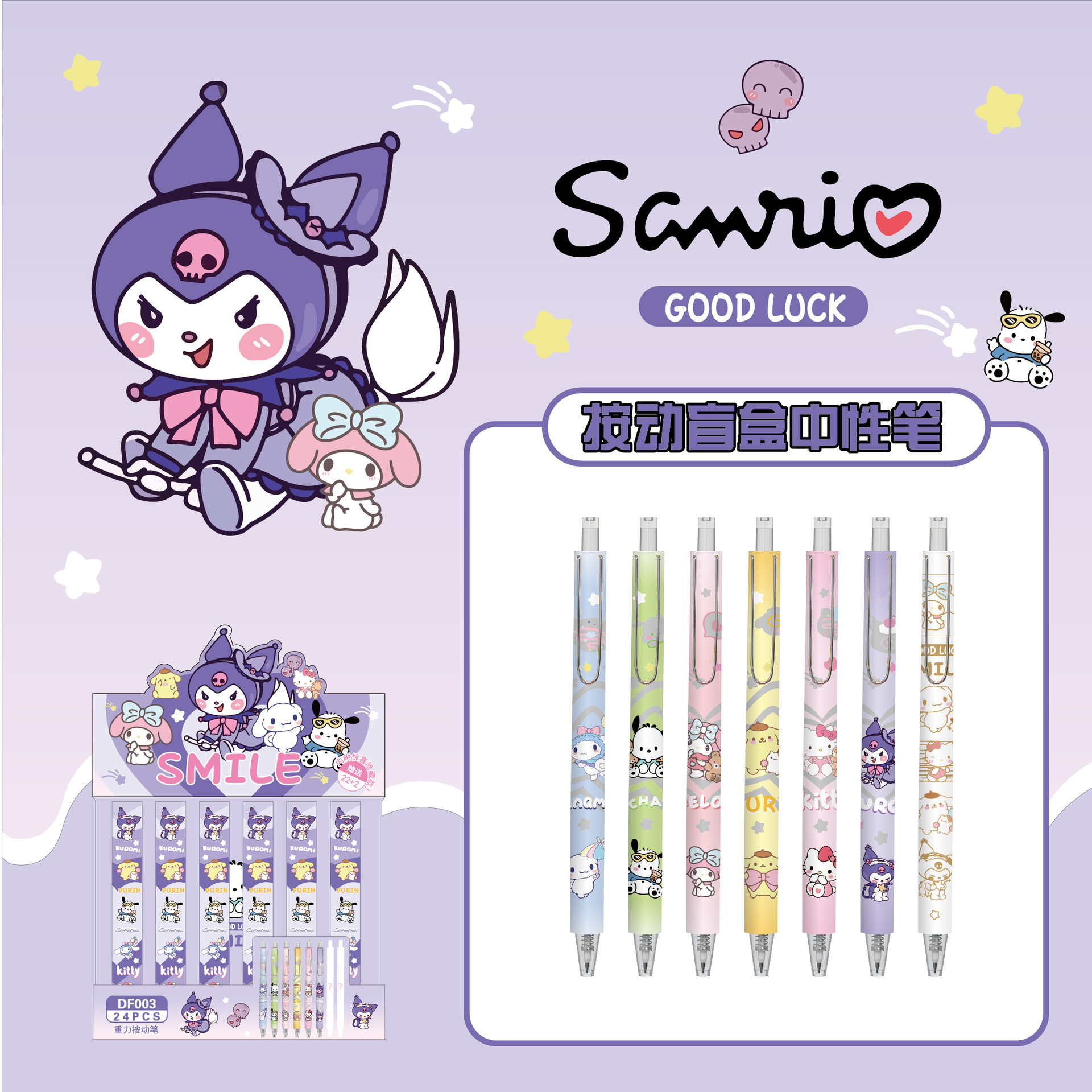 슈퍼 멀티 애니메이션 새로운 산리오 가족 블라인드 박스 펜 만화 귀여운 제한된 플라스틱 프레스 젤 펜 0.5 블랙