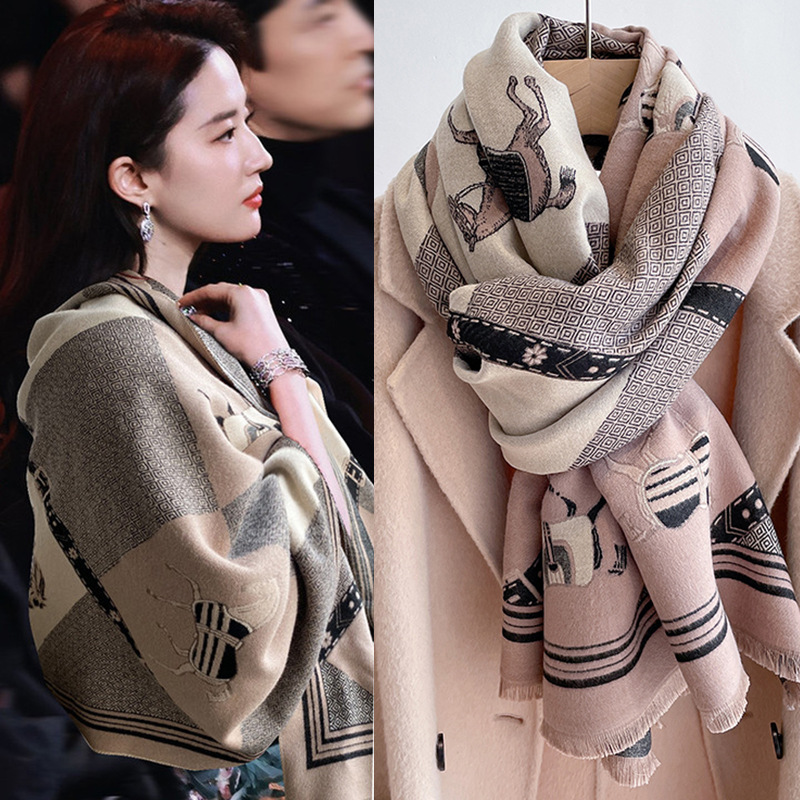 여성 스카프 2023 새로운 패션 포니 올 매치 캐시미어 목도리 가을과 겨울 유럽과 미국의 두꺼운 학생 따뜻한 스카프