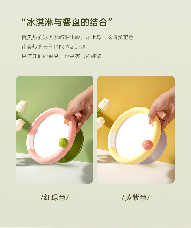 아이스크림 고양이 그릇 (노란색과 보라색) 아이스크림 고양이 그릇 더블 컬러 귀여운 색상 고양이 애완 동물 식탁 도자기 그릇 용품스토어 가기