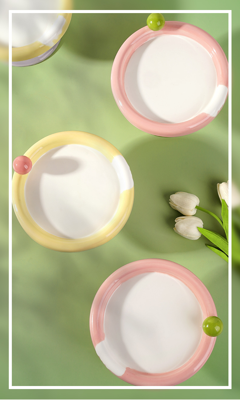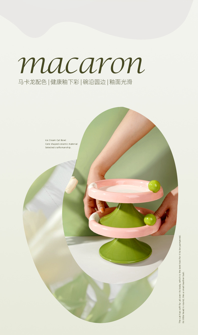 아이스크림 고양이 그릇 (노란색과 보라색) 아이스크림 고양이 그릇 더블 컬러 귀여운 색상 고양이 애완 동물 식탁 도자기 그릇 용품