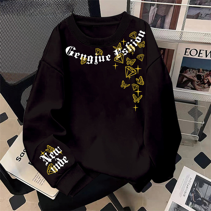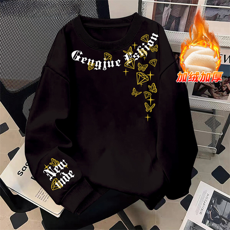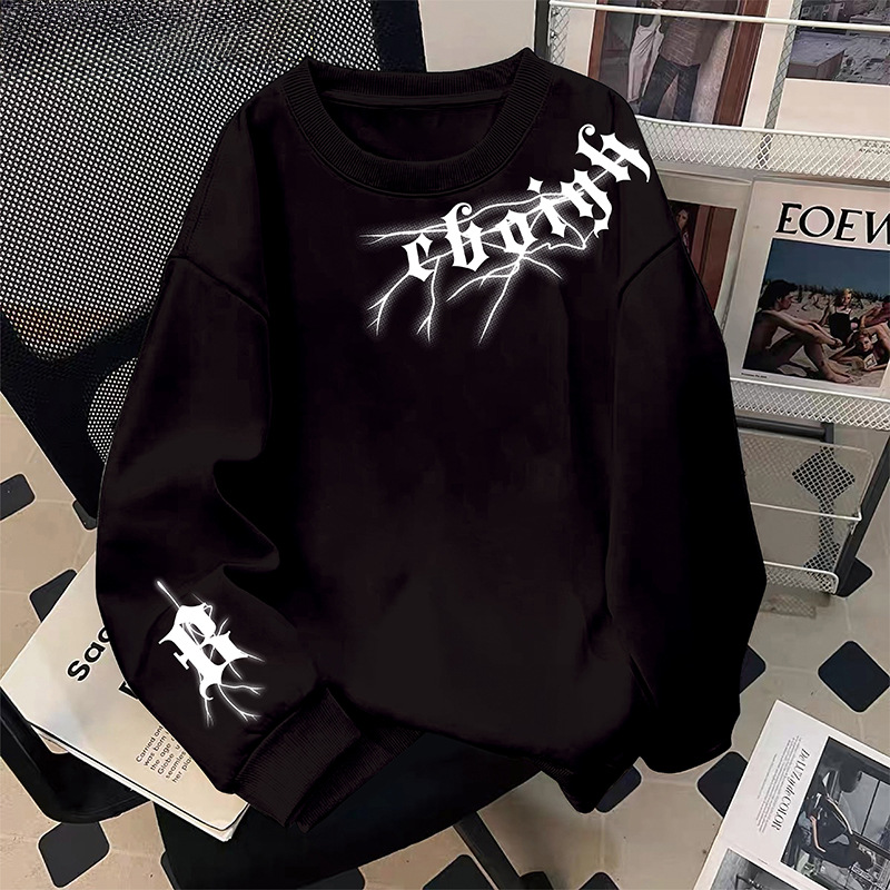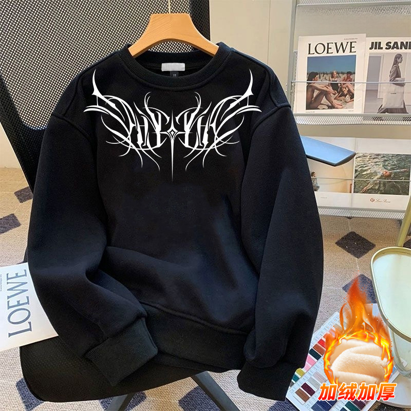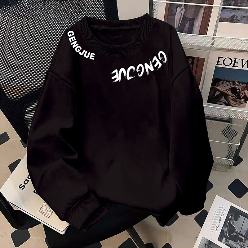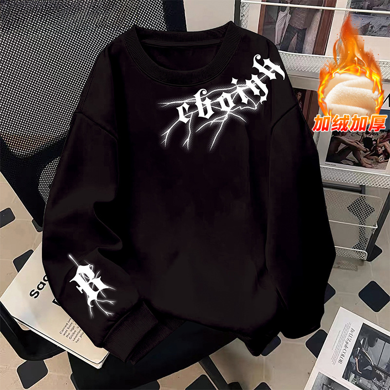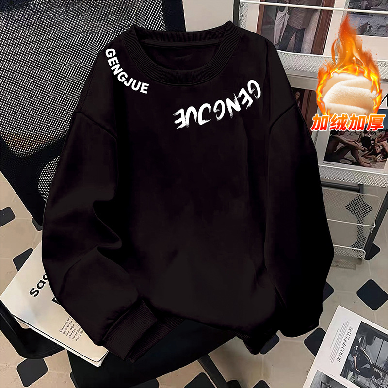 미국 남자의 기모 두꺼운 겨울 스웨터 유행 브랜드 느슨한 편지 인쇄 홍콩 스타일 모든 일치 캐주얼 봄과 가을 탑스토어 가기