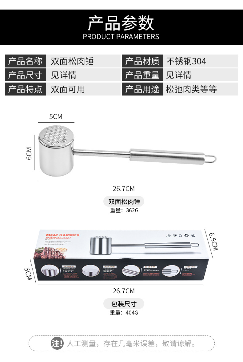 304 스테인레스 스틸 고기 망치 양면 느슨한 고기 망치 가정용 고기 망치 스테이크 해머 부드러운 고기 망치 주방 가제트스토어 가기
