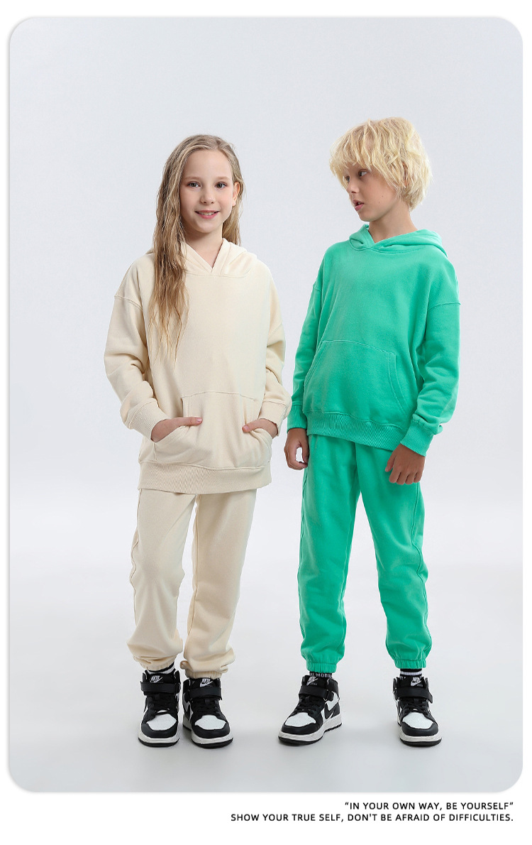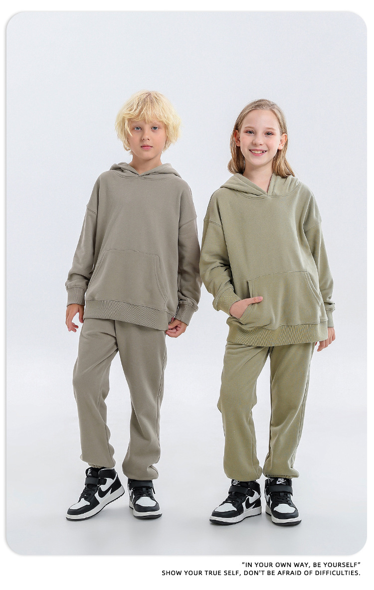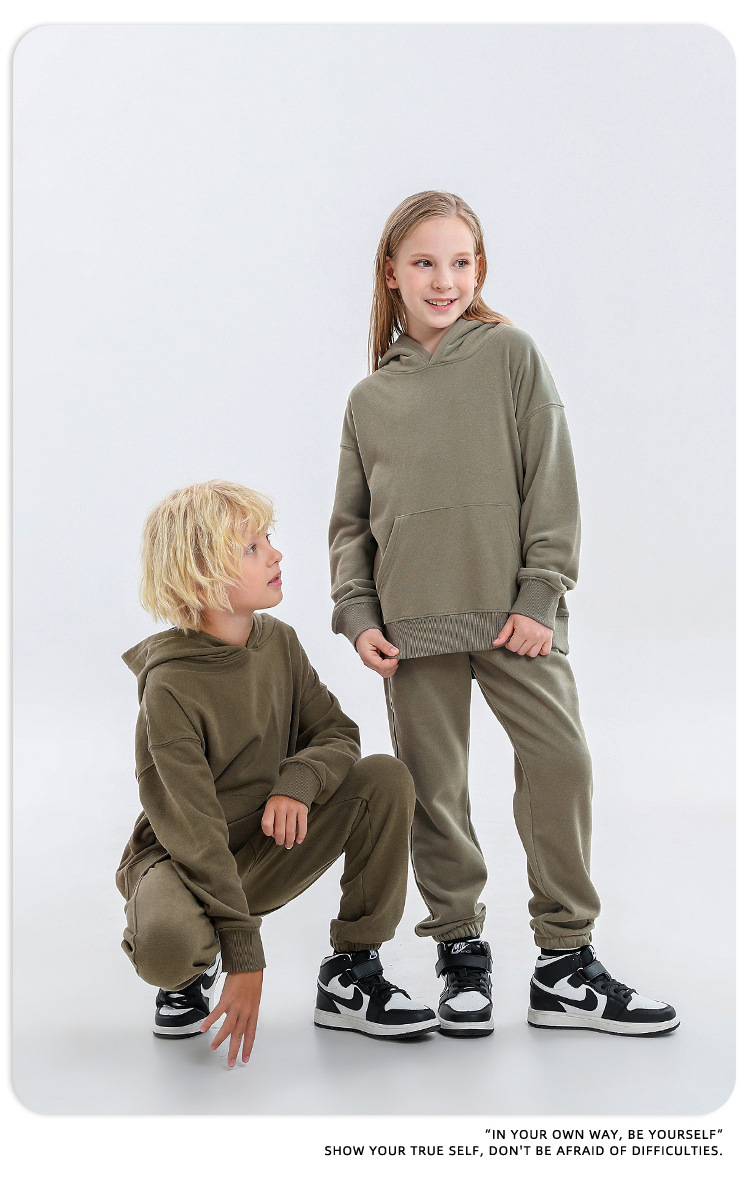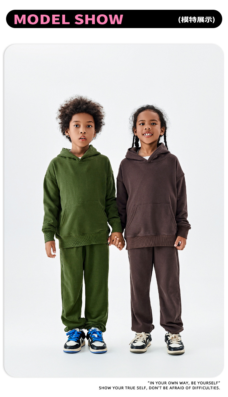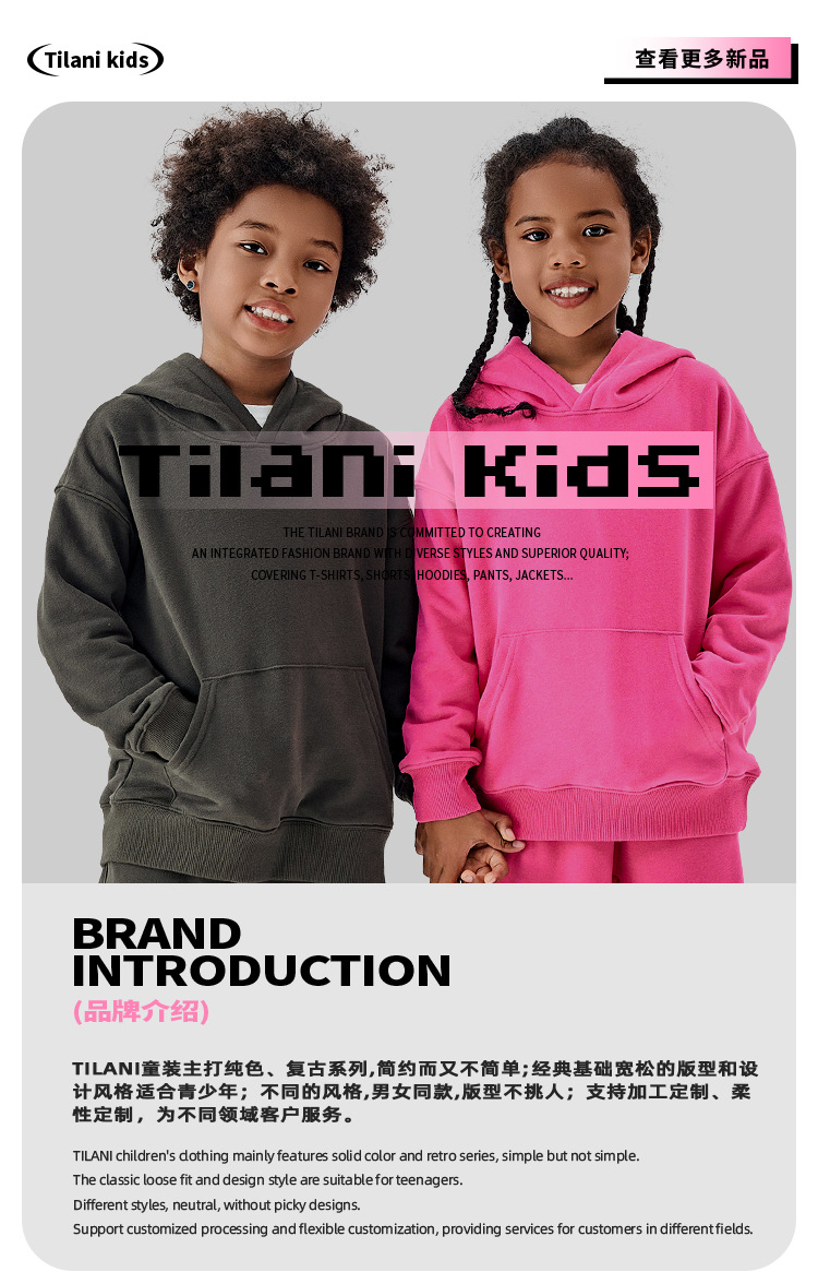 TILANI 아동복 유럽 및 미국 가을/겨울 Maillard 320g 테리면 소형 중형 남성 및 여성용 단색 느슨한 아동용 조끼스토어 가기