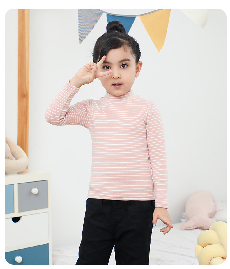 가을과 겨울 어린이 면화 중간 칼라 바닥 셔츠 남자 긴 소매 티셔츠 가을 옷 여자 하이 칼라 재킷 도매