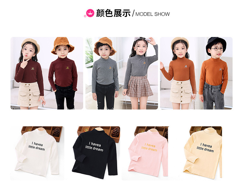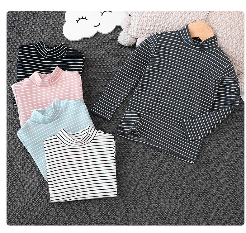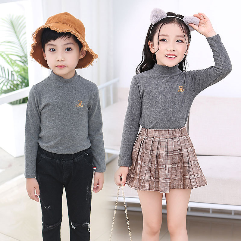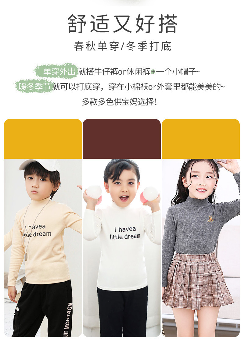 가을과 겨울 어린이 면화 중간 칼라 바닥 셔츠 남자 긴 소매 티셔츠 가을 옷 여자 하이 칼라 재킷 도매스토어 가기