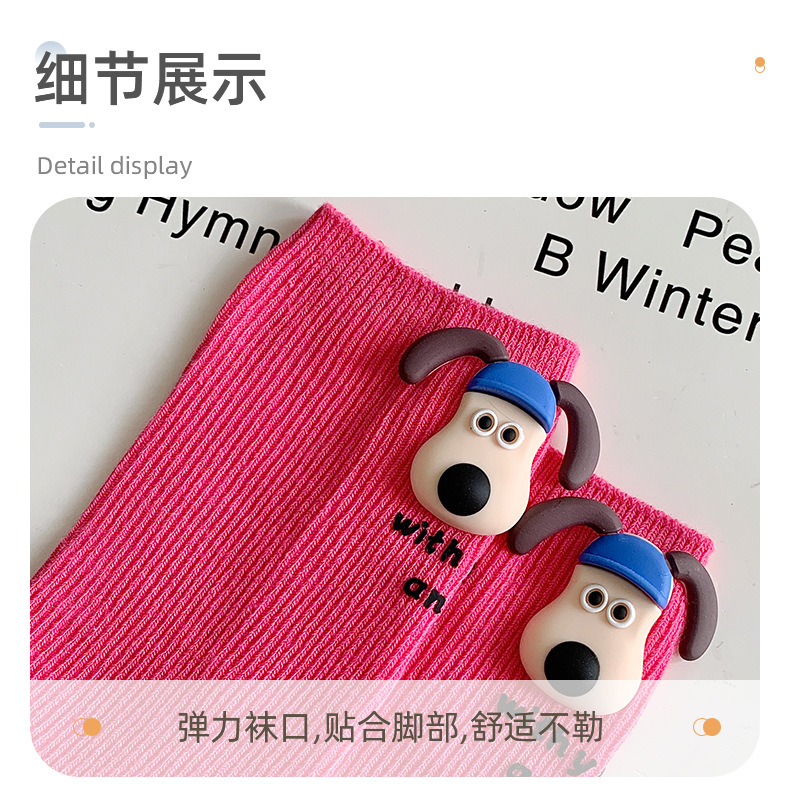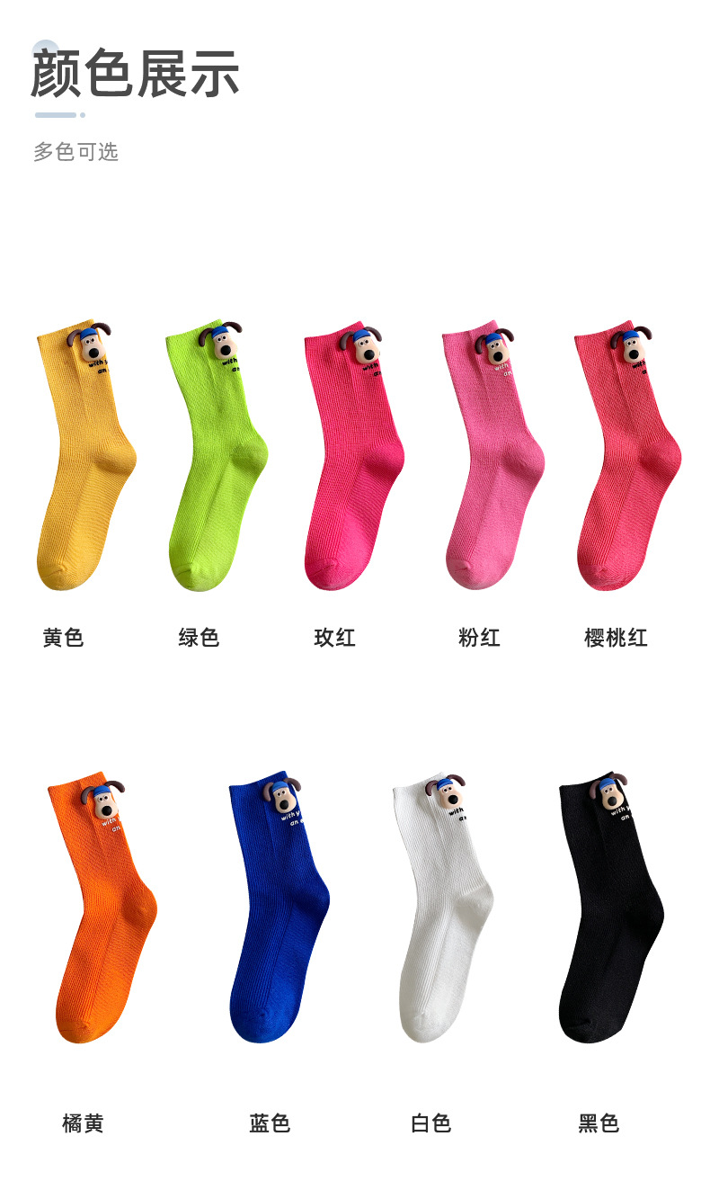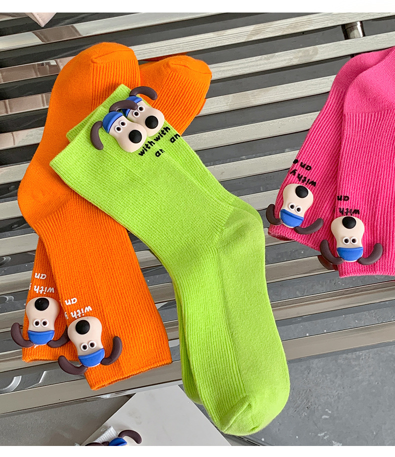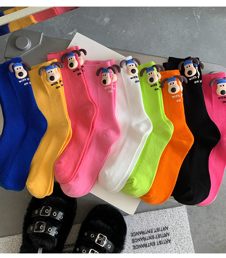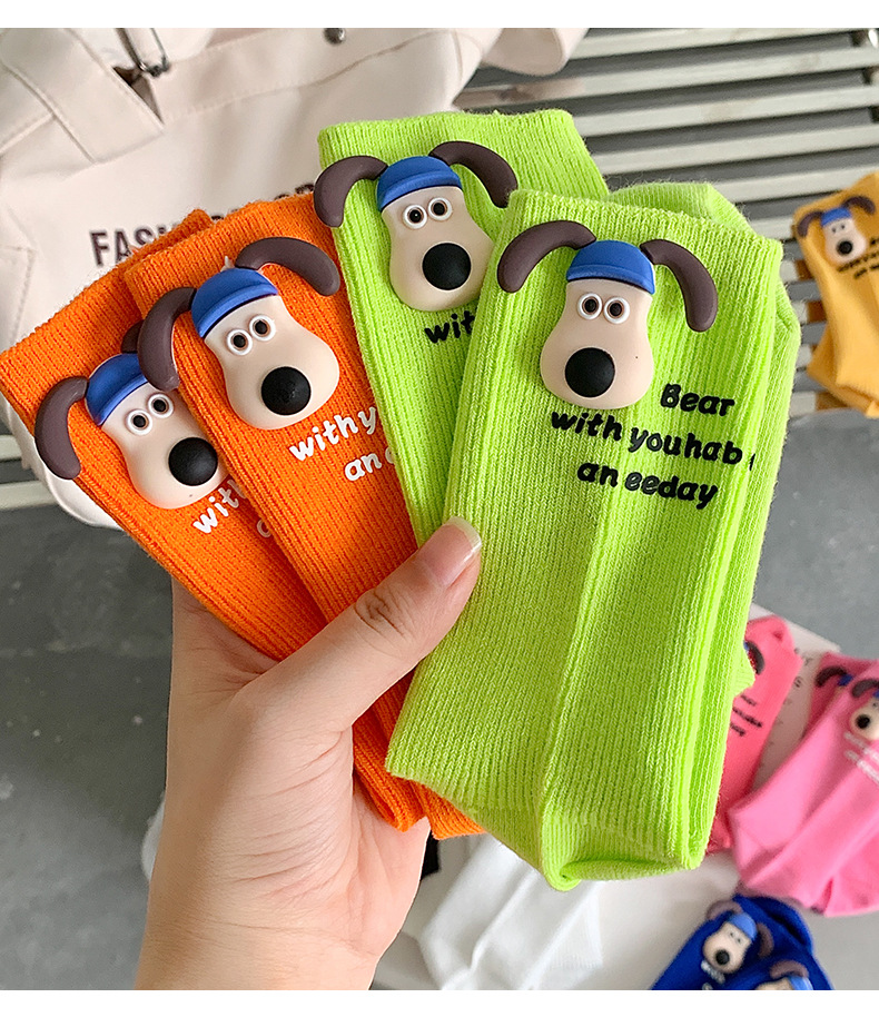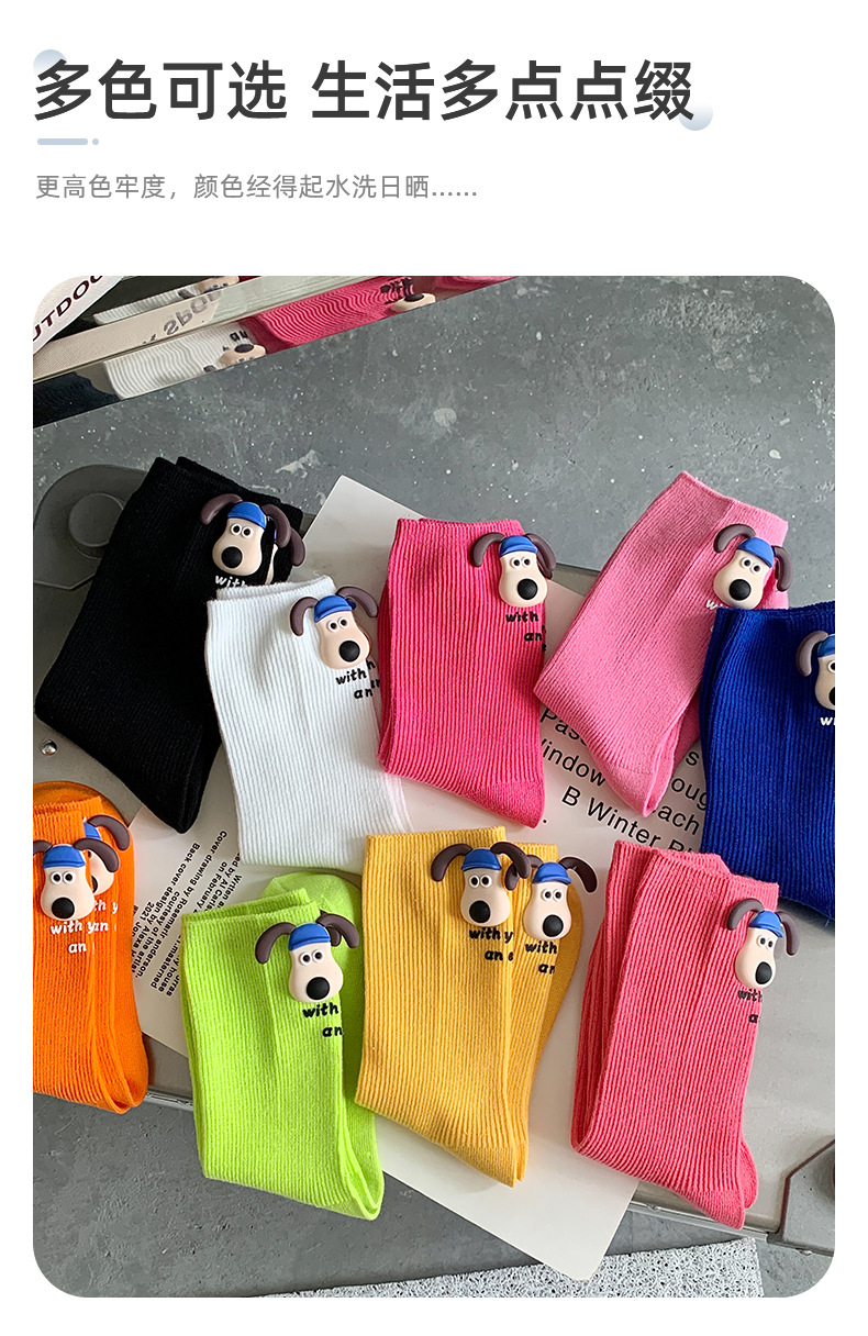 조수 양말 인터넷 인기 캔디 컬러 더블 바늘 양말 독특한 가을 귀여운 만화 강아지 인형 알파벳 더미 양말스토어 가기