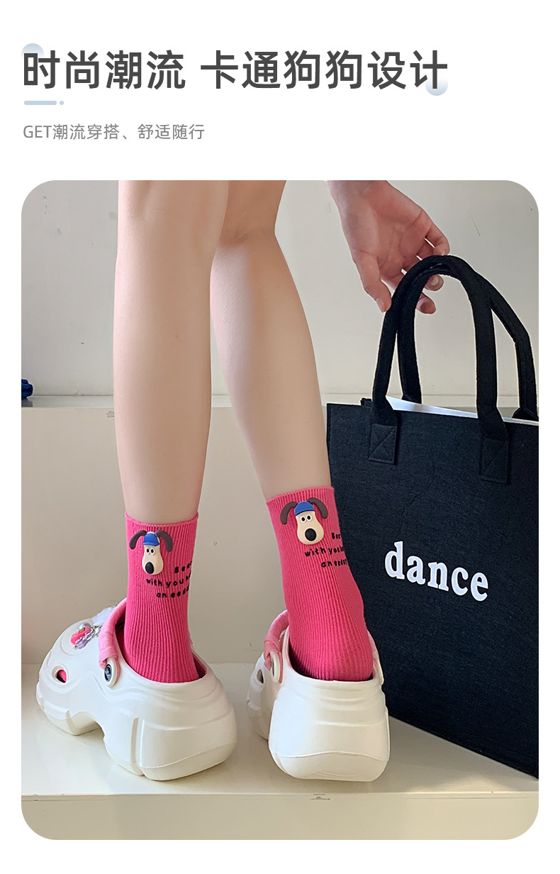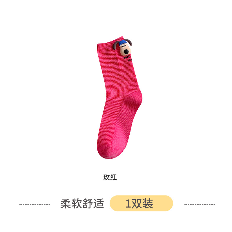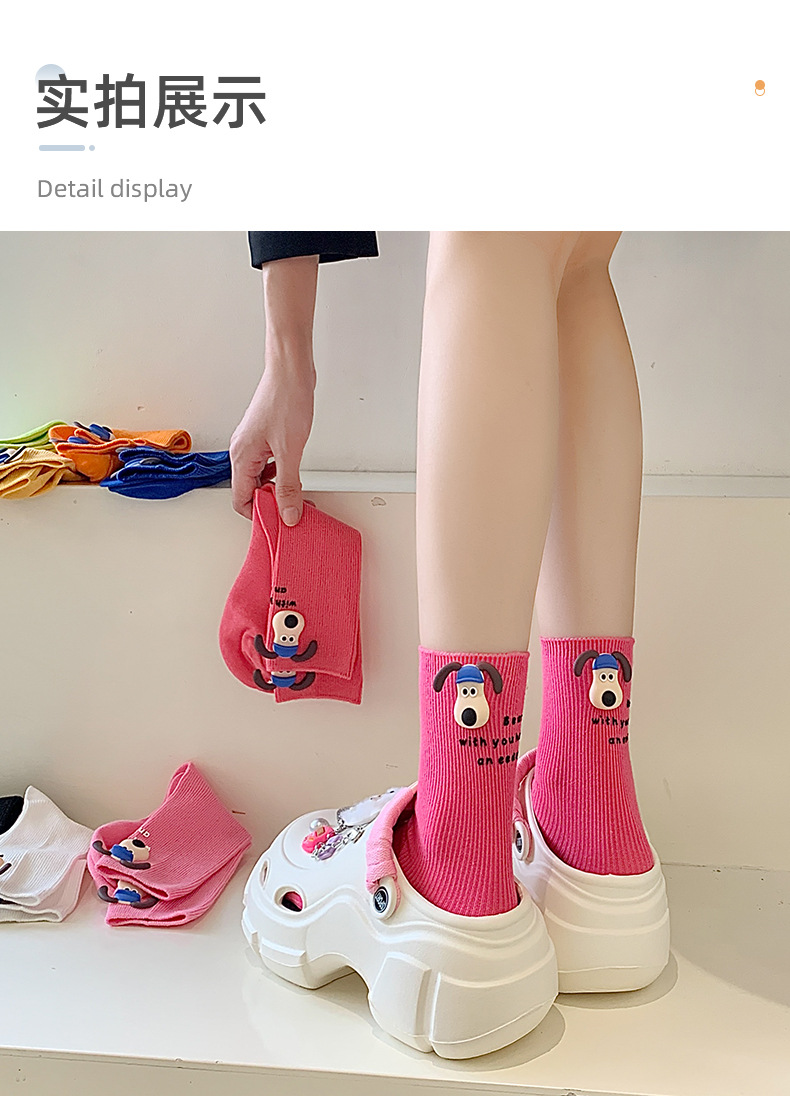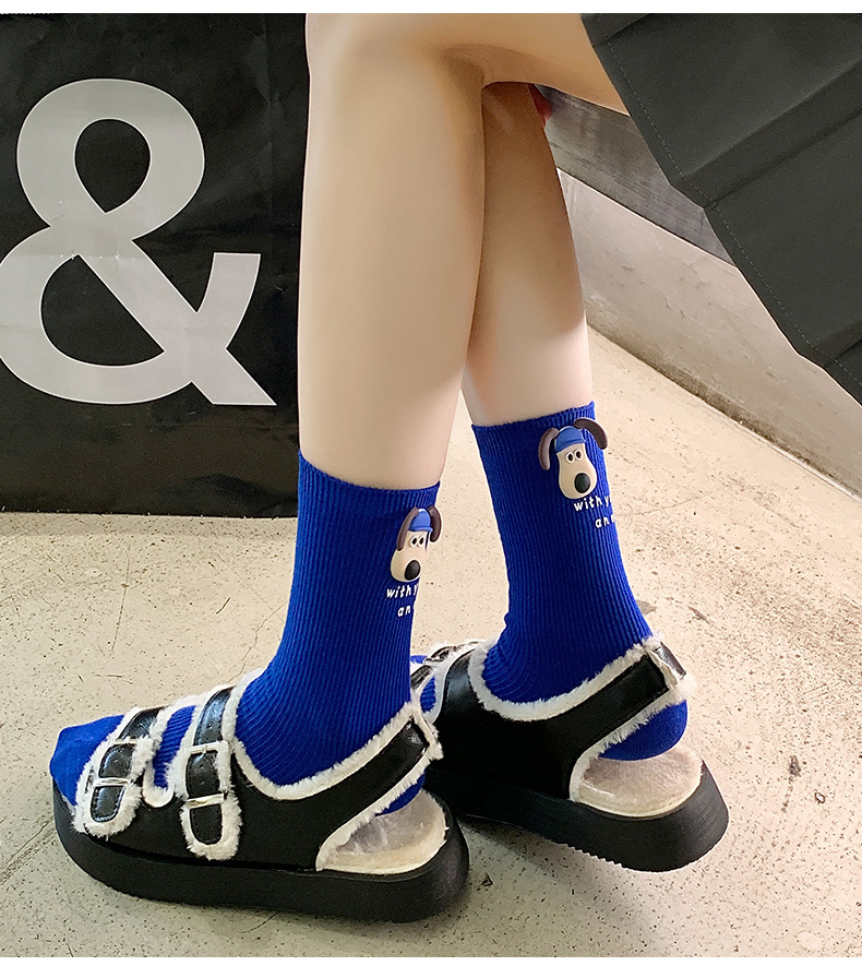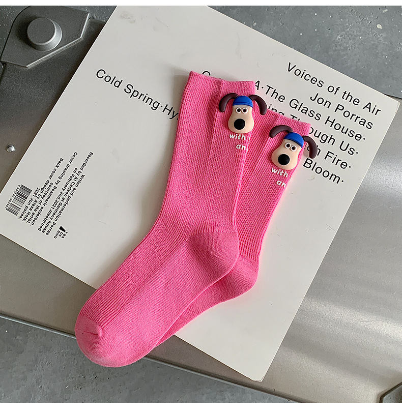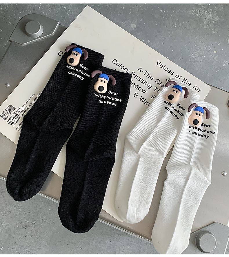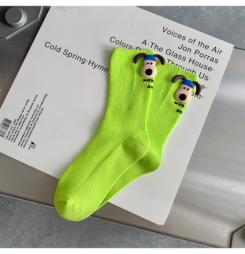 조수 양말 인터넷 인기 캔디 컬러 더블 바늘 양말 독특한 가을 귀여운 만화 강아지 인형 알파벳 더미 양말스토어 가기