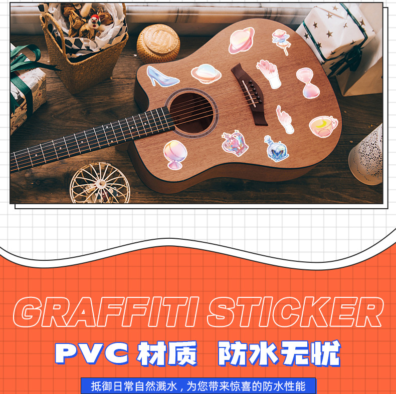꿈꾸는 투명 질감 낙서 스티커 50 개 학교 가방 펜 용기 컴퓨터 장식 스티커 방수 창조적 문구 스티커