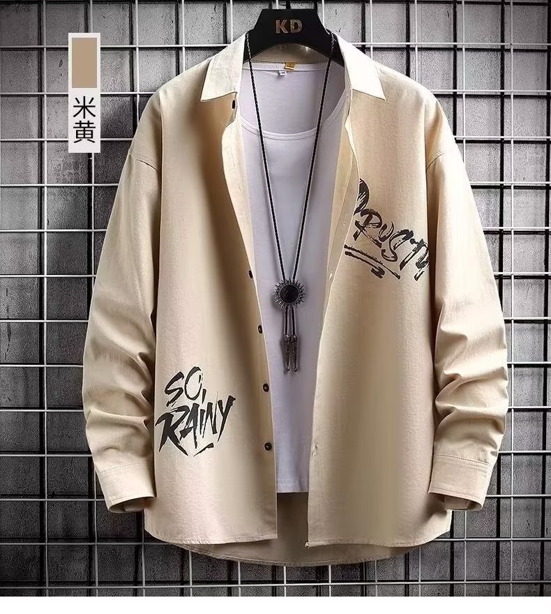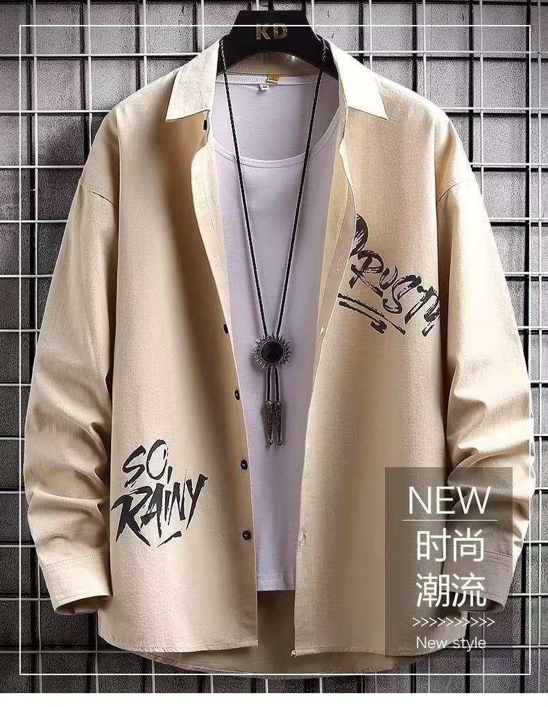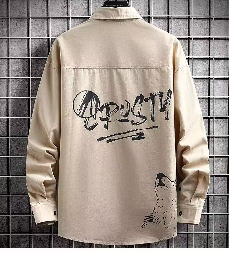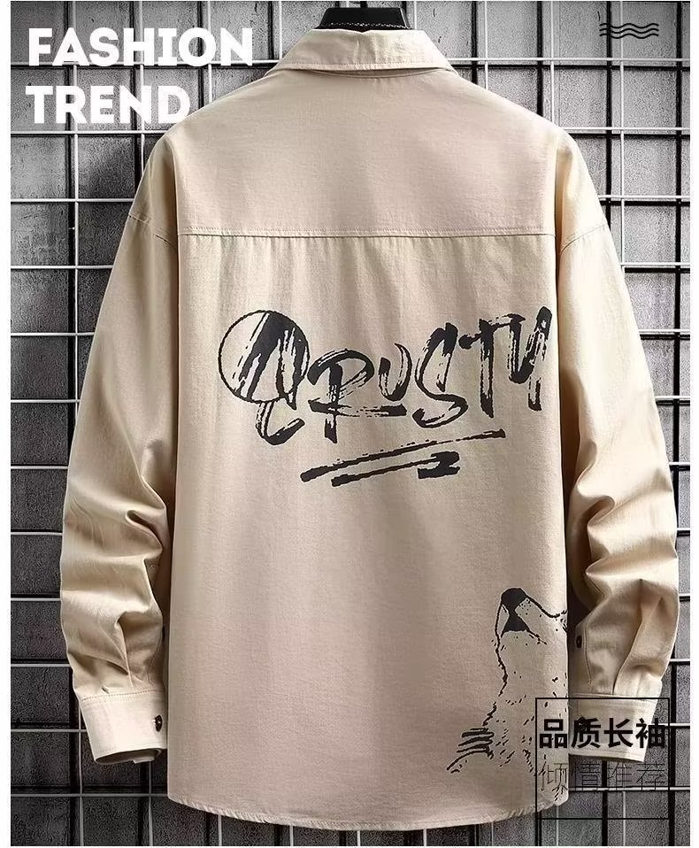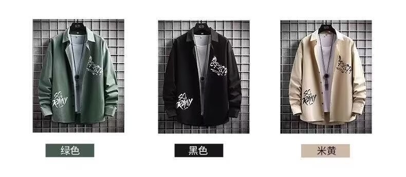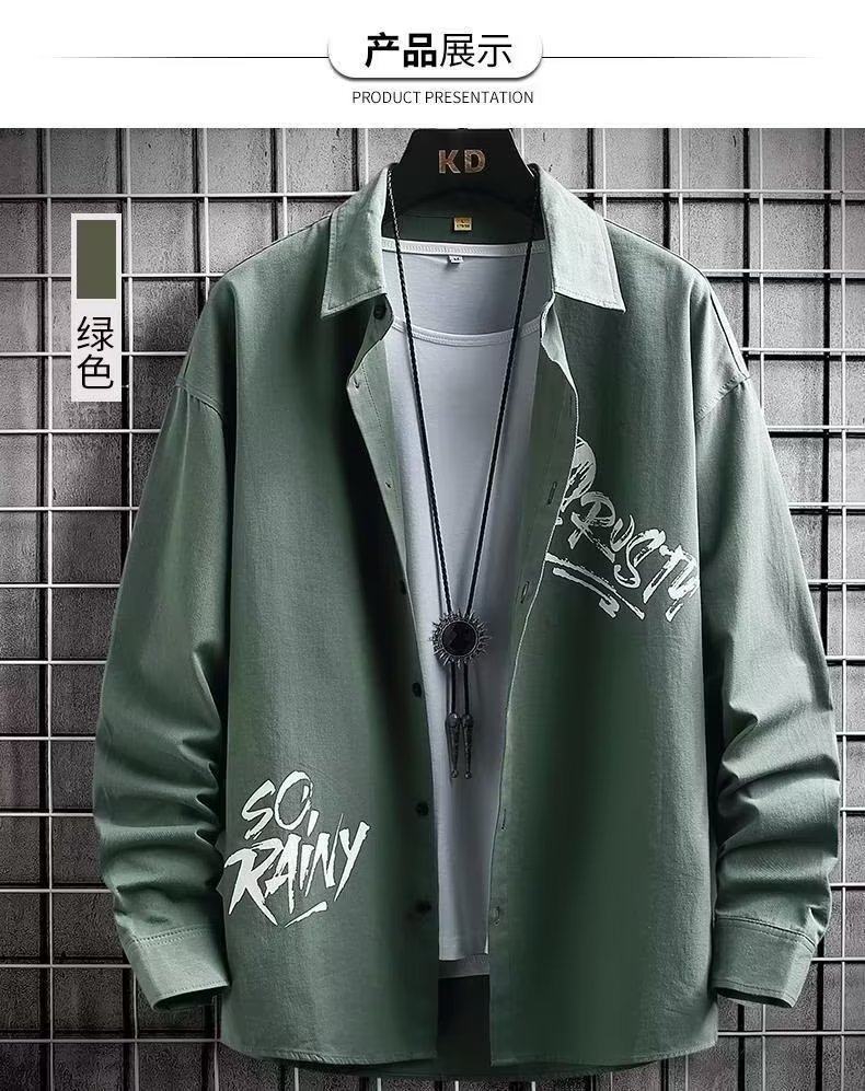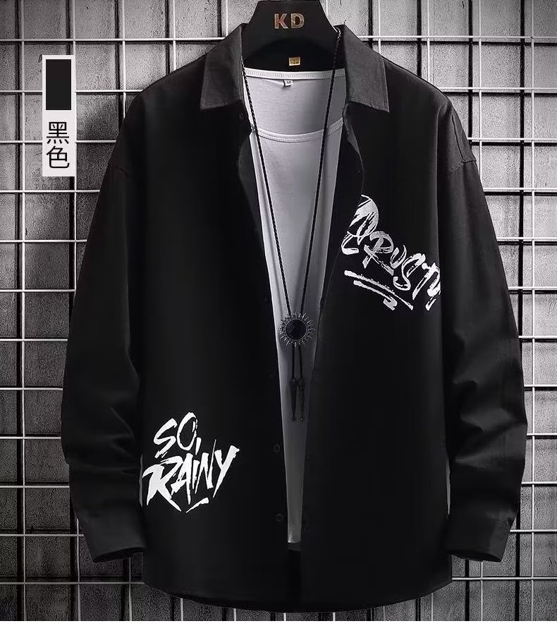 봄과 가을 캐주얼 긴팔 남성 셔츠 프린트 디자인 센스 옷깃 틈새 아웃웨어 잘생긴 만능 재킷 셔츠스토어 가기