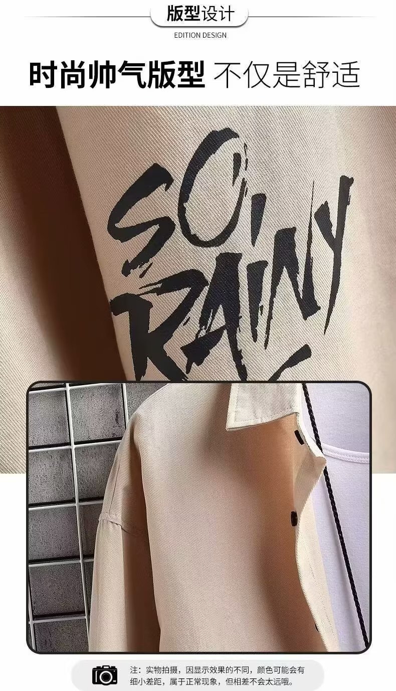 봄과 가을 캐주얼 긴팔 남성 셔츠 프린트 디자인 센스 옷깃 틈새 아웃웨어 잘생긴 만능 재킷 셔츠