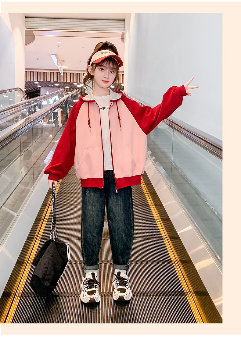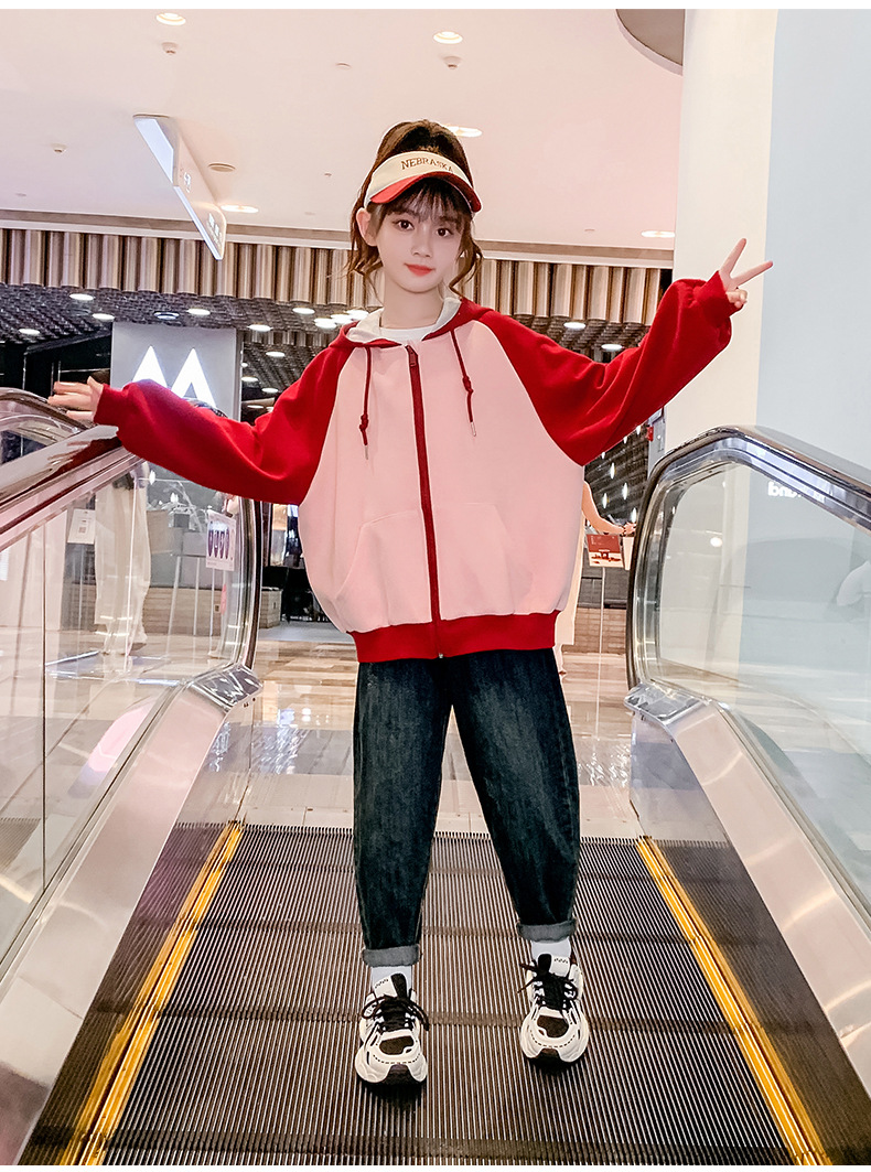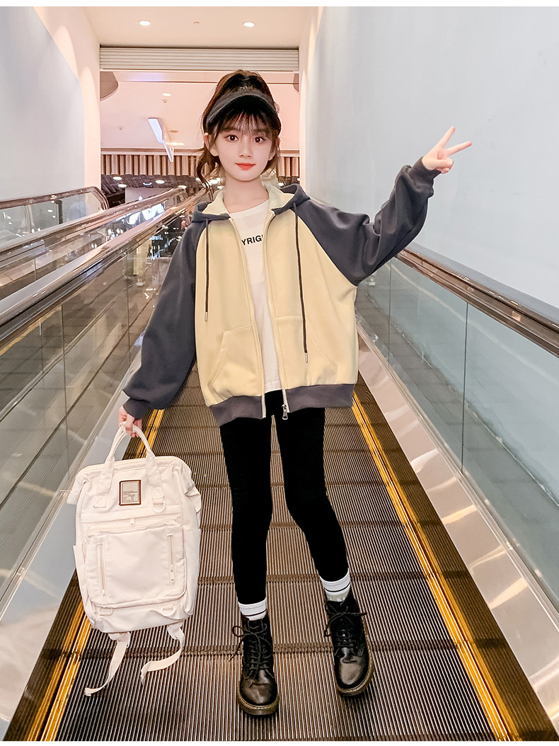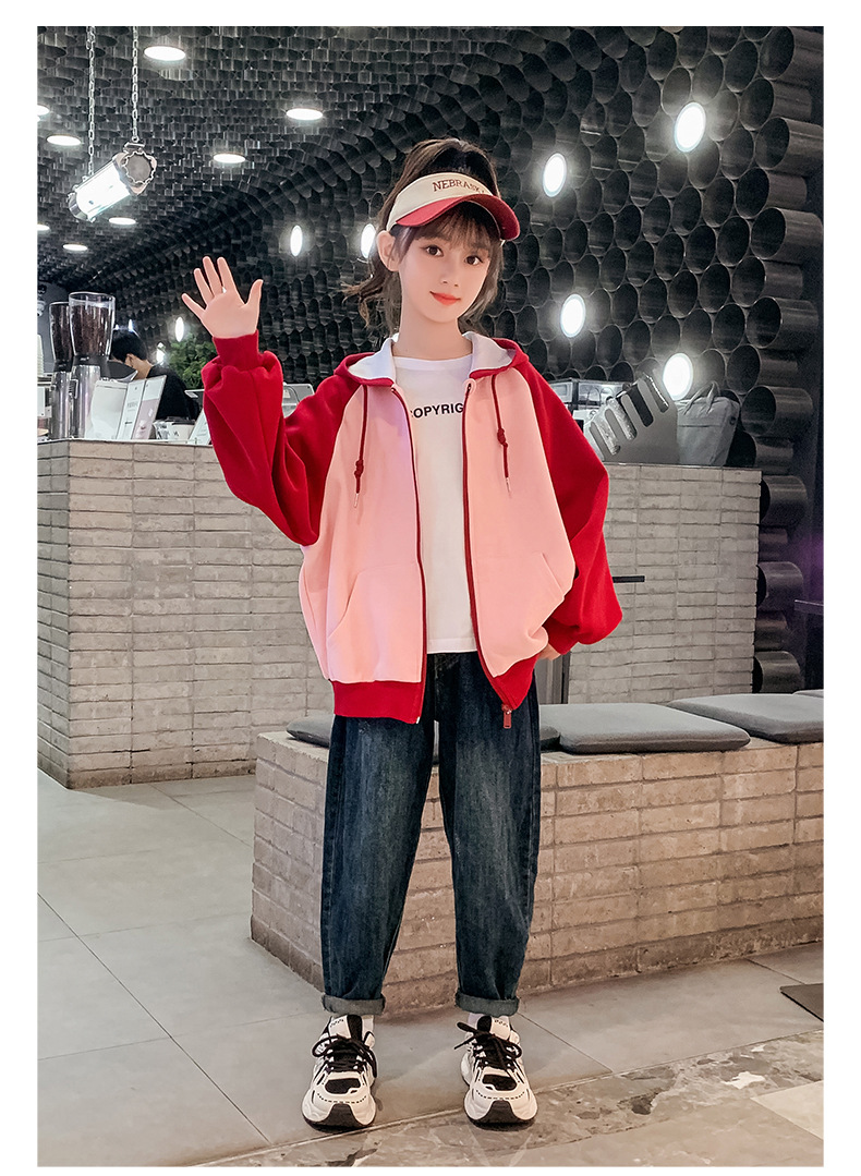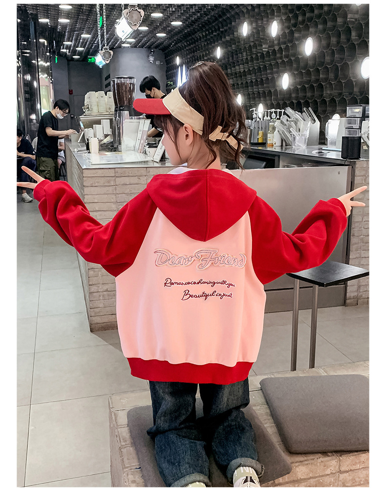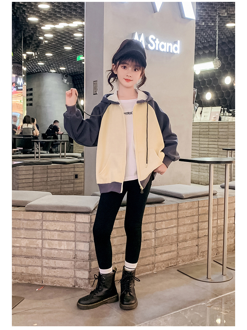 2023 가을과 겨울 소년 소녀 신코트 가디건 후드 대비 컬러 느슨한 학교 시즌 캠퍼스 초등학교 중학교 조수스토어 가기