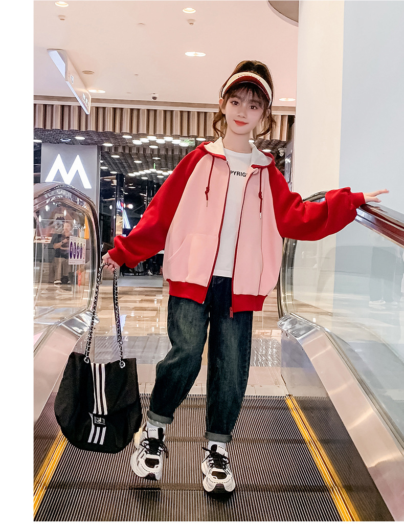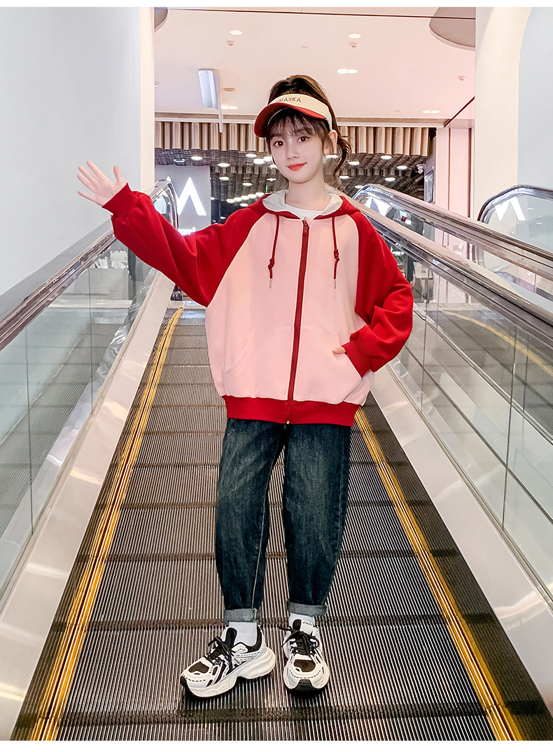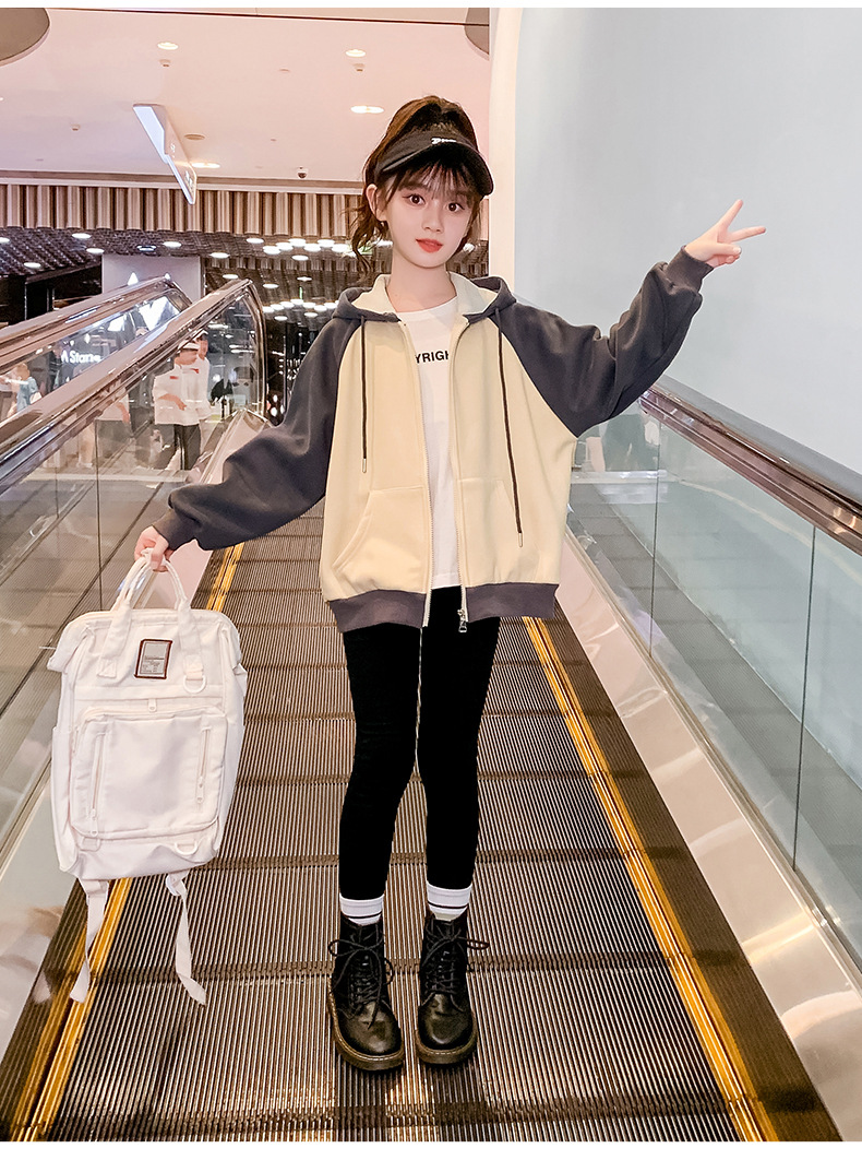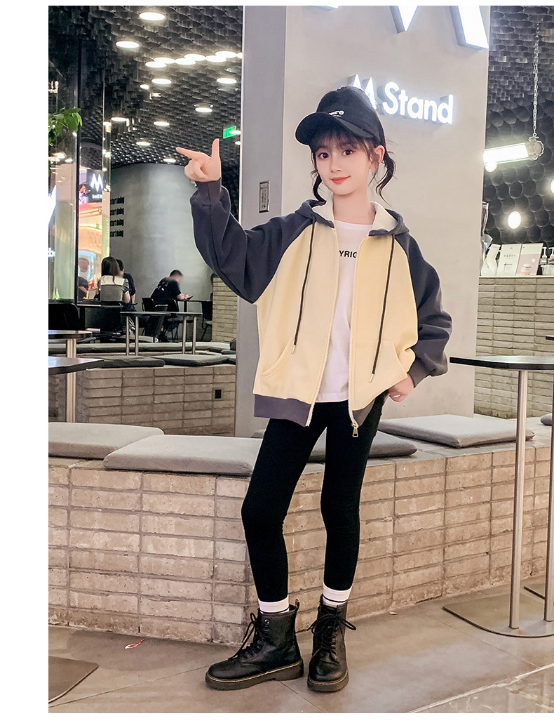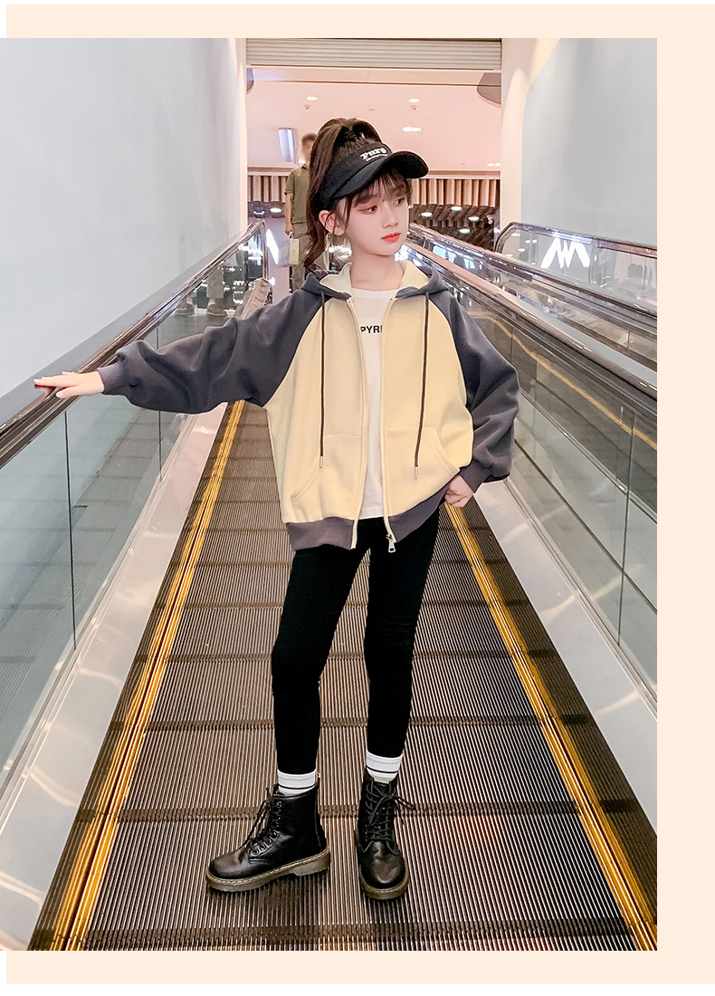 2023 가을과 겨울 소년 소녀 신코트 가디건 후드 대비 컬러 느슨한 학교 시즌 캠퍼스 초등학교 중학교 조수스토어 가기