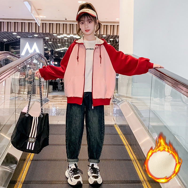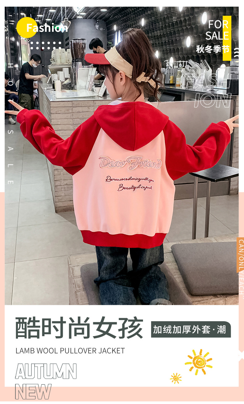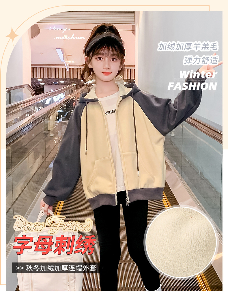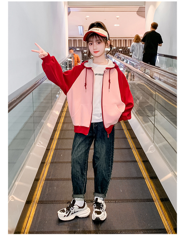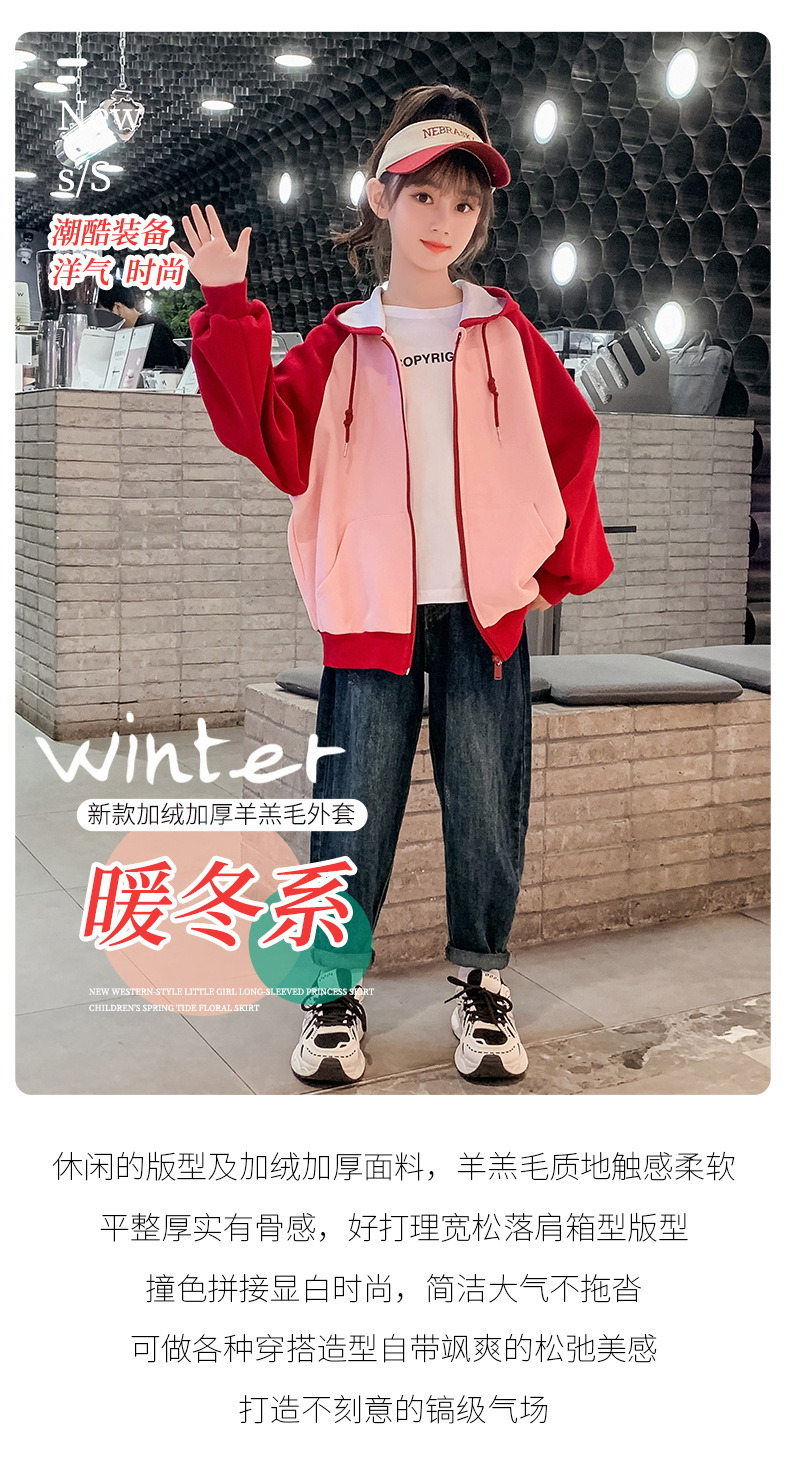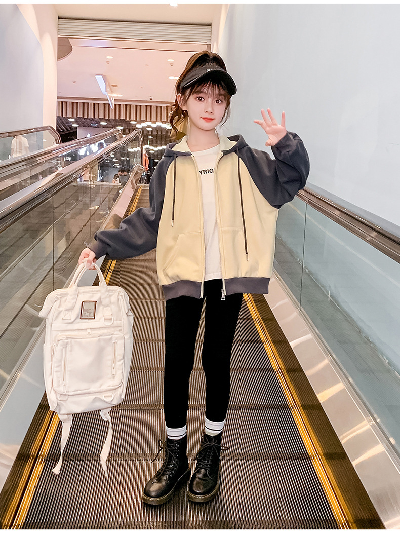 2023 가을과 겨울 소년 소녀 신코트 가디건 후드 대비 컬러 느슨한 학교 시즌 캠퍼스 초등학교 중학교 조수스토어 가기