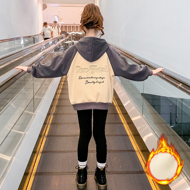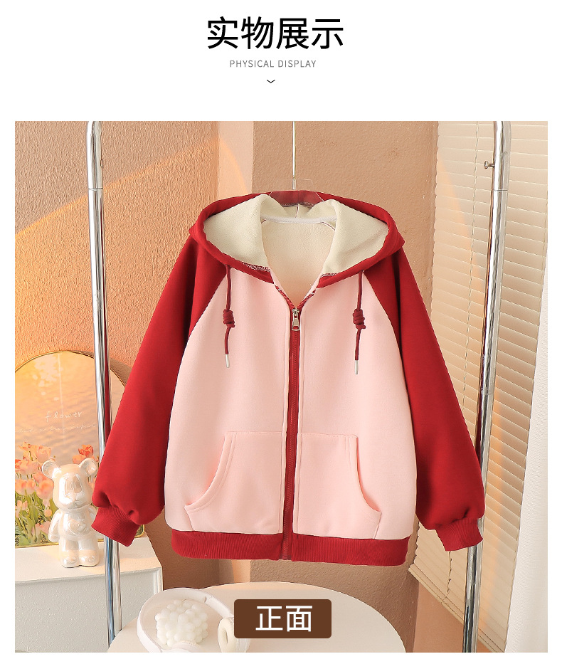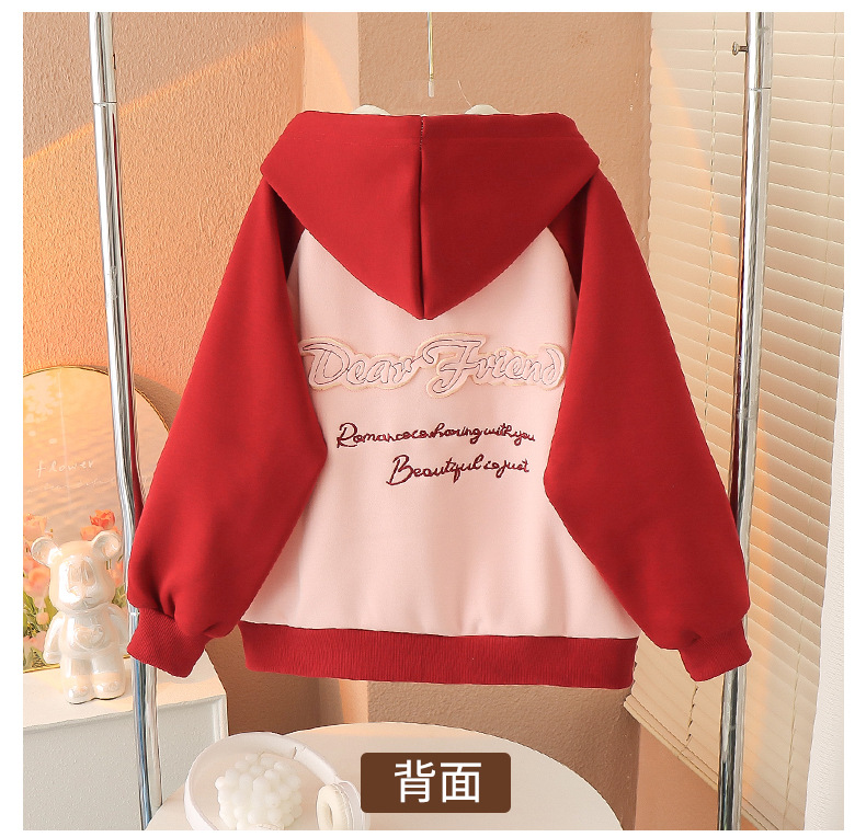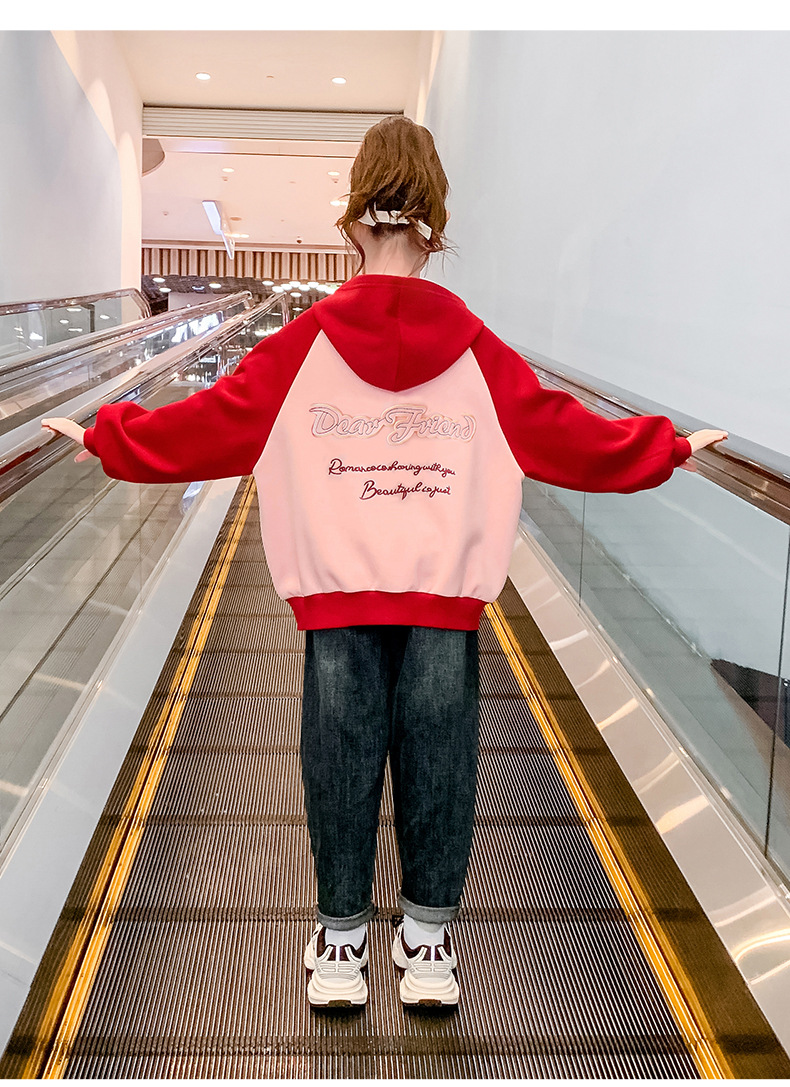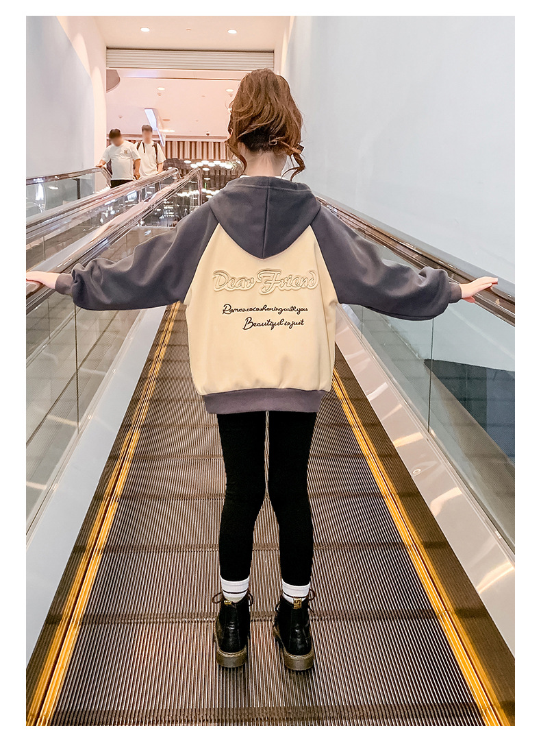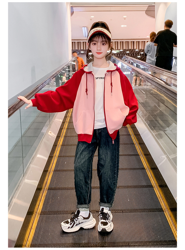 2023 가을과 겨울 소년 소녀 신코트 가디건 후드 대비 컬러 느슨한 학교 시즌 캠퍼스 초등학교 중학교 조수스토어 가기