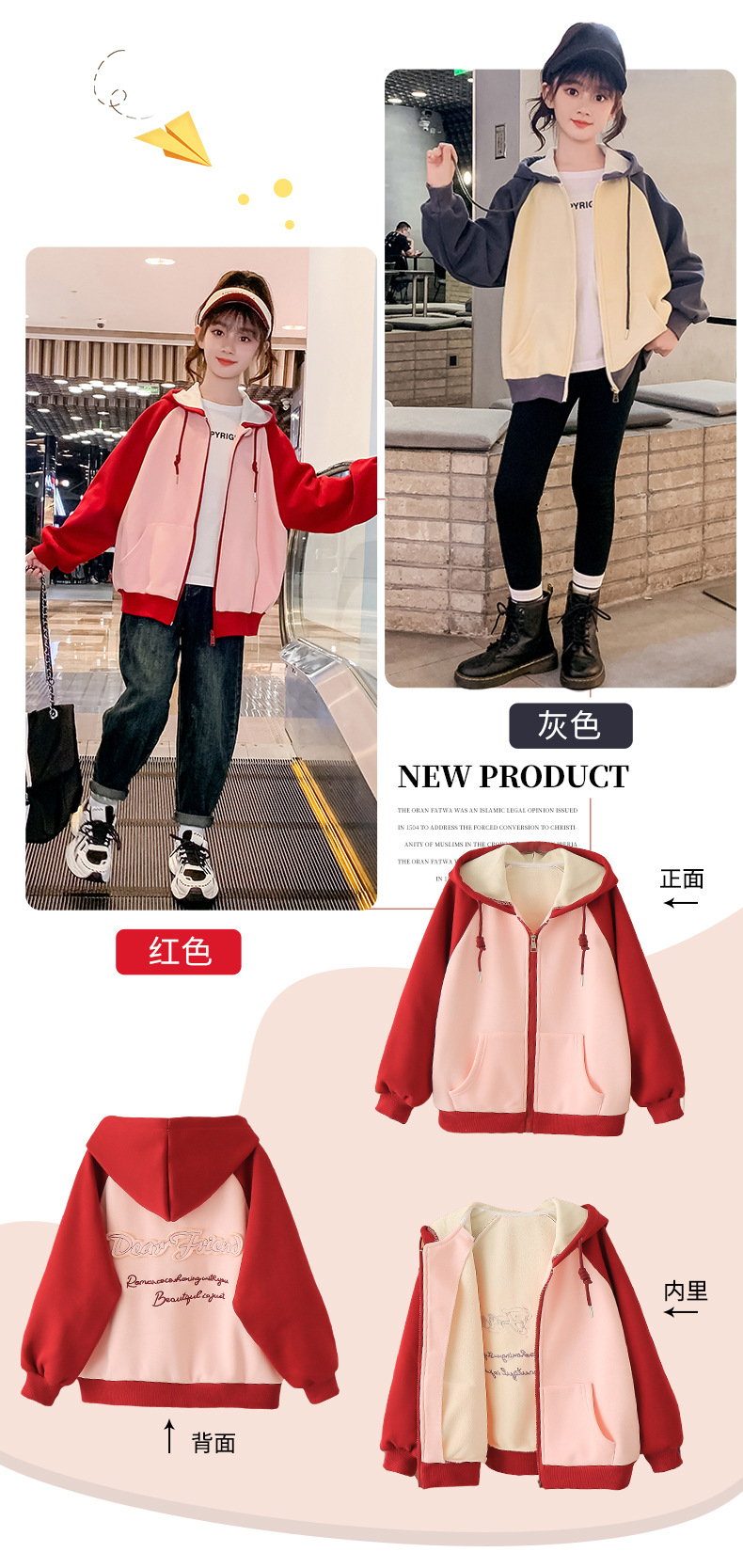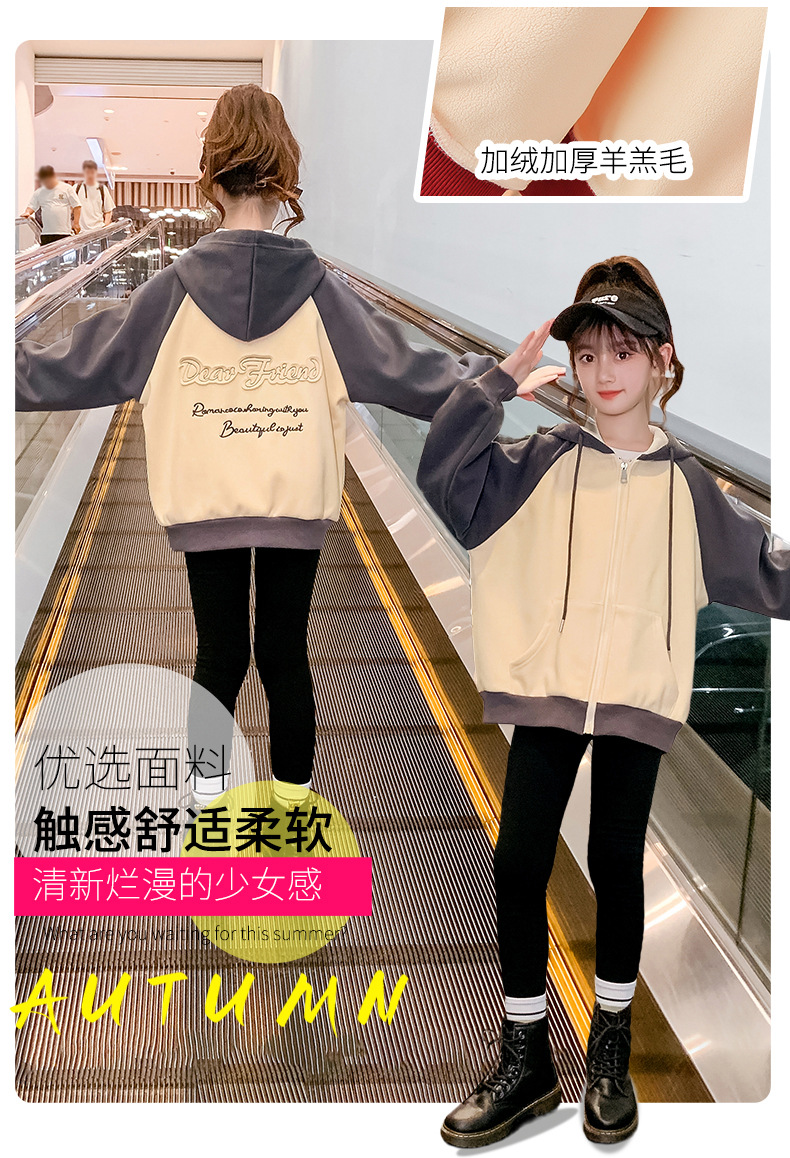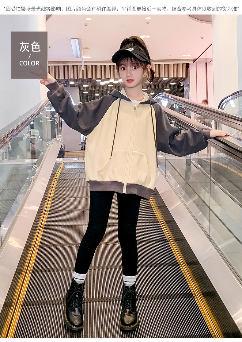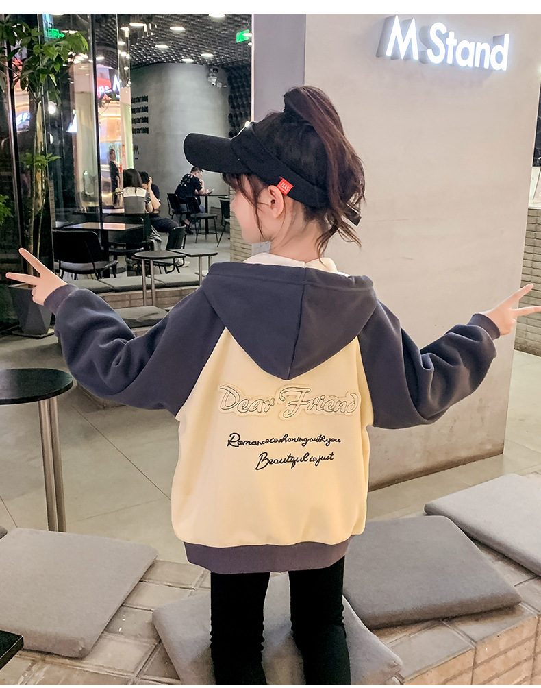 2023 가을과 겨울 소년 소녀 신코트 가디건 후드 대비 컬러 느슨한 학교 시즌 캠퍼스 초등학교 중학교 조수