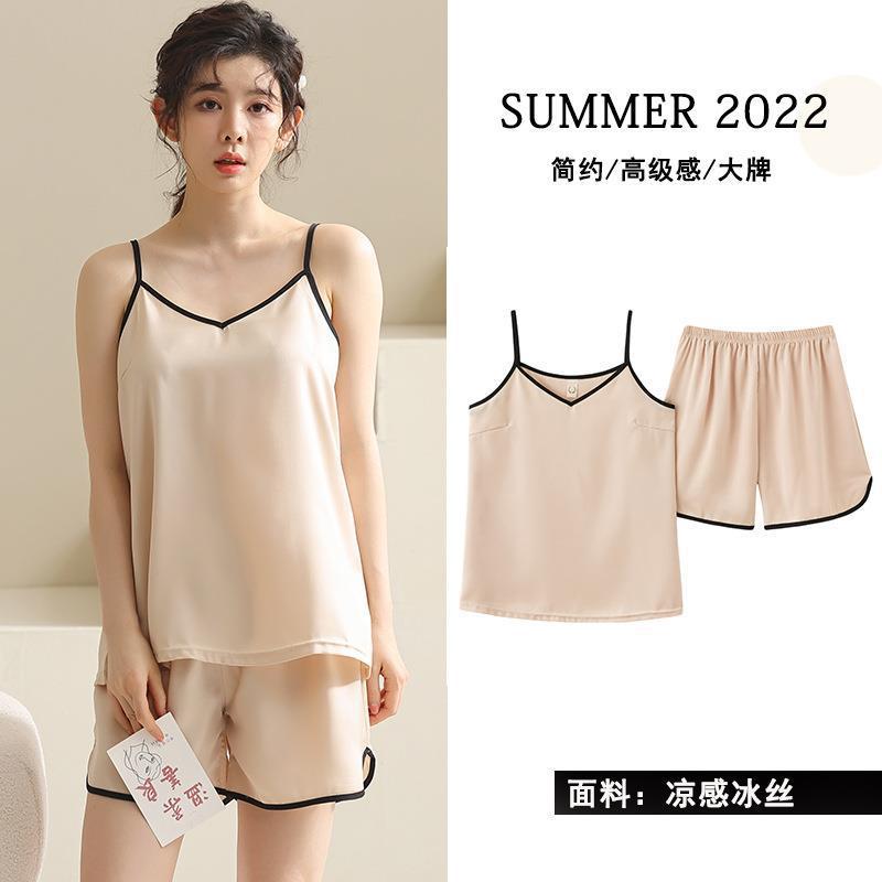 2024 여성을위한 새로운 섹시한 v 넥 서스펜더 잠옷 하이 엔드 솔리드 컬러 홈웨어 조끼 민소매 슈트스토어 가기