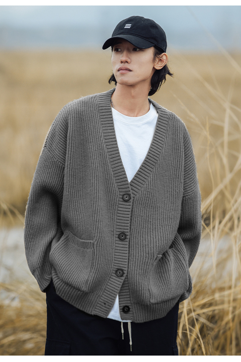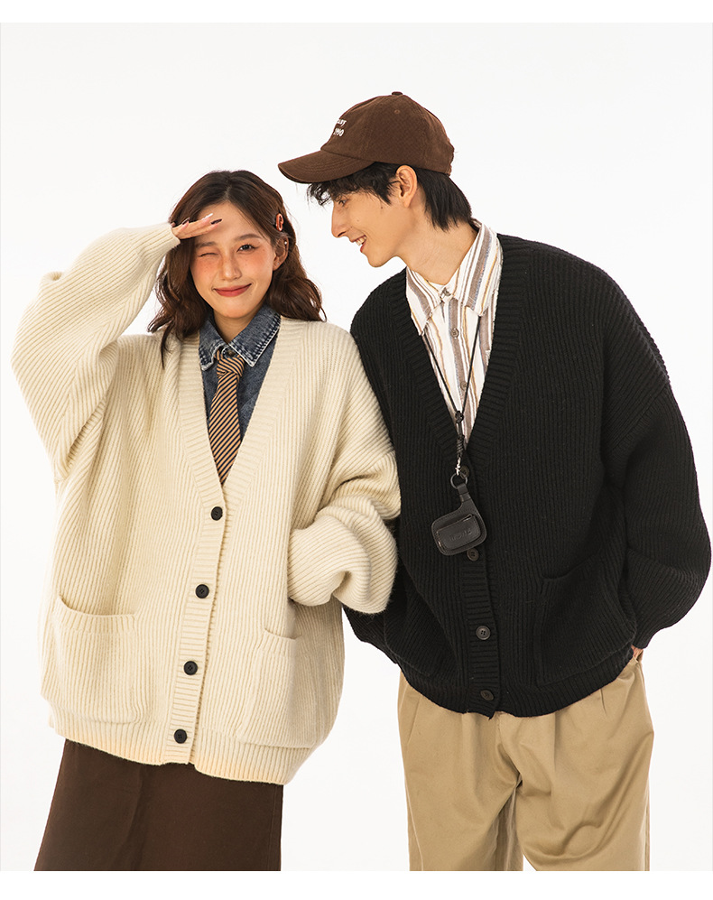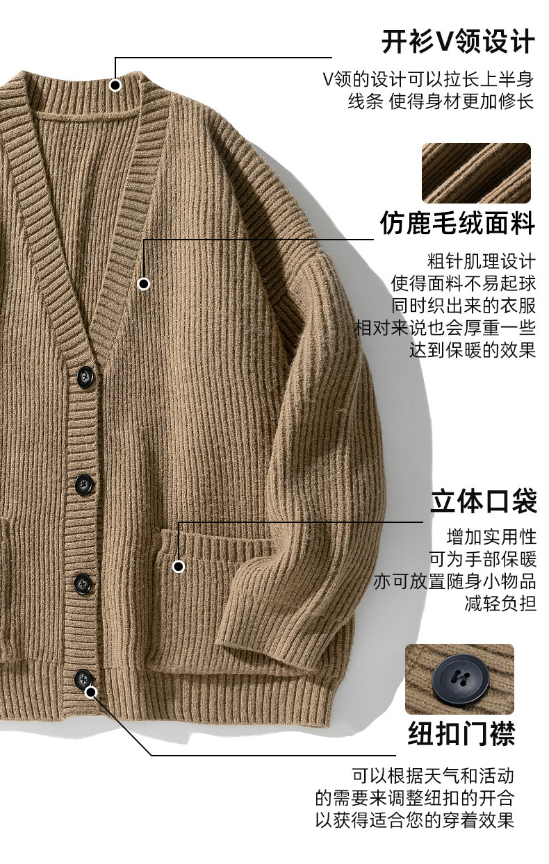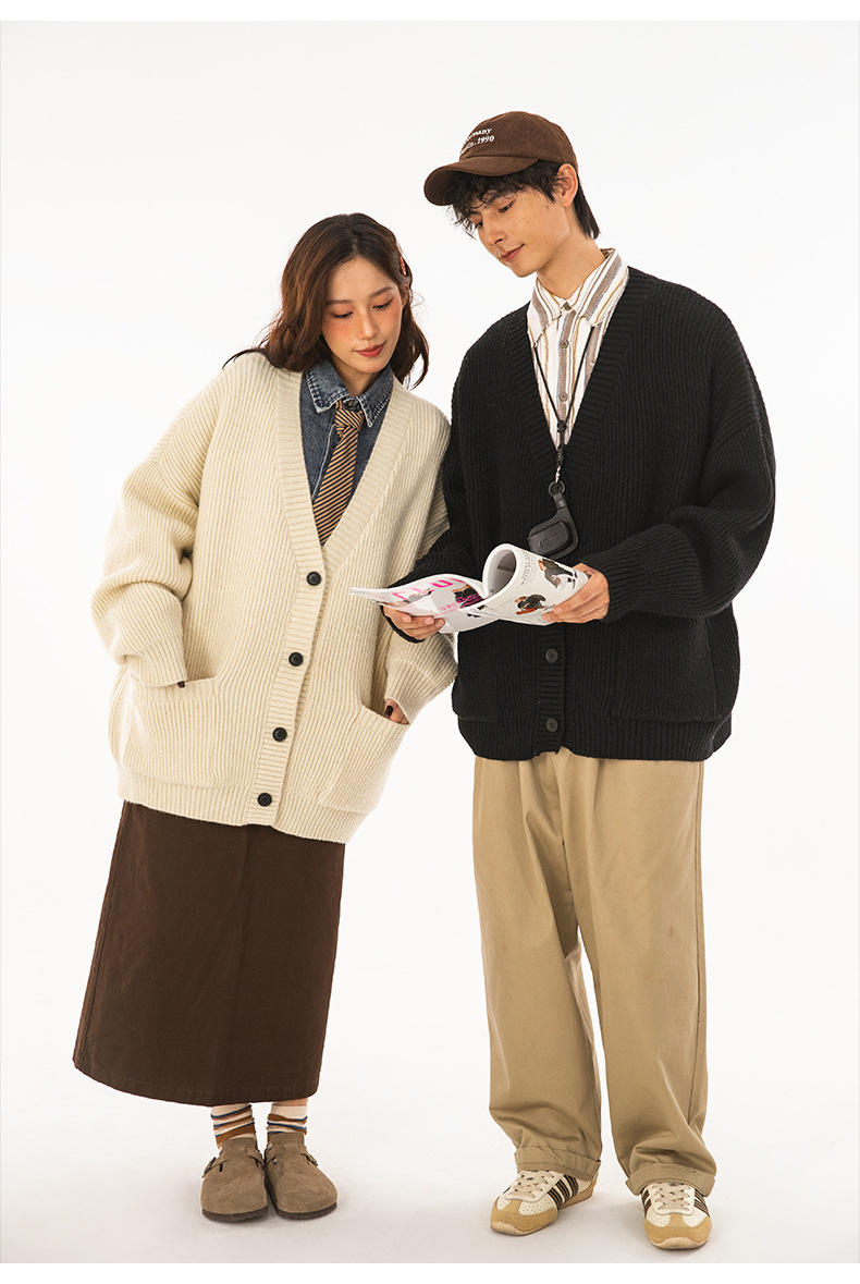 남성과 여성을위한 질감 두꺼운 바늘 질감 카디건 스웨터 가을과 겨울 새로운 커플 헤비 웨이트 기본 모든 매치 캐주얼 스웨터 재킷스토어 가기