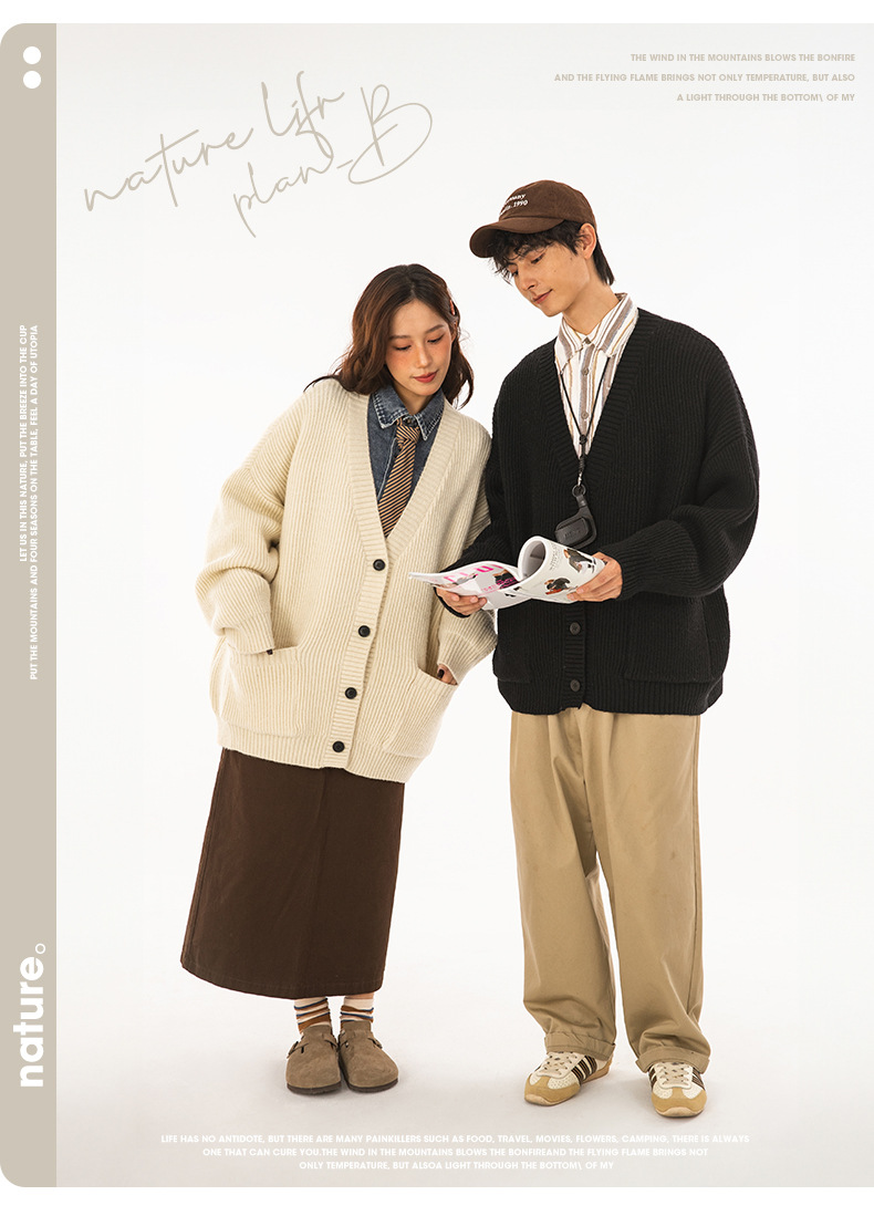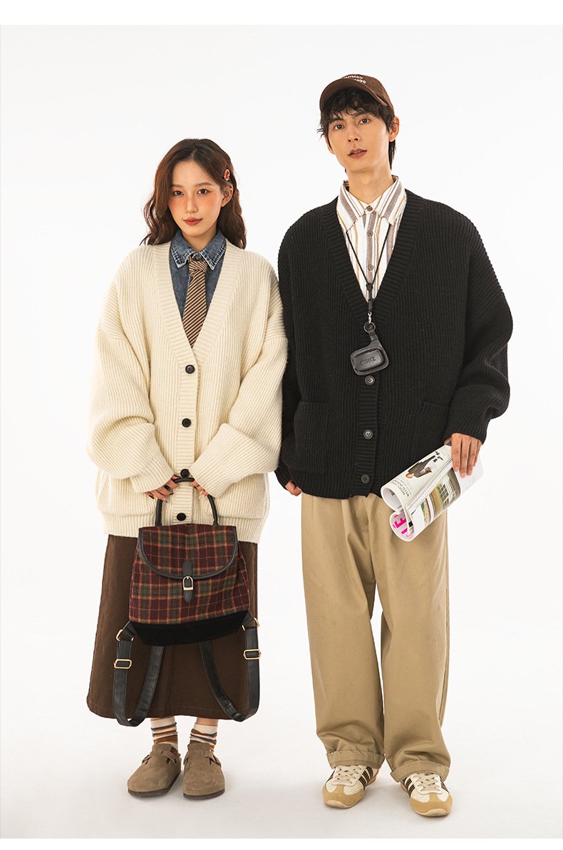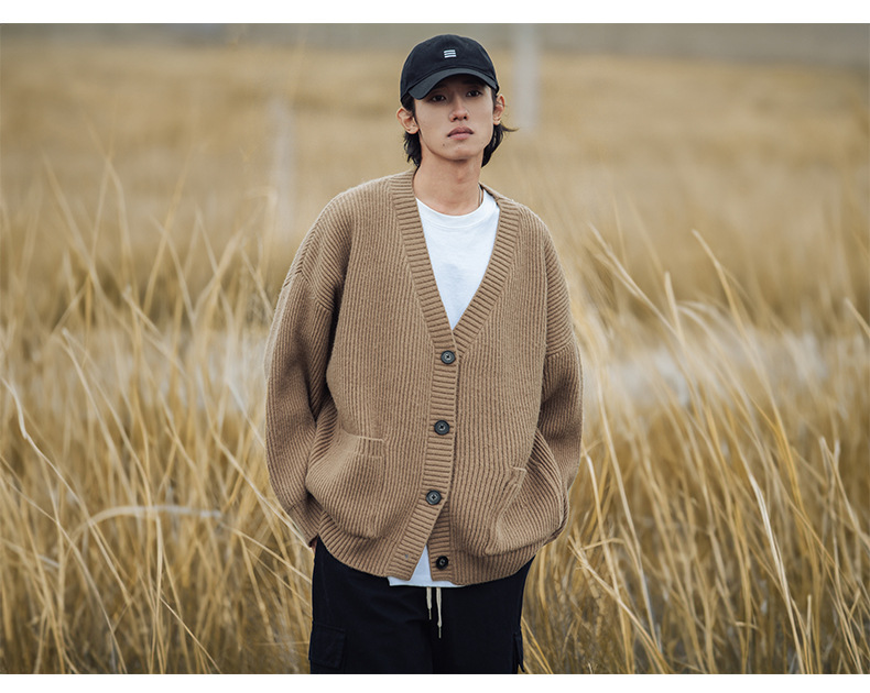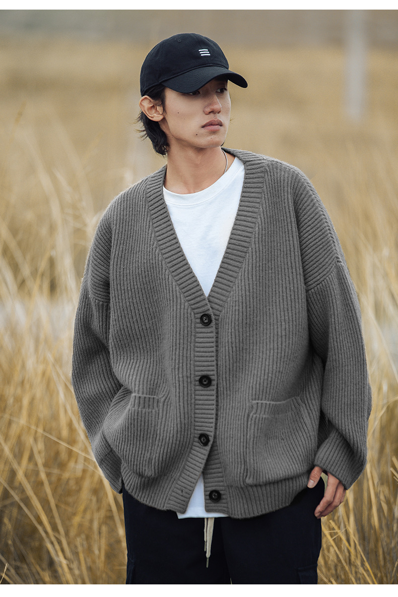남성과 여성을위한 질감 두꺼운 바늘 질감 카디건 스웨터 가을과 겨울 새로운 커플 헤비 웨이트 기본 모든 매치 캐주얼 스웨터 재킷스토어 가기