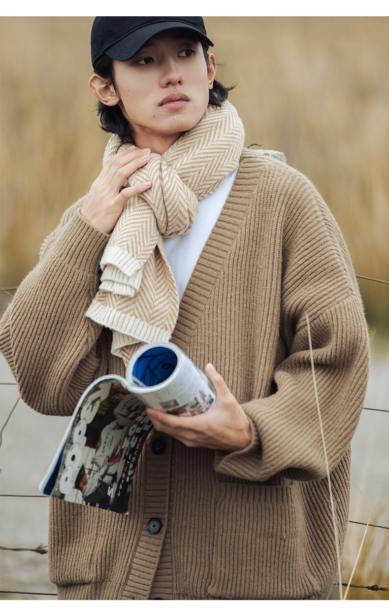 남성과 여성을위한 질감 두꺼운 바늘 질감 카디건 스웨터 가을과 겨울 새로운 커플 헤비 웨이트 기본 모든 매치 캐주얼 스웨터 재킷
