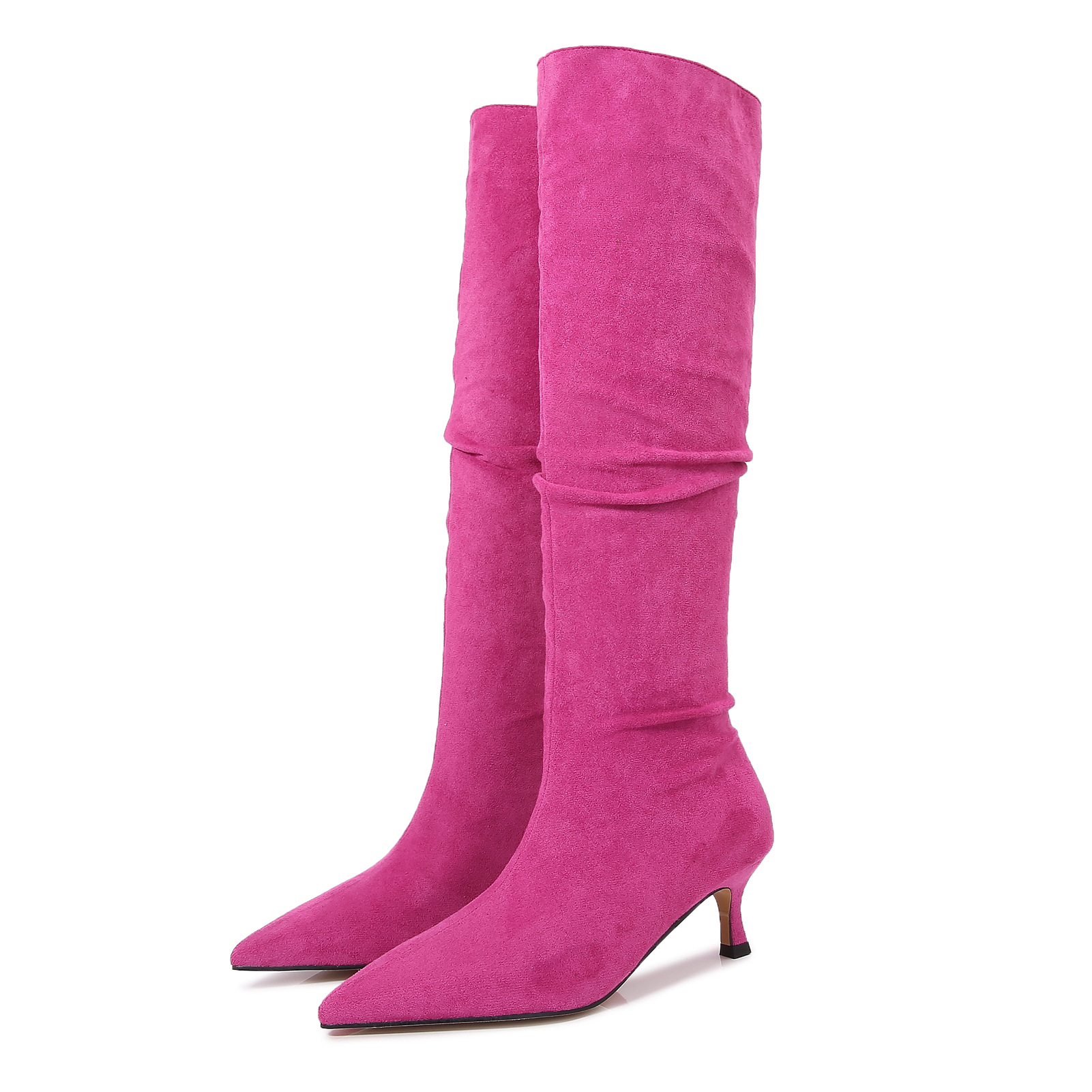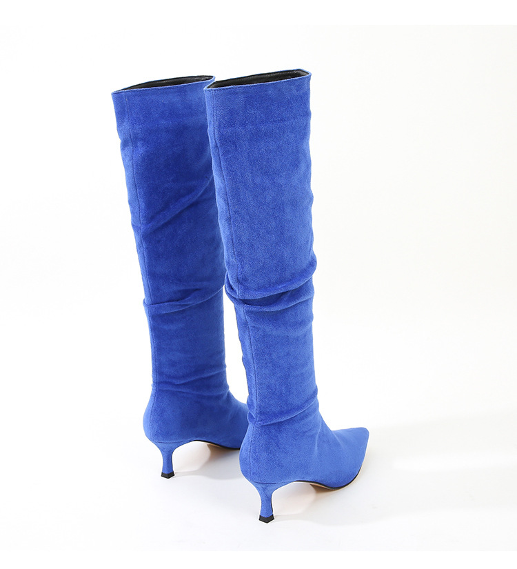 빈티지 포인트 플리츠 하이 배럴 부츠 여성용 2023 가을 고급 힐 스웨이드 더미 부츠 하이힐이지만 무릎 롱 부츠스토어 가기