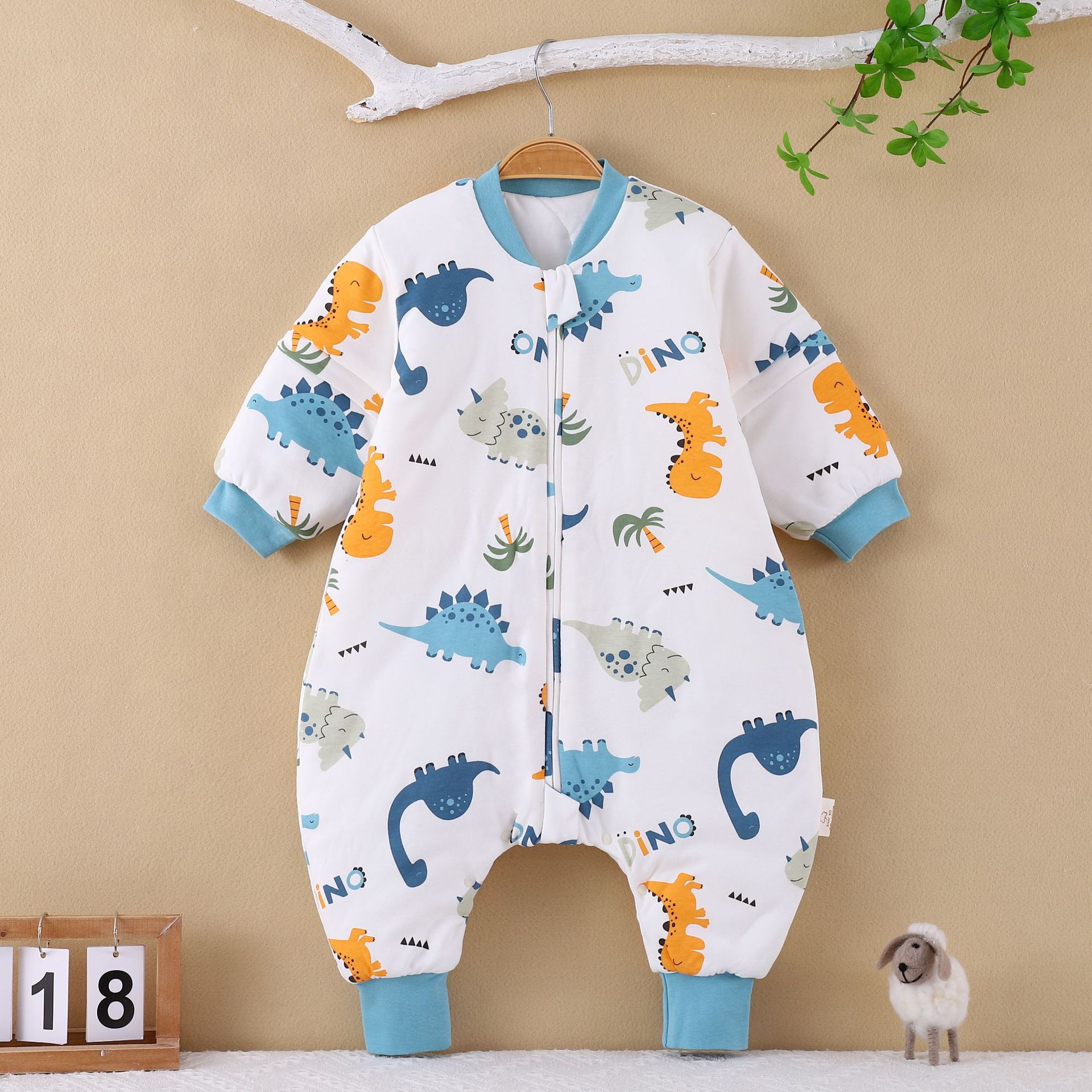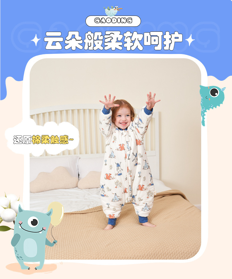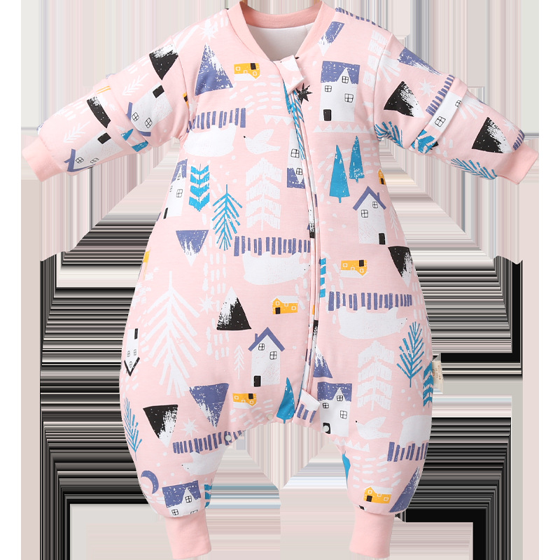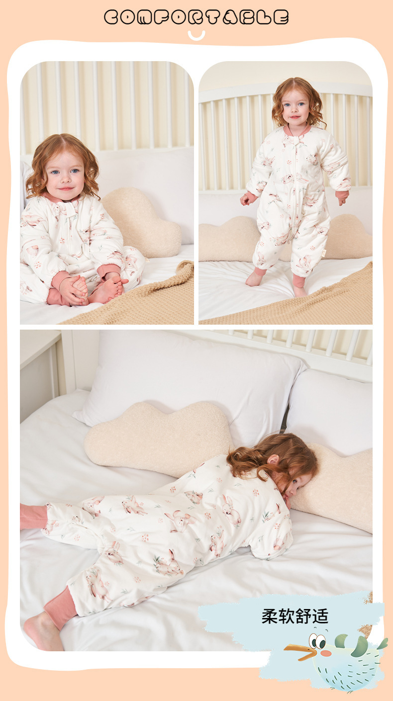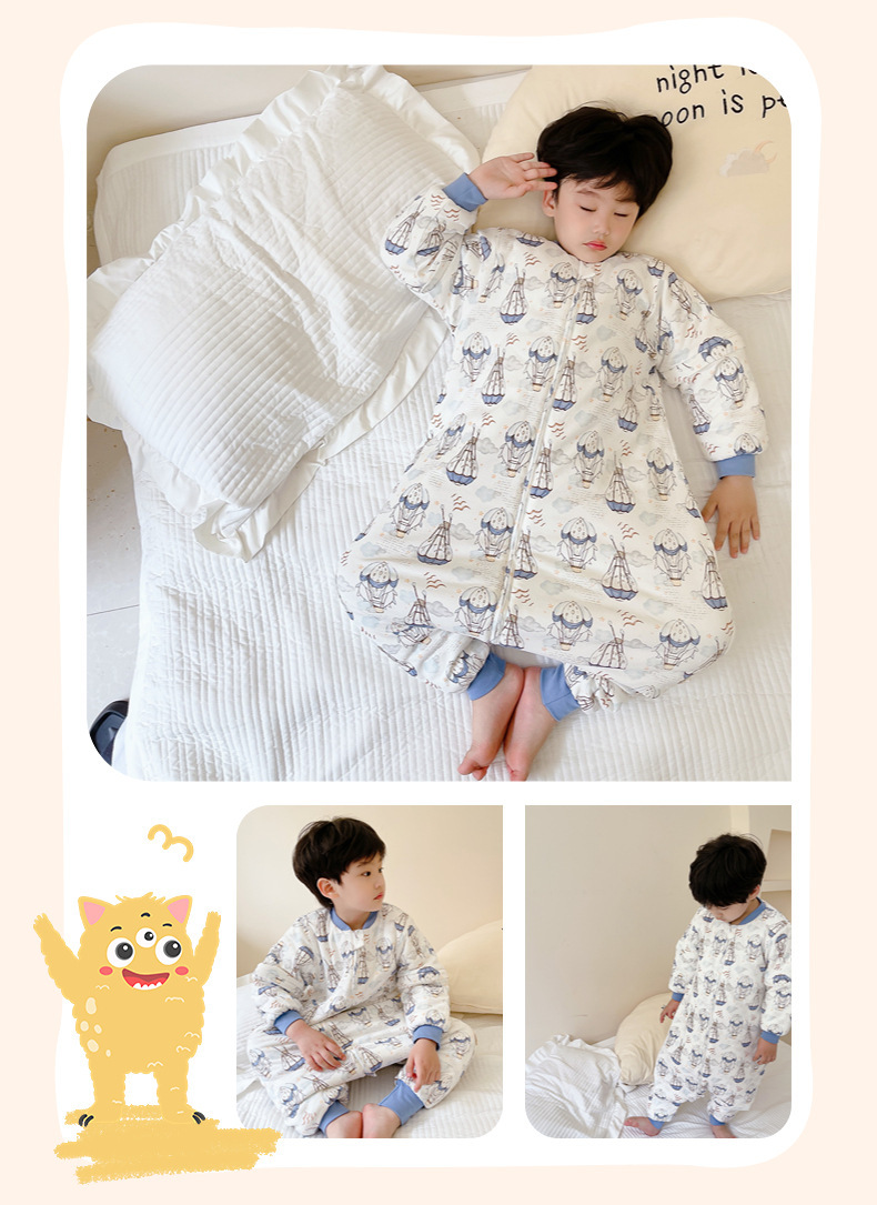 [엄선] 가을용 어린이 분리형 다리가 달린 수면복, 에어컨 의류, 깜짝 놀란 방지, 탈부착 가능한 소매, 발차기 방지 이불