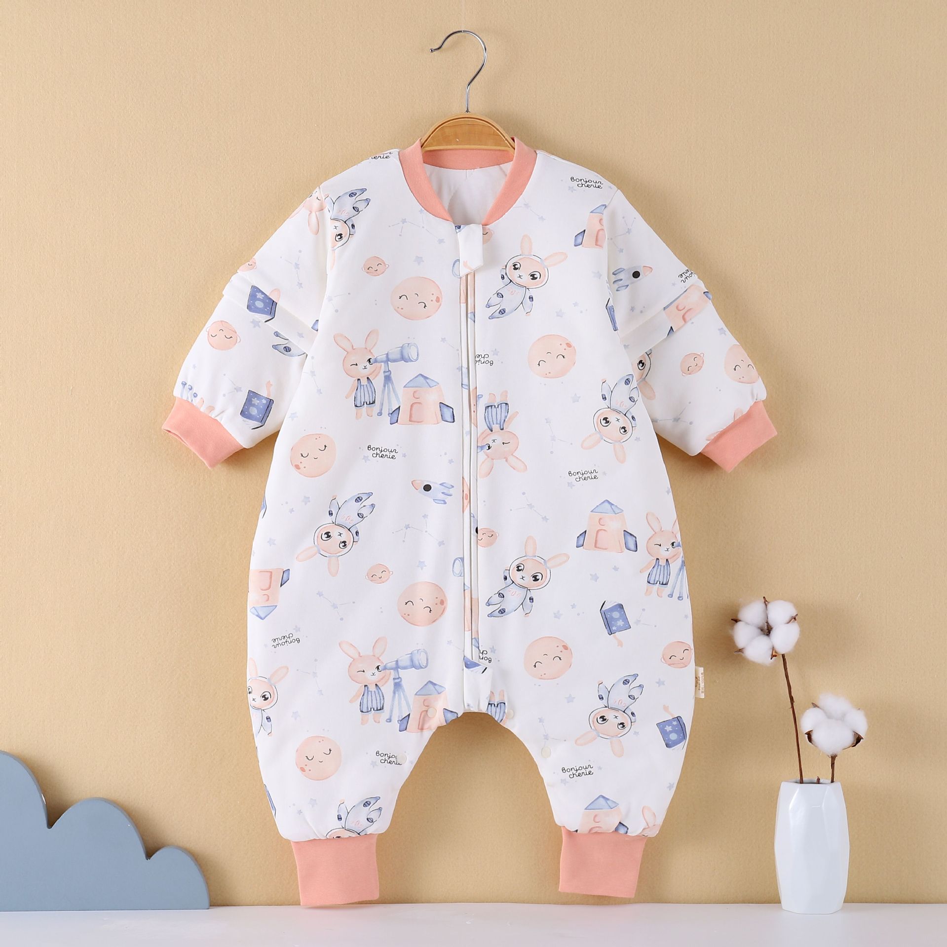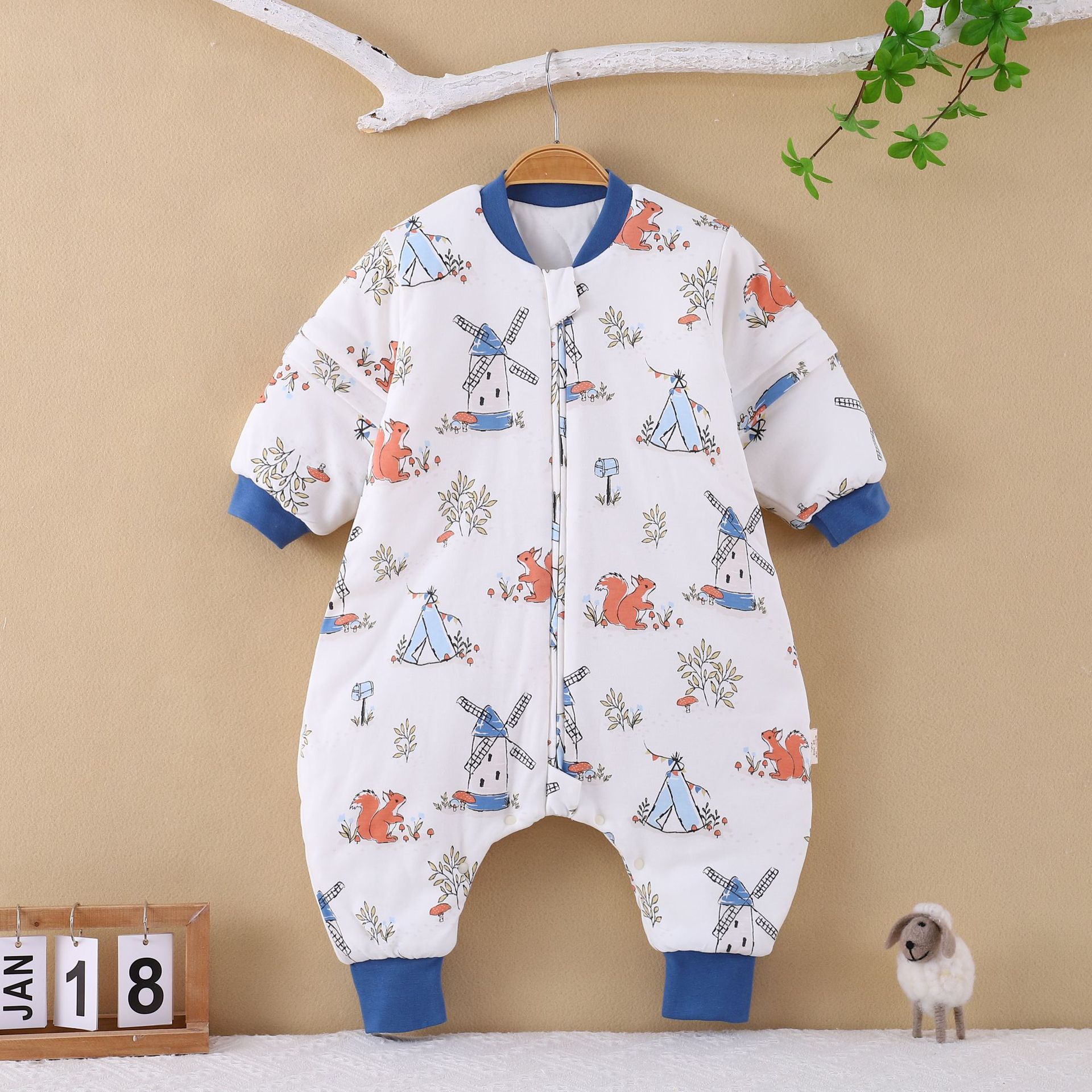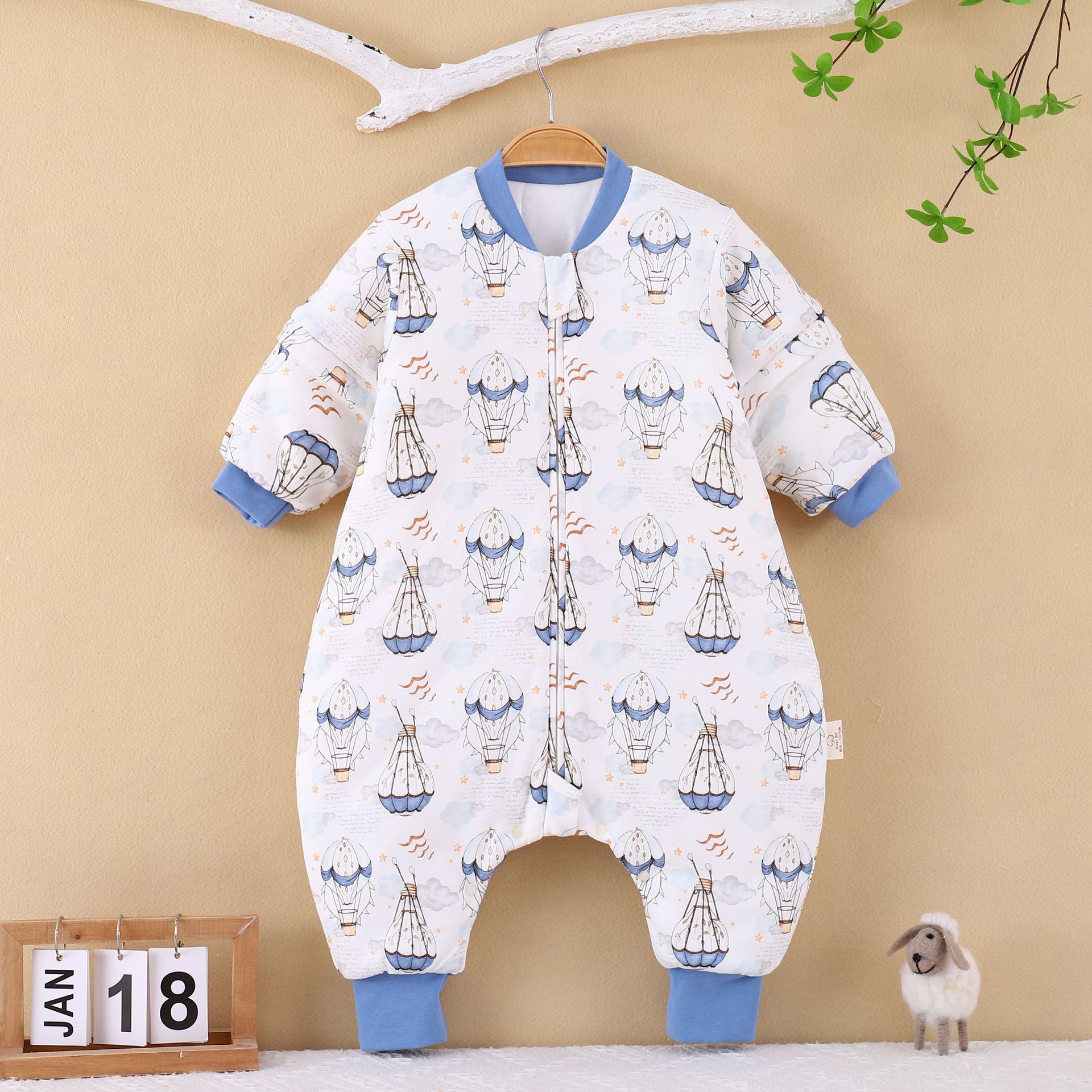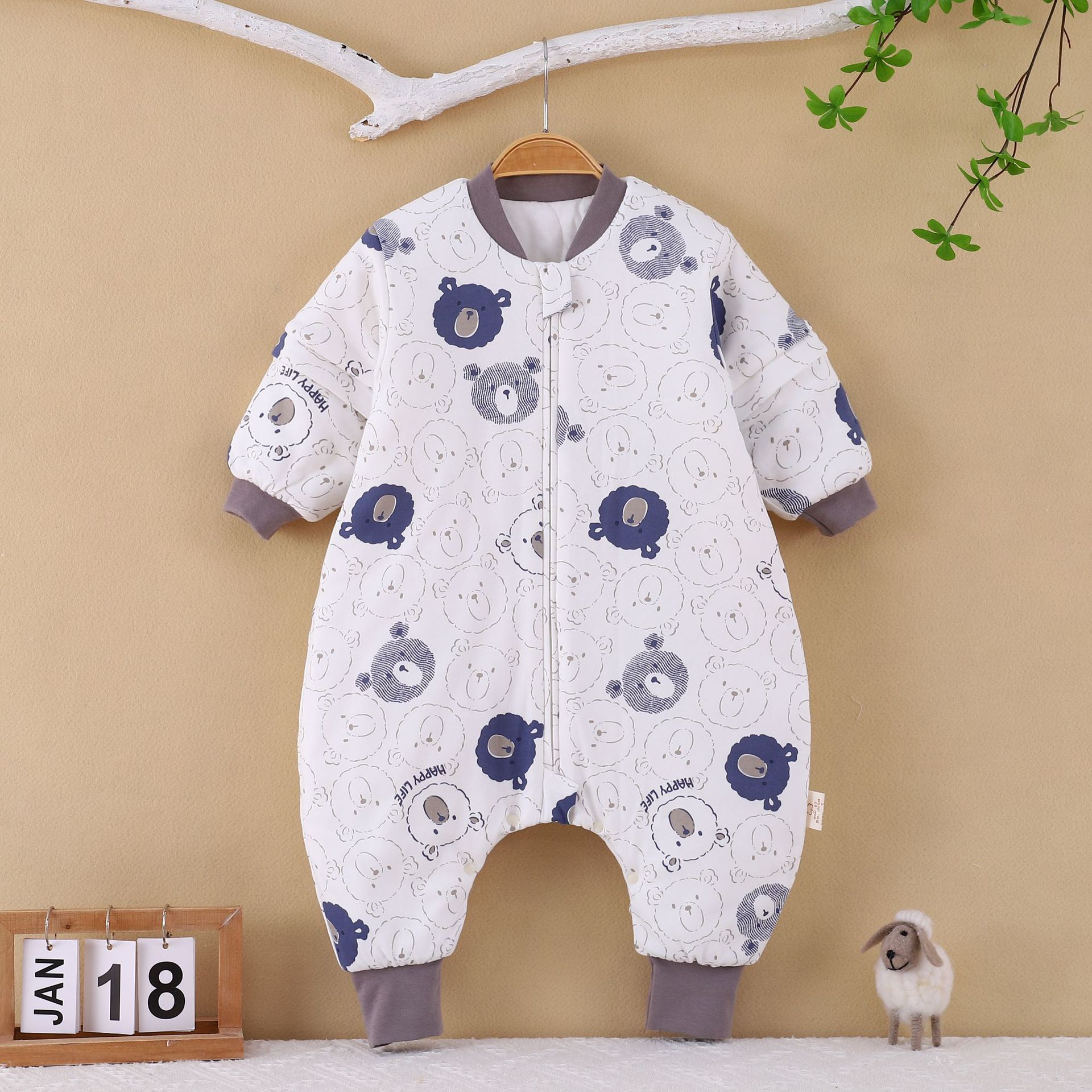 [엄선] 가을용 어린이 분리형 다리가 달린 수면복, 에어컨 의류, 깜짝 놀란 방지, 탈부착 가능한 소매, 발차기 방지 이불