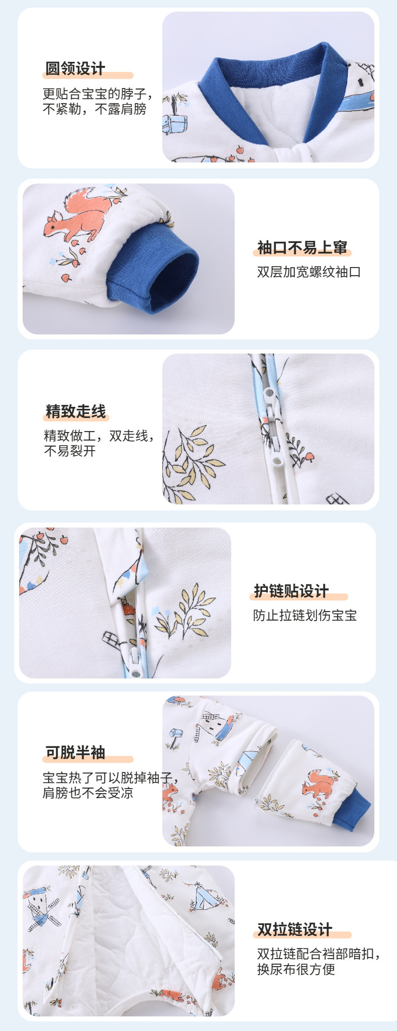 [엄선] 가을용 어린이 분리형 다리가 달린 수면복, 에어컨 의류, 깜짝 놀란 방지, 탈부착 가능한 소매, 발차기 방지 이불스토어 가기