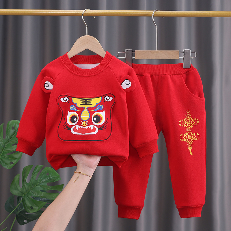 남성 아기 봄과 가을 옷 1-3-4 세 여아 긴팔 세트 유아 파악 주 옷 1 세 원피스 Hanfu Tang 세트