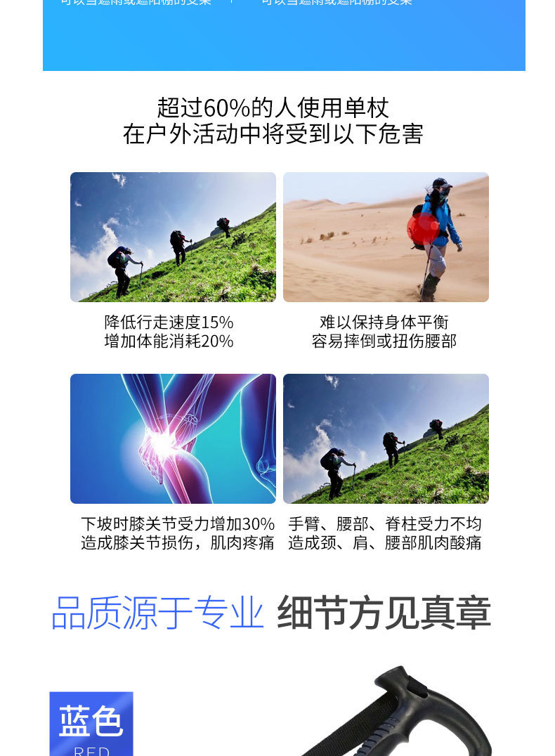 • 등반 폴 스트레이트 핸들 (빨간색)