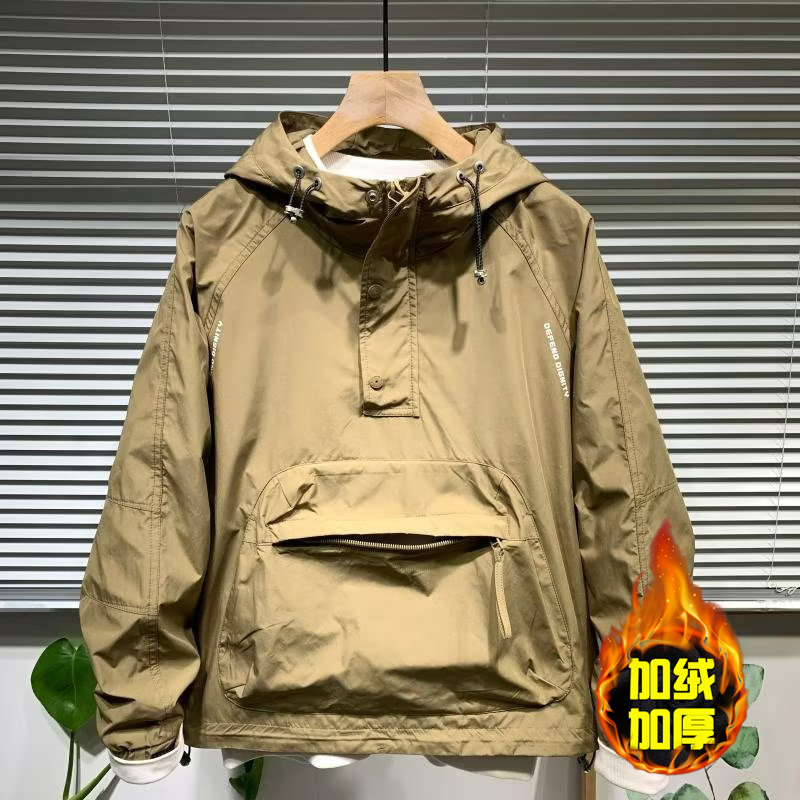 봄 충전 의류 남성용 풀오버 작업복 빅 후드 재킷 지퍼 포켓 탑 캐주얼 루즈한 재킷 트렌디스토어 가기